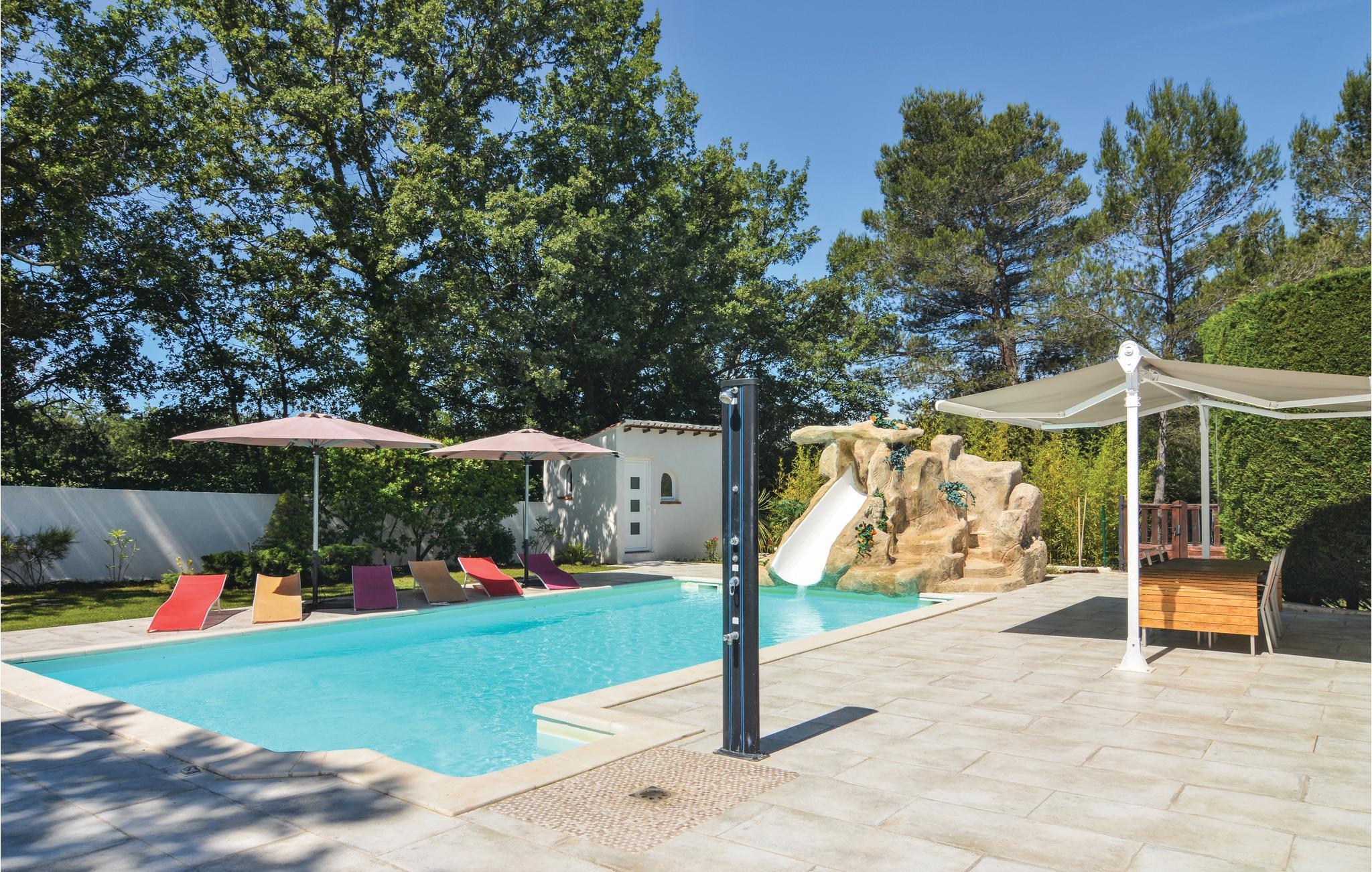 Dieses geräumige Ferienhaus für bis zu 10 Personen verfügt über vier Schlafzimmer und ein großzügig geschnittenes Wohnzimmer mit amerikanischer Küche. Es genießt eine ruhige Lage auf einem über 5.000 m² großen Gartengrundstück bei Aix-en-Provence und dem Berg Sainte-Victoire. Ein Trampolin und eine Tischtennisplatte stehen Ihnen zur Verfügung. Der komplett uneinsehbare Swimmingpool ist beheizt, damit Sie schon ab April und bis einschließlich Oktober von ihm profitieren können. Die Heizkosten für den Pool sind in der Miete inbegriffen. In einem Annex befinden sich eine zweite Küche, ein Wohnzimmer sowie ein Schlafzimmer mit Bad, und wenige Meter entfernt umfasst ein weiteres Nebengebäude eine Dusche und ein WC. Dort gibt es ebenfalls eine Außendusche. Das schöne Wetter können Sie auf mehreren Terrassen genießen, und das Haus verfügt über einen Bouleplatz. Zum Grillen stehen Ihnen sowohl ein Gas- als auch ein Kohlengrill zur Verfügung. Durch die beiden amerikanischen Kühlschränke sind immer Eiswürfel für kalte Getränke da. Parken Sie Ihre Autos auf dem geschlossenen Grundstück oder im Carport. 2,5 km entfernt wartet das typisch provenzalische Dorf Trets mit Restaurants, Supermärkten und Bäckereien auf. Über die Autobahn erreichen Sie problemlos Aix-en-Provence (25 km), Marseille (45 km), Aubagne, Cassis und seine Felsenbuchten sowie die Strände bei La Ciotat. Die vielen Weinschlösser um das Ferienobjekt laden zu Weinverkostungen ein.