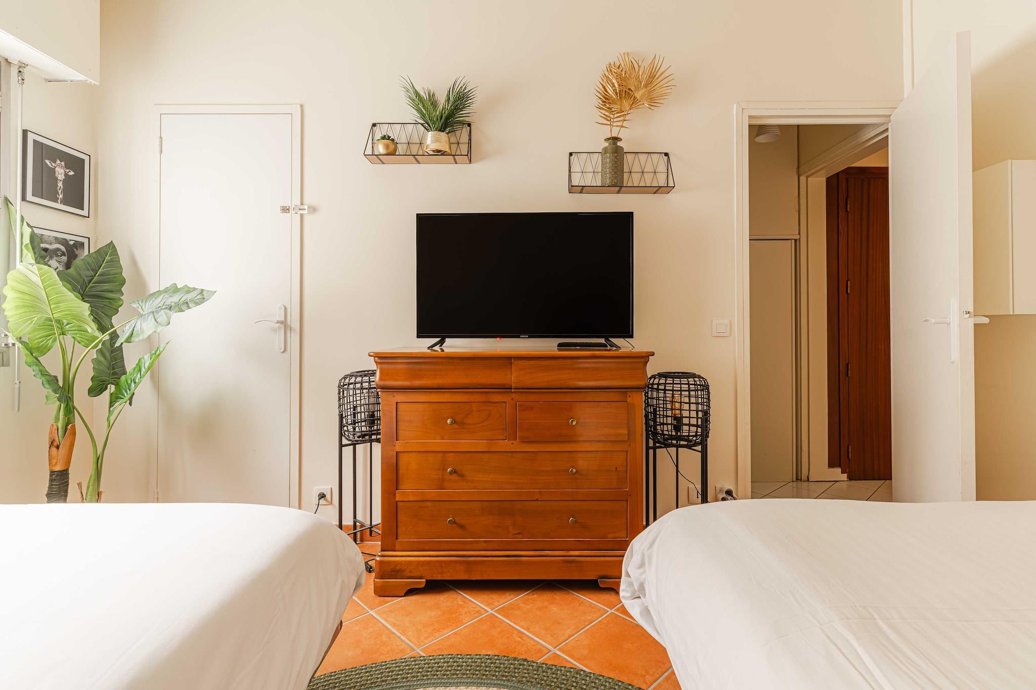Checkmyguest bietet dieses komplett renovierte 68 m² große Apartment für 6 Personen an, ideal gelegen in der Nähe des Strandes und der Geschäfte. Mit seinen hellen Räumen, der sonnigen Terrasse mit Blick auf den Fluss Touques und allen Annehmlichkeiten, die Sie brauchen, ist es der perfekte Ort für einen erholsamen Aufenthalt in Trouville-sur-Mer. Die Lage des Apartments ermöglicht es Ihnen, schnell und einfach überall hinzukommen: 200 km von Paris auf der Autobahn A13 SNCF-Linie von Paris Gare Saint Lazare nach Trouville-Deauville (2 Stunden) 8 km vom Flughafen Deauville Normandie - Fluglinie Deauville-London Fähren nach England: Ouistreham (40 km) Le Havre (40 km) In der Nähe von Trouville-sur-Mer, einem charmanten Badeort in der Normandie, gibt es viele interessante Dinge zu tun. Hier sind drei Dinge, die Sie nicht verpassen sollten: Besuchen Sie Deauville: Deauville liegt direkt neben Trouville-sur-Mer und ist berühmt für seine Eleganz und seinen Charme. Sie können entlang der berühmten Promenade des Planches spazieren, das Casino besuchen, weltbekannte Reitveranstaltungen besuchen oder Genießen Sie einfach die Schönheit dieser Küstenstadt. Genießen Sie Meeresfrüchte: Die Küste der Normandie ist für ihre köstlichen Meeresfrüchte bekannt. Probieren Sie unbedingt lokale Gerichte wie frische Austern, Muscheln und Meeresfrüchteplatten in einem der Küstenrestaurants. Sie können diese Köstlichkeiten genießen, während Sie den Meerblick bewundern. Erkunden Sie das Pays d'Auge: Die Landschaft der Normandie ist großartig und die Region Pays d'Auge ist ein echtes Juwel. Sie können Ausflüge unternehmen, um malerische Dörfer, Fachwerkhäuser, Apfelweinmühlen und die Käsereien zu entdecken, die den berühmten Camembertkäse herstellen. Vergessen Sie nicht, den lokalen Apfelwein und Calvados, einen traditionellen Apfelbrand, zu probieren. Diese Aktivitäten bieten einen Einblick in die Schönheit und reiche gastronomische Kultur der Normandie.