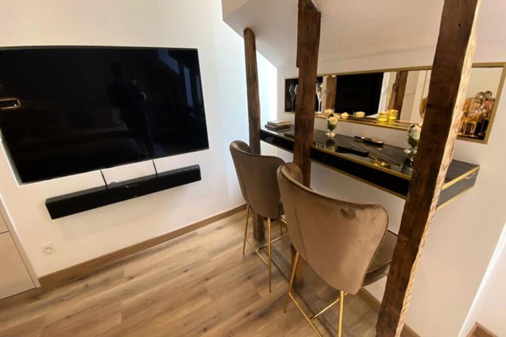 Dieses romantische Apartment ist der perfekte R?ckzugsort f?r Paare, die sich entspannen und bleibende Erinnerungen schaffen m?chten. Es verf?gt ?ber ein Kingsize-Bett (180 x 200 cm) mit luxuri?sem, modernem Design, einen gro?en Flachbildfernseher und ein High-End-Soundsystem f?r ein beeindruckendes Erlebnis. Das private Badezimmer verf?gt ?ber eine ger?umige Badewanne mit Massaged?sen, ideal f?r ein entspannendes Whirlpool-Bad zu zweit. Die Unterkunft ist haustierfrei und bietet eine ruhige Umgebung f?r einen ruhigen Aufenthalt. Das Apartment liegt in einem charmanten und malerischen Viertel am Ufer des Flusses Corr?ze und bietet einen atemberaubenden Blick auf das Wasser und ruhige Spazierwege. Es ist nur einen kurzen Spaziergang vom Herzen von Tulle entfernt, wo Sie lokale Caf?s, B?ckereien und Gesch?fte erkunden k?nnen. In der Gegend gibt es mehrere Parks zum Entspannen im Freien und f?r gem?tliche Spazierg?nge. Nicht weit von der ber?hmten Kathedrale Notre-Dame und dem Kreuzgangmuseum entfernt bietet dieser Ort eine ruhige Atmosph?re und ist dennoch in der N?he der Sehensw?rdigkeiten der Stadt. Das Apartment verf?gt ?ber eine voll ausgestattete K?che und einen gem?tlichen Essbereich zum Essen. Mit seiner modernen und romantischen Einrichtung bietet es einen komfortablen Raum zum Entspannen. Das Badezimmer mit Whirlpool-Badewanne l?dt zum Entspannen ein. Sie haben au?erdem Zugang zu einem kostenlosen ?berdachten Parkplatz au?erhalb des Grundst?cks.