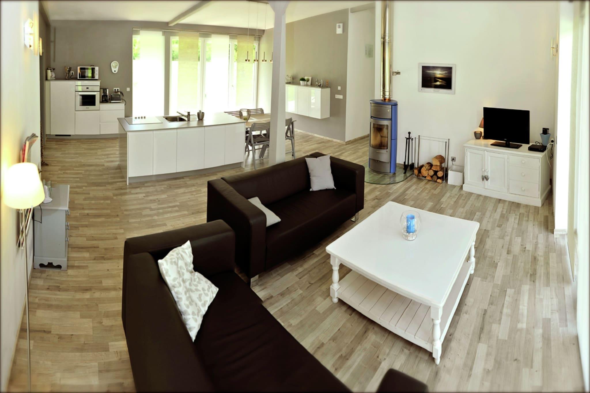 Parterre: (Wohnzimmer(TV(keine niederländischen Fernsehsender), Herd, Sitzecke, DVD-Spieler), offene Küche(Esstisch, Wasserkocher, Toaster, Kaffeemaschine(cups), Backofen, Mikrowelle, Spülmaschine, Kühl-/Gefrierkombination), Schlafzimmer(Doppelbett), Schlafzimmer(2x Einzelbett), Badezimmer(Dusche, Waschbecken), Toilette, Wirtschaftsraum(Waschmaschine)) Reisebett , Terrasse, Garten(teilweise umzäunt, 10000 m2), Gartenmöbel, Grill, Parkplatz, Hochstuhl