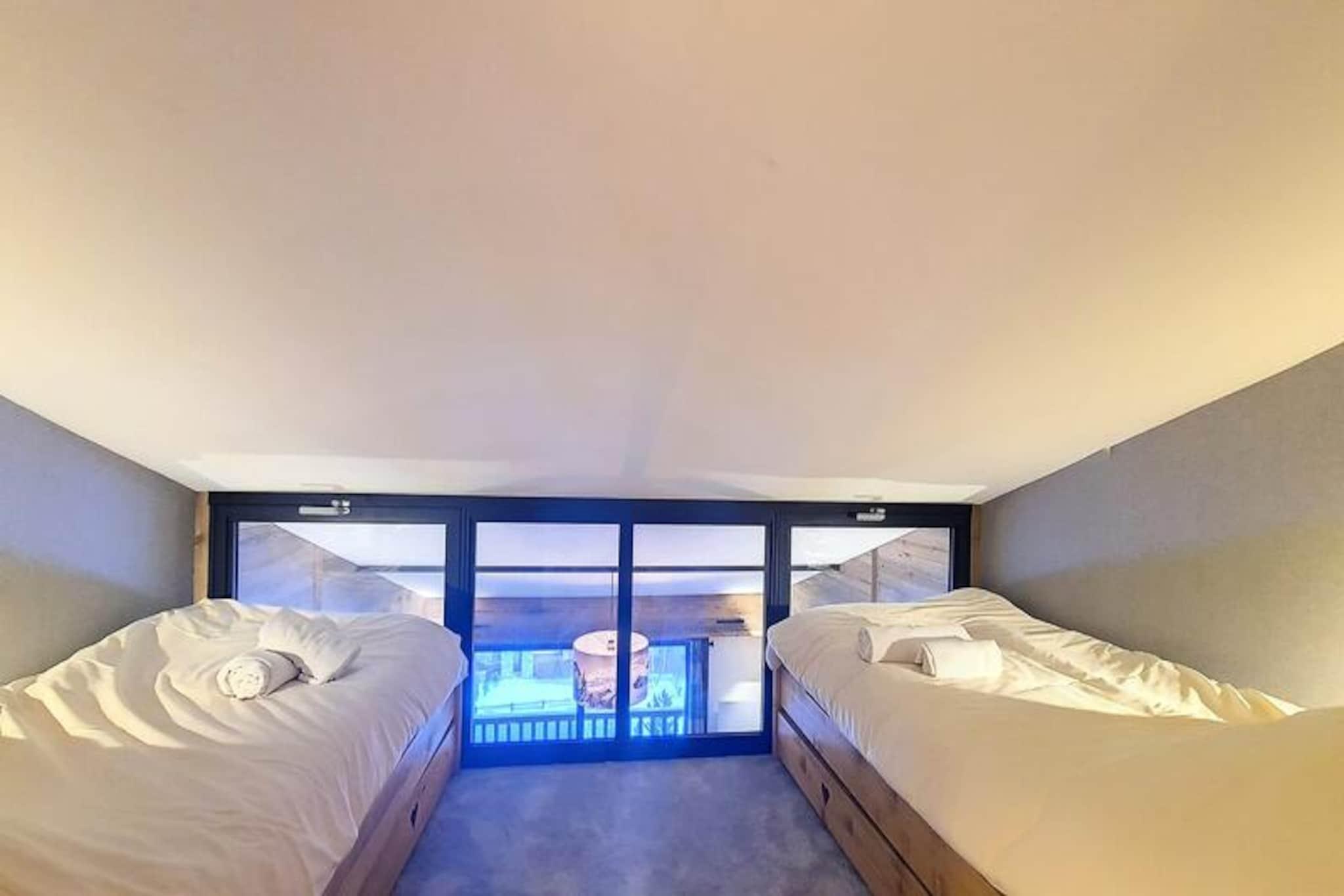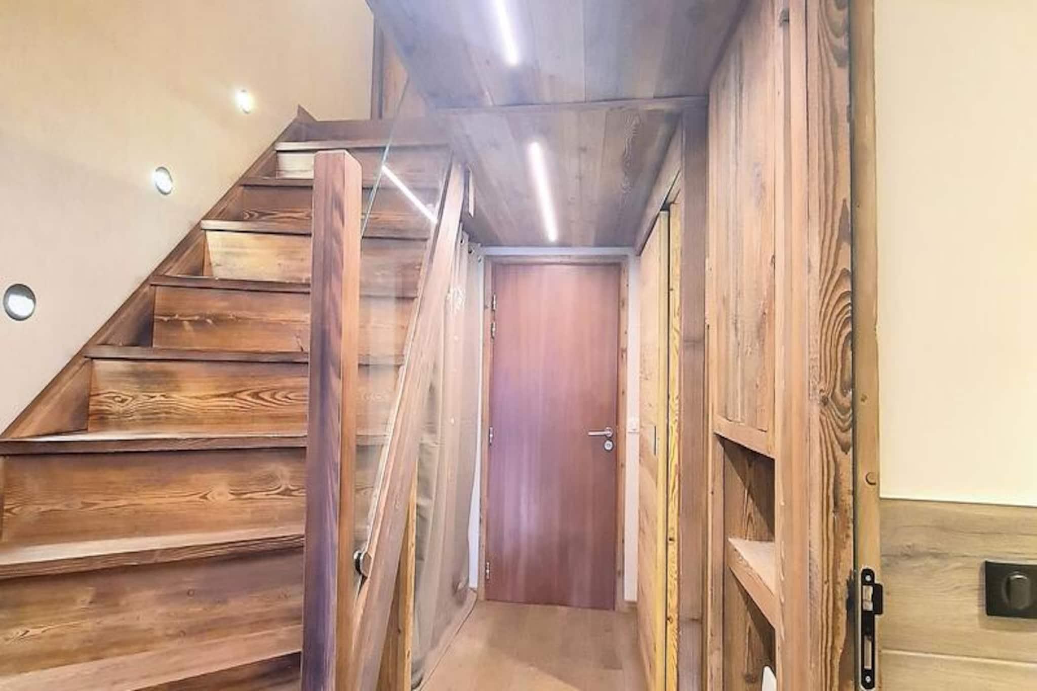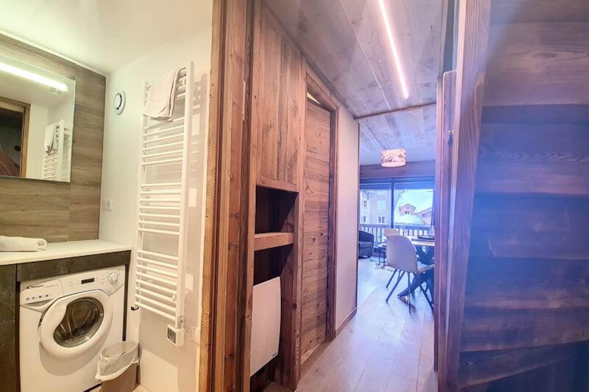 Inmitten des lebendigen Charmes von Val d'Isère bietet dieses wunderschön renovierte 2-Zimmer-Apartment einen einladenden Rückzugsort, nur 3 Gehminuten von den Pisten entfernt. Das nach Süden ausgerichtete Juwel befindet sich im 4. Stock der Residenz Le Dôme und verfügt über einen sonnigen Balkon, der sich perfekt eignet, um das alpine Ambiente zu genießen. Ob Sie nun wegen des Skivergnügens oder der frischen Bergluft hier sind, diese gemütliche Oase wird Ihren Aufenthalt unvergesslich machen. \n\nDas Apartment bietet bequem Platz für bis zu vier Gäste. Auf der Galerie befindet sich ein Hauptschlafzimmer mit einem komfortablen Doppelbett, während die Bergecke mit zwei gemütlichen Einzelbetten unter einem Dachfenster eine warme und intime Atmosphäre schafft. Das Wohnzimmer mit Essbereich und Lounge ist der perfekte Ort, um nach einem erlebnisreichen Tag zu entspannen. Moderne Annehmlichkeiten wie Smart-TV, WLAN (je nach Verfügbarkeit) und eine voll ausgestattete Küche mit Cerankochfeld, Mikrowelle und Geschirrspüler sorgen für Komfort wie zu Hause. Ein elegantes Duschbad, ein separates WC und eine Waschmaschine runden den Komfort ab. Im Herzen des Ferienortes gelegen, finden Sie alles, was Sie brauchen, in unmittelbarer Nähe. Vom Skiraum im Erdgeschoss bis hin zu Geschäften, Restaurants und Après-Ski-Angeboten in der Umgebung – die Lage ist unschlagbar. Profitieren Sie im Winter von Vorzugspreisen für die Skilifte von Tignes und Val d'Isère und genießen Sie ein noch unbeschwerteres Skierlebnis. Ob Sie Abenteuer auf der Piste oder Ruhe und Erholung in den Bergen suchen – dieses Apartment vereint modernen Komfort mit dem zeitlosen Charme von Val d'Isère. Lassen Sie sich von der Magie der französischen Alpen verzaubern und erleben Sie unvergessliche Momente.