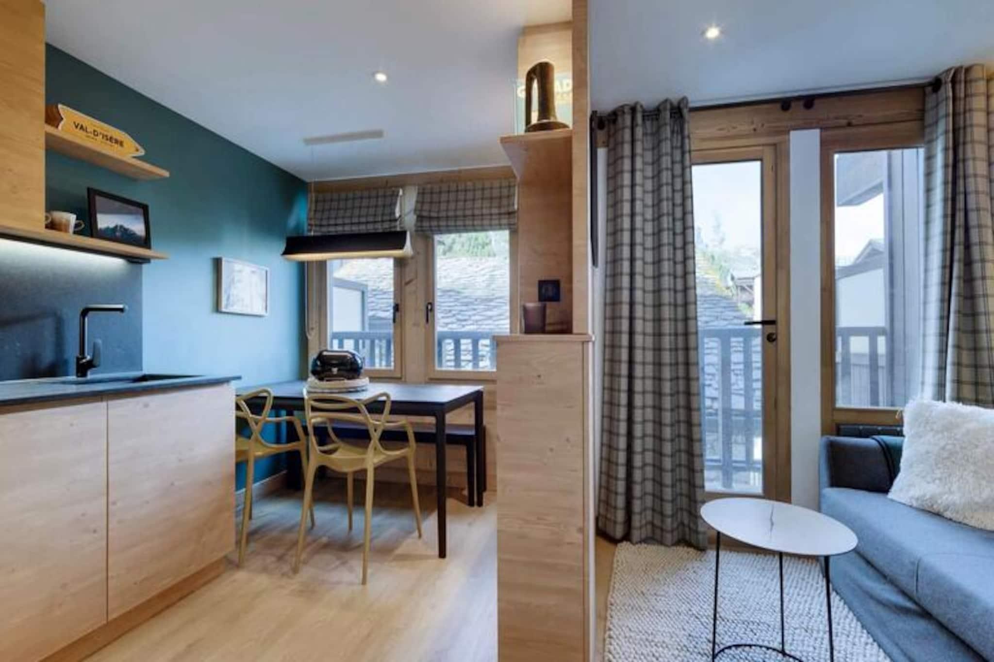 Inmitten des bezaubernden Charmes von Val d'Isère Village bietet dieses wunderschön renovierte Apartment einen gemütlichen Rückzugsort für zwei Personen und vereint modernen Komfort mit traditionellem savoyischem Flair. Dank der Westausrichtung genießen Sie jeden Morgen einen atemberaubenden Blick auf die berühmte Bellevarde-Piste – ein Anblick, der die alpine Atmosphäre dieses begehrten Reiseziels perfekt ergänzt. Ob Sie aufregende Tage auf der Piste oder ruhige Abende im Dorf verbringen möchten, diese Unterkunft liegt mittendrin. Das Apartment besticht durch seine durchdachte Raumaufteilung mit einem separaten Schlafzimmer, einer voll ausgestatteten Küche und einem einladenden Wohnzimmer mit Flachbildfernseher und bequemen Sitzmöbeln. Das Badezimmer verfügt über eine geräumige Dusche und eine Waschmaschine, während ein separates WC und viel Stauraum für zusätzlichen Komfort sorgen. Gäste werden die inkludierten Annehmlichkeiten wie WLAN, Bettwäsche, Handtücher und die Zwischenreinigung zu schätzen wissen, die einen reibungslosen und entspannten Urlaub garantieren. Nur wenige Schritte von Ihrer Tür entfernt finden Sie direkten Zugang zu den Skipisten, der französischen Skischule sowie einer Vielzahl von Geschäften und Restaurants. Für Après-Ski-Unterhaltung laden die lebhaften Bars Coin des Amis und Le Doudoune Club ein, während La Corniche mit regionalen Köstlichkeiten lockt. Skiausrüstung können Sie dank Sonderpreisen im nahegelegenen INTERSPORT Front de Neige MATTIS bequem ausleihen. Ob Sie Abenteuer oder Entspannung suchen – dieses Apartment ist der perfekte Ausgangspunkt, um die Schönheit und Vielfalt von Val d'Isère zu entdecken. Tauchen Sie ein in den alpinen Lebensstil und schaffen Sie unvergessliche Erinnerungen in diesem malerischen Bergdorf.