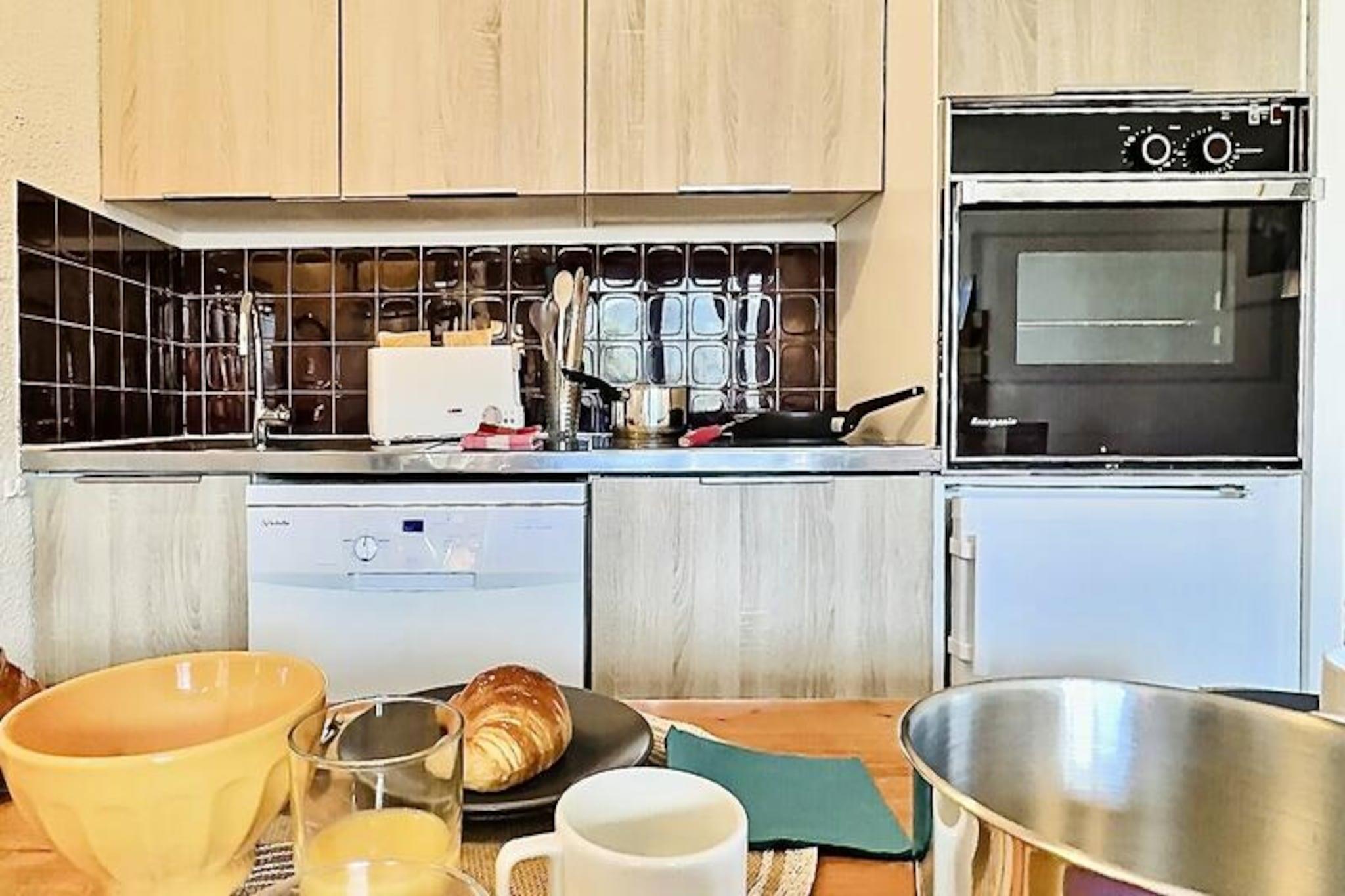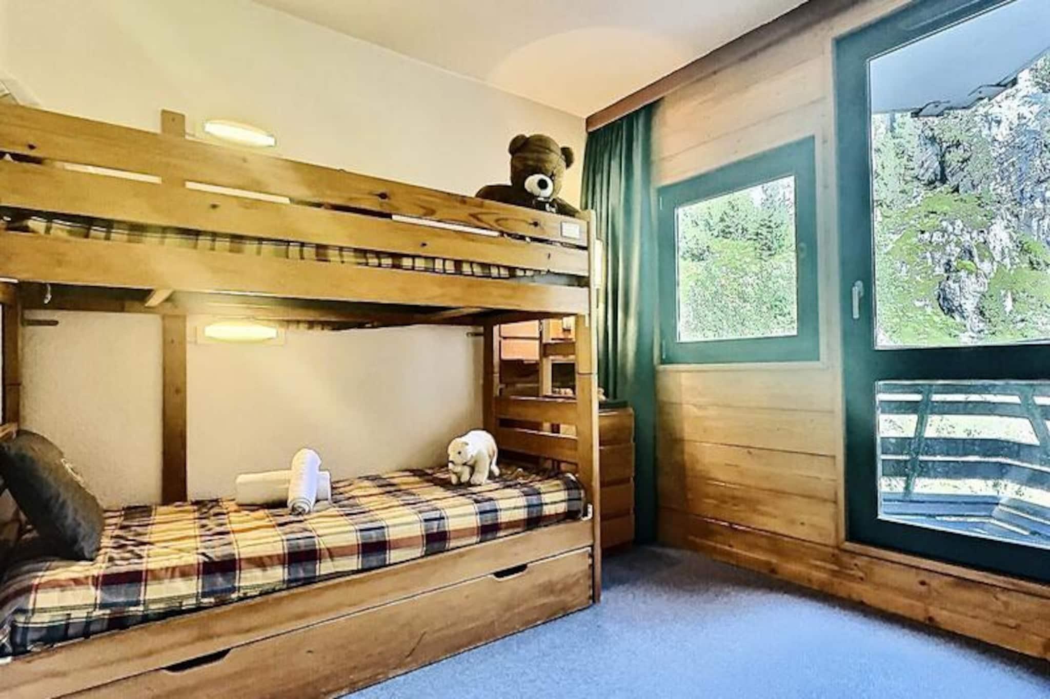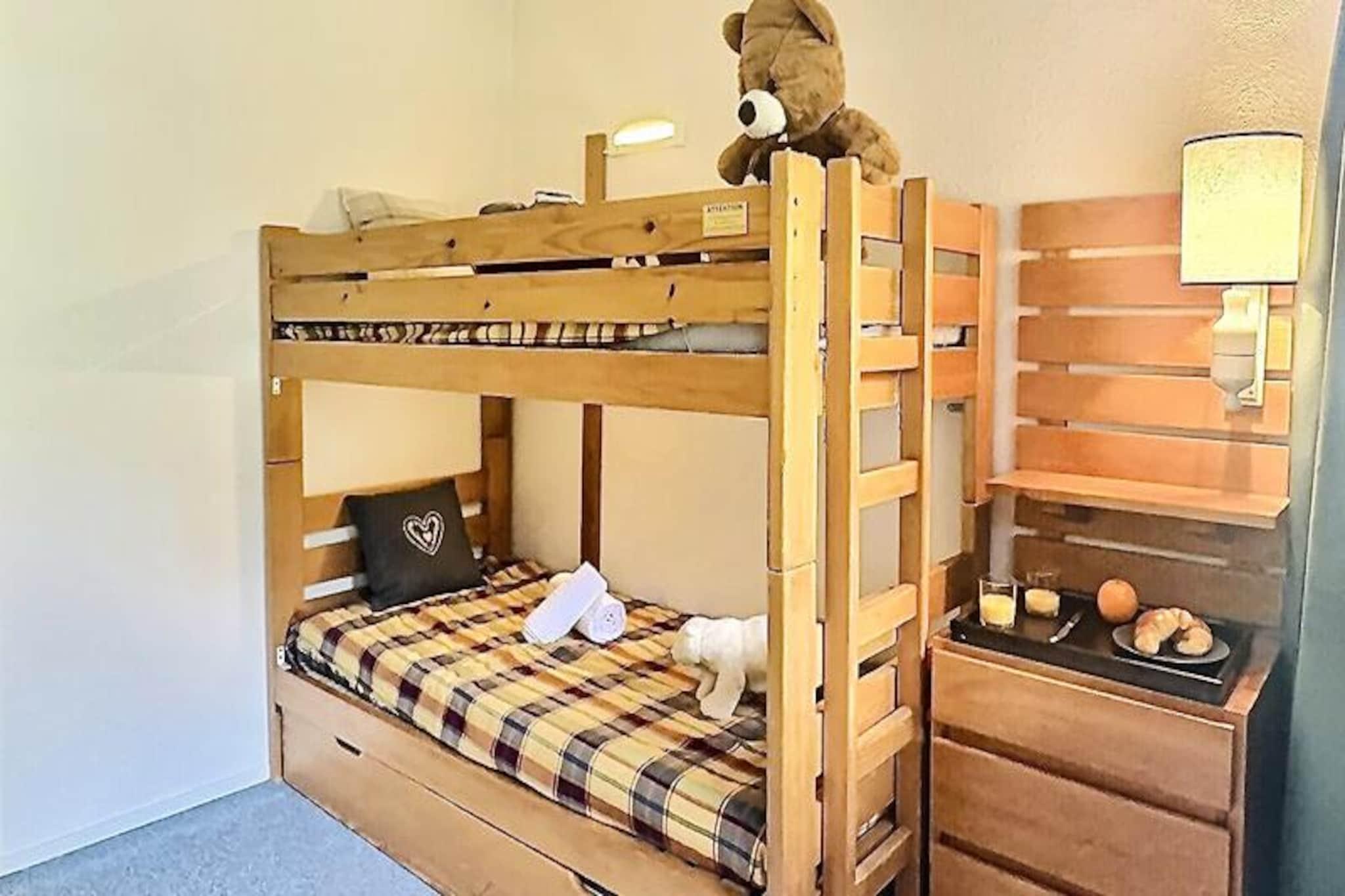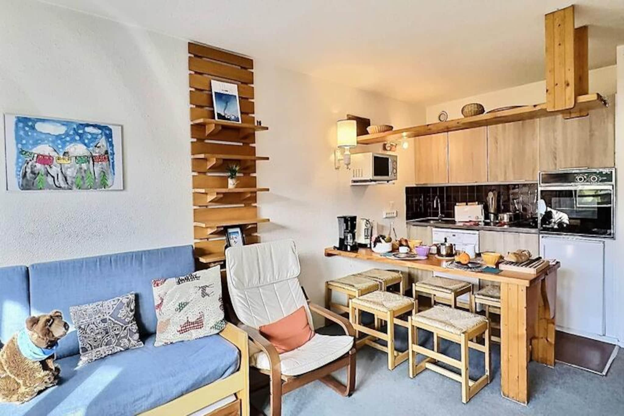 Hoch über dem charmanten Alpendorf La Daille lädt dieses gemütliche Ein-Zimmer-Apartment Sie ein, den Zauber des Val d'Isère zu jeder Jahreszeit zu erleben. Von der erhöhten Lage im 8. Stock bietet die Unterkunft atemberaubende Ausblicke auf das umliegende Tal, majestätische Berge und unberührte Skipisten. Ob Sie aufregende Wintersportarten oder entspannte Sommerwanderungen suchen – dieses Refugium ist der perfekte Ausgangspunkt für Ihre alpinen Abenteuer. Das 40 m² große Apartment ist durchdacht gestaltet und bietet Platz für bis zu fünf Gäste. Das Wohnzimmer verfügt über bequeme Ausziehbetten, während das Schlafzimmer mit drei Etagenbetten ausgestattet ist – ideal für Familien oder kleine Gruppen. Eine voll ausgestattete Küche mit Induktionskochfeld, Backofen, Mikrowelle, Geschirrspüler und Kühlschrank ermöglicht es Ihnen, nach einem erlebnisreichen Tag herzhafte Mahlzeiten zuzubereiten. Das Apartment verfügt außerdem über ein Badezimmer mit Badewanne, ein separates WC und zwei private Balkone – einer nach Süden ausgerichtet für sonnige Morgenstunden und Panoramablick, der andere nach Norden für ruhigere Momente. Moderne Annehmlichkeiten wie ein Fernseher und ein Skischrank sorgen für zusätzlichen Komfort. Treten Sie vor die Tür und Sie befinden sich in einem Ski-in/Ski-out-Paradies mit direktem Zugang zu den Weltklasse-Pisten von Val d'Isère. Die nahegelegenen