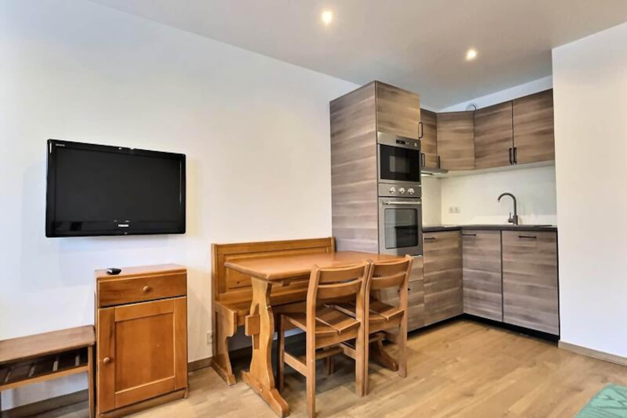 Hoch über dem malerischen Dorf Val d'Isère bietet dieses charmante Zweizimmer-Apartment einen gemütlichen Rückzugsort für Ihre alpinen Abenteuer. Vom Südbalkon aus genießen Sie jeden Morgen einen atemberaubenden Bergblick und die Vorfreude auf erlebnisreiche Tage – ob Sie im Winter die verschneiten Pisten hinabsausen oder im Sommer die üppigen Wanderwege erkunden. Die Unterkunft befindet sich im Viertel La Balme, innerhalb der Hotelresidenz Odalys, und vereint Komfort mit Ruhe. Sie liegt nur 400 Meter von den Skipisten und 300 Meter vom lebhaften Dorfzentrum entfernt. Treten Sie ein in dieses 28 m² große Apartment, das bequem Platz für bis zu vier Gäste bietet. Das Wohnzimmer ist mit zwei Einzelbetten ausgestattet – ideal zum Entspannen nach einem Tag im Freien. Das separate Schlafzimmer verfügt über ein gemütliches Doppelbett für erholsame Nächte. Die voll ausgestattete Küche mit Elektroherd, Backofen, Kühlschrank und Geschirrspüler lädt dazu ein, leckere Mahlzeiten für Sie und Ihre Lieben zuzubereiten. Ein Flachbildfernseher im Wohnzimmer und ein Skischrank runden die Annehmlichkeiten ab, die Ihren Aufenthalt so angenehm wie möglich gestalten. Val d'Isère ist ein Paradies für Outdoor-Fans und bietet erstklassige Möglichkeiten zum Skifahren, Wandern und Mountainbiken. Nach einem erlebnisreichen Tag lädt ein Spaziergang ins Dorfzentrum mit seinen charmanten Geschäften, Restaurants und Après-Ski-Angeboten zum Verweilen ein. Dank der Nähe zu Les Verdets und Les Hameaux des Verdets sind Sie immer mittendrin im Geschehen und genießen gleichzeitig einen ruhigen Rückzugsort. Ob Sie nun die Pulverschneehänge oder die Almwiesen besuchen – dieses Apartment ist Ihr Tor zu unvergesslichen Erlebnissen im Herzen der französischen Alpen.