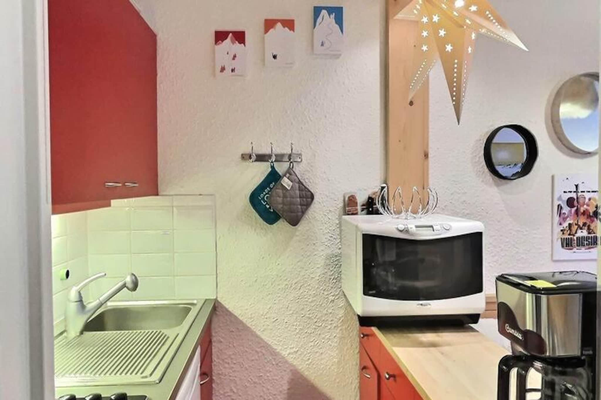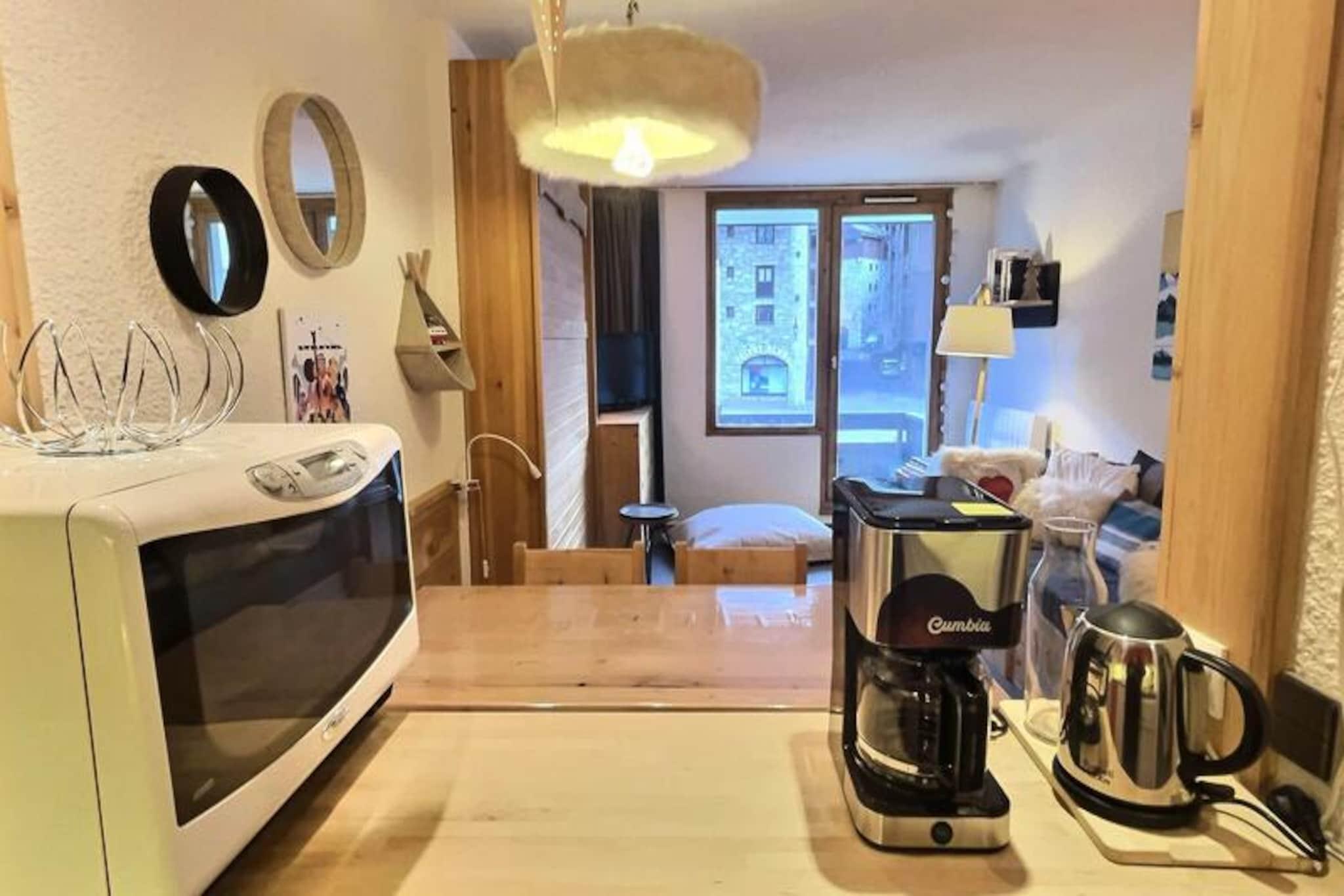 Hoch über dem charmanten Dorf Val d'Isère bietet dieses reizende Ein-Zimmer-Apartment einen gemütlichen Rückzugsort mit atemberaubendem Blick auf den umliegenden Wald und die majestätischen Berge. Der nach Süden ausgerichtete Balkon ist der perfekte Ort, um die Alpensonne zu genießen und den Blick über das malerische Dorf schweifen zu lassen – egal, ob Sie einen aufregenden Skiurlaub oder eine entspannte Sommerauszeit verbringen möchten. Mit seinem warmen Ambiente und dem durchdachten Design lädt diese Unterkunft zum Entspannen und Genießen der Schönheit der französischen Alpen ein. Das 30 m² große Apartment bietet bequem Platz für bis zu fünf Gäste und ist somit ideal für Familien oder kleine Gruppen. Im Wohnzimmer befindet sich ein praktisches 140 cm breites Doppelbett, während eine Schlafnische mit zwei 80 cm breiten Etagenbetten ausgestattet ist – perfekt für Kinder oder Freunde. Ein zusätzliches Klappbett im Flur sorgt für Flexibilität für alle Gäste. Die moderne Küche ist komplett ausgestattet mit Cerankochfeld, Mikrowelle mit Kochfeld, Geschirrspüler und Krups Kaffeemaschine – alles, was Sie für die Zubereitung köstlicher Mahlzeiten nach einem erlebnisreichen Tag benötigen. Ein gemütlicher Wohnbereich mit Fernseher und DVD-Player sorgt für zusätzlichen Komfort, und dank des WLANs im Apartment bleiben Sie während Ihres gesamten Aufenthalts online. Die Unterkunft bietet Annehmlichkeiten wie einen Aufzug, einen Skiraum für Ihre Ausrüstung und eine Waschmaschine für längere Aufenthalte. Nur wenige Schritte vom Herzen von Val d'Isère entfernt, erreichen Sie bequem die renommierten Skipisten, charmanten Geschäfte und die hervorragenden Restaurants, die diesen Ort so beliebt machen. Im Sommer laden üppige Wanderwege, Mountainbike-Strecken und idyllische Bergseen zum Erkunden ein. Ob Sie nun die erstklassigen Skigebiete oder die friedvolle Berglandschaft anziehen – dieses Apartment ist der perfekte Ausgangspunkt für einen unvergesslichen Alpenurlaub. Mit seiner einladenden Atmosphäre und der unschlagbaren Lage erwartet Sie Ihr Abenteuer in Val d'Isère.