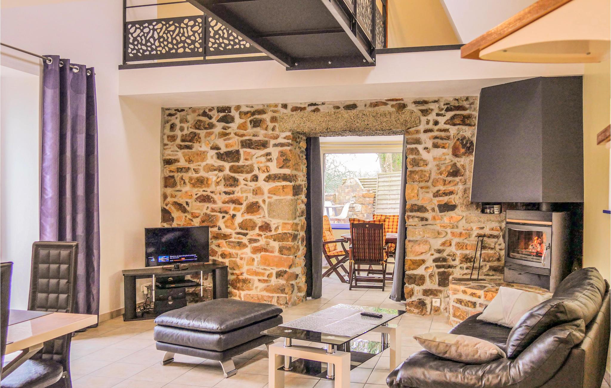 Dieses moderne und komfortable Ferienhaus ist Teil eines ehemaligen Bauernhofs aus dem Anfang des 20. Jahrhunderts. Die Fenstertüren im Wohnraum führen auf die möblierte Terrasse und ermöglichen es Ihnen, auch bei weniger gutem Wetter den Blick auf die Natur von drinnen zu genießen. Das Haus iist mit Glasfaser ausgestattet.