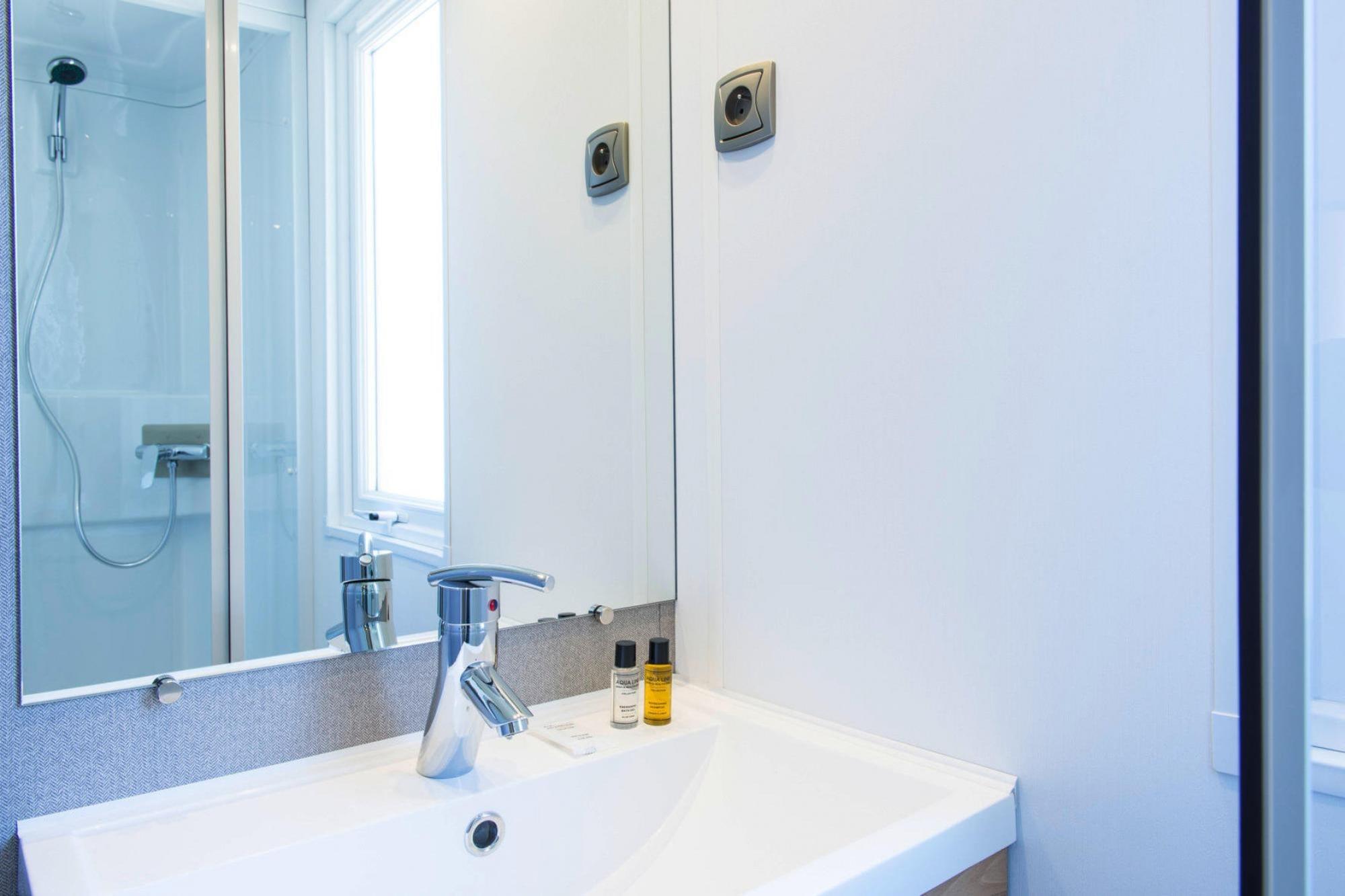 Dieses moderne Feriendorf liegt auf einem weitläufigen, 8 Hektar großen Gelände, nur 700 Meter vom Strand entfernt und ist bequem über einen Fußweg erreichbar. Die Anlage ist üppig bewachsen mit zahlreichen Pinien und schattenspendender einheimischer Flora, die in den heißen Sommermonaten für angenehme Kühle sorgt und die Luft mit einem herrlichen mediterranen Duft erfüllt. Gäste können auf ihrer privaten, 12 m² großen Terrasse oder am Gemeinschaftspool entspannen, während sich Kinder in den separaten Pools oder auf dem Spielplatz vergnügen. Das Mobilheim bietet einen komfortablen, modernen Wohnbereich mit Klimaanlage, Sitzecke, Esstisch und Fernseher (Hinweis: Keine niederländischen oder deutschen Sender verfügbar). Die Küchenzeile ist bestens für Selbstversorger ausgestattet und verfügt über Herd, Backofen, Mikrowelle, Wasserkocher, Kaffeemaschine und Kühlschrank sowie einen Geschirrspüler. Die Schlafgelegenheiten umfassen ein Hauptschlafzimmer mit einem geräumigen Doppelbett (160 x 200 cm) und ein zweites Schlafzimmer mit zwei Einzelbetten (80 x 190 cm). Die Unterkunft verfügt über zwei Badezimmer mit Dusche, Waschbecken und WC sowie ein separates Gäste-WC. Das Feriendorf bietet umfassende Annehmlichkeiten für einen abwechslungsreichen Aufenthalt. Der große Swimmingpool mit separatem Kinderbecken (50 cm tief) ist in der Regel vom 1. Juni bis 30. September geöffnet (wetterabhängig). Im Juli und August wird eine Kinderbetreuung für Kinder von fünf bis zwölf Jahren (4 Stunden täglich, 5 Tage die Woche) angeboten. Ein Animationsteam sorgt für ein abwechslungsreiches Sportprogramm für alle Altersgruppen. Ein Minimarkt mit Lieferservice für Brot, eine Bar und ein Restaurant sind von Ende Juni bis Mitte September geöffnet. Zur gemeinsamen Freizeitgestaltung stehen eine Boulebahn, Spielgeräte und eine Tischtennisplatte zur Verfügung.
