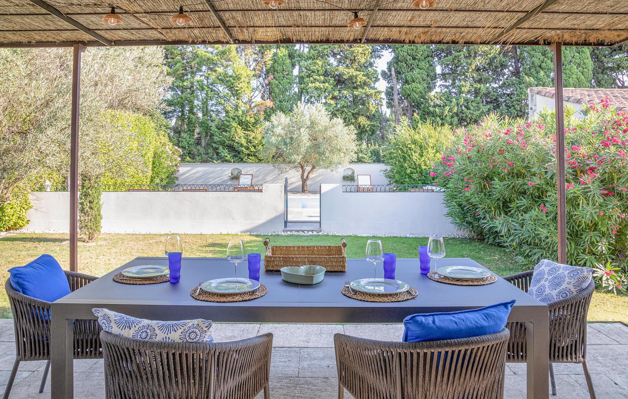 Entdecken Sie eine herrliche Ferienvilla in Verquières zwischen Saint Rémy de Provence und Avignon. Die Villa verfügt über einen beheizten Pool und liegt verkehrsgünstig nur 300 m von den nahegelegenen Geschäften entfernt. Das Erdgeschoss empfängt Sie mit einem großzügigen Wohnzimmer, Essbereich und einer einladenden überdachten Terrasse. Die separate, gut ausgestattete Küche verfügt über eine zentrale Insel, ergänzt durch eine angrenzende Spülküche und ein praktisches Duschbad. Im Obergeschoss erwarten Sie die wunderschön eingerichteten Schlafzimmer, darunter eines mit Etagenbetten (das obere Bett ist für Kinder unter 6 Jahren ungeeignet). Entspannen Sie sich draußen im privaten beheizten Swimmingpool mit Unterwasserbänken und Liegestühlen für ultimativen Komfort. Darüber hinaus gibt es ein Duschbad, Tischtennis und eine Kegelbahn für zusätzliche Unterhaltung. Bitte beachten Sie, dass der Steinbrunnen am Poolhaus nur der Dekoration dient. Erleben Sie den Reiz dieser Ferienvilla, in der Komfort, Bequemlichkeit und Freizeit auf Sie warten und die einen unvergesslichen Rückzugsort zwischen Saint Rémy de Provence und Avignon verspricht. Die Villa liegt in einer ruhigen Gegend nahe dem Zentrum von Verquières zwischen Saint Andiol und Palud de Noves.