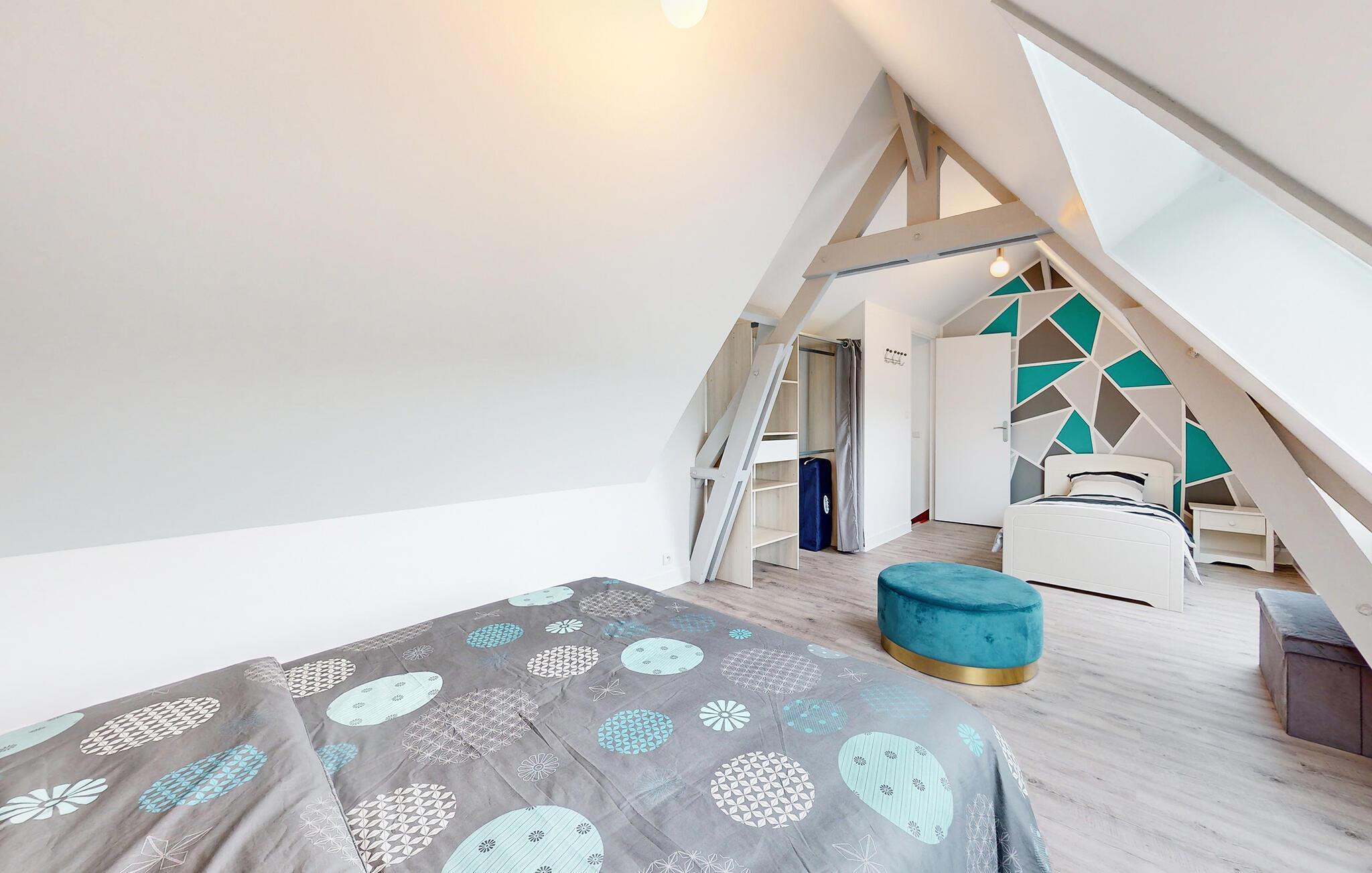 Schlafzimmer (nr. 1) - 1 Schlafmöglichkeit. (Einzelbett(en)). 2 Schlafmöglichkeiten. (Doppelbett(en)).
