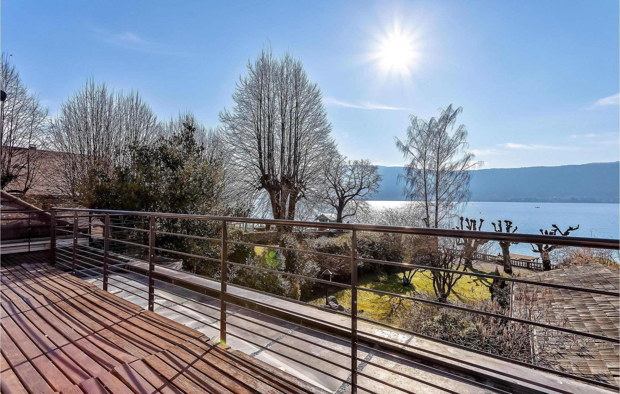 Eingebettet in Veyrier du Lac bietet dieses Ferienhaus am Seeufer einen außergewöhnlichen Rückzugsort am See von Annecy mit einem privaten Ponton. Das Erdgeschoss der Immobilie verfügt über einen geräumigen Wohnbereich, eine voll ausgestattete Küche und eine ruhige Veranda, die auf eine Terrasse mit Seeblick führt. Auf dieser Ebene finden Sie auch ein Schlafzimmer und ein Duschbad. Der Aufstieg in die erste Etage offenbart Schlafzimmer mit herrlichem Blick auf den See. Im Dachgeschoss befinden sich weitere Schlafzimmer. Allerdings ist ein Raum, der über eine Wendeltreppe erreichbar ist, möglicherweise nicht für Personen mit eingeschränkter Mobilität geeignet. Im Außenbereich verfügt das Anwesen über eine große Grundstücksfläche, eine Terrasse am Seeufer, einen ungesicherten privaten Ponton, einen Parkplatz für zwei Autos und einen Grillplatz für köstliche Mahlzeiten am Seeufer. Aufgrund der Lage der Unterkunft am See müssen Kinder jederzeit beaufsichtigt werden. Bitte beachten Sie, dass es für den Ponton keinen Handlauf gibt. Vor Ihrer Ankunft muss ein Haftungsausschluss unterzeichnet werden. Das Haus liegt ganz in der Nähe des Dorfzentrums. Alle örtlichen Geschäfte sind im Umkreis von 500 m, Restaurants und ein Bootsverleih sind nur 150 m entfernt. Erleben Sie den Charme und die Ruhe dieses Rückzugsortes am Seeufer, wo Komfort und die Faszination des Sees von Annecy einen unvergesslichen Aufenthalt in Veyrier du Lac versprechen.