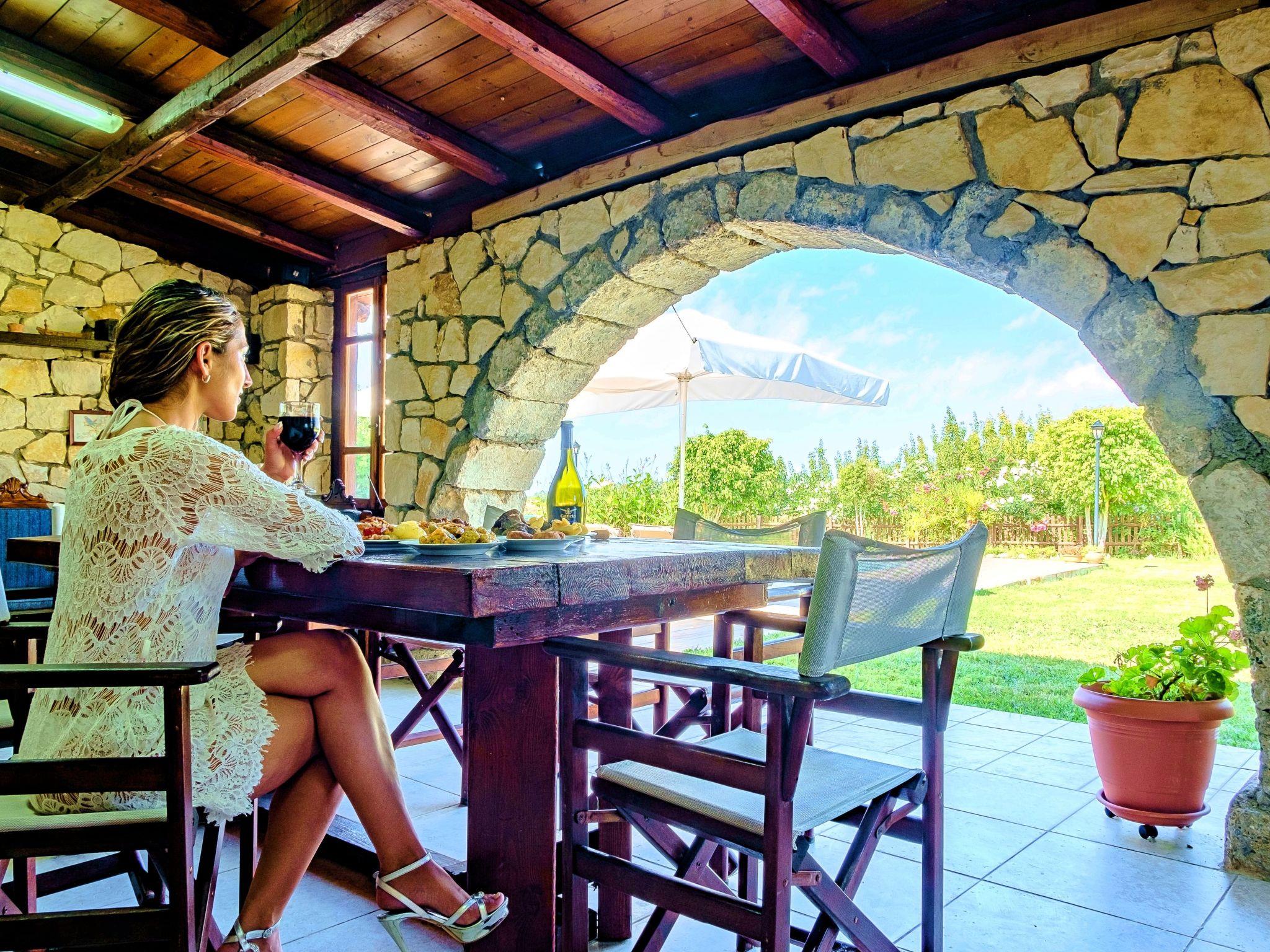 Die Villa Evelina verfügt über folgende Ausstattung: Im Erdgeschoss * Ein Schlafzimmer mit einem Queen-Size-Doppelbett. * Ein Wohnzimmer mit Kochnische und zwei Schlafsofas. * Ein Badezimmer mit Dusche. Im Obergeschoss * Ein großes Wohn-Esszimmer mit Kamin, direktem Zugang zu einer großen Terrasse, dem Garten und dem Poolbereich.