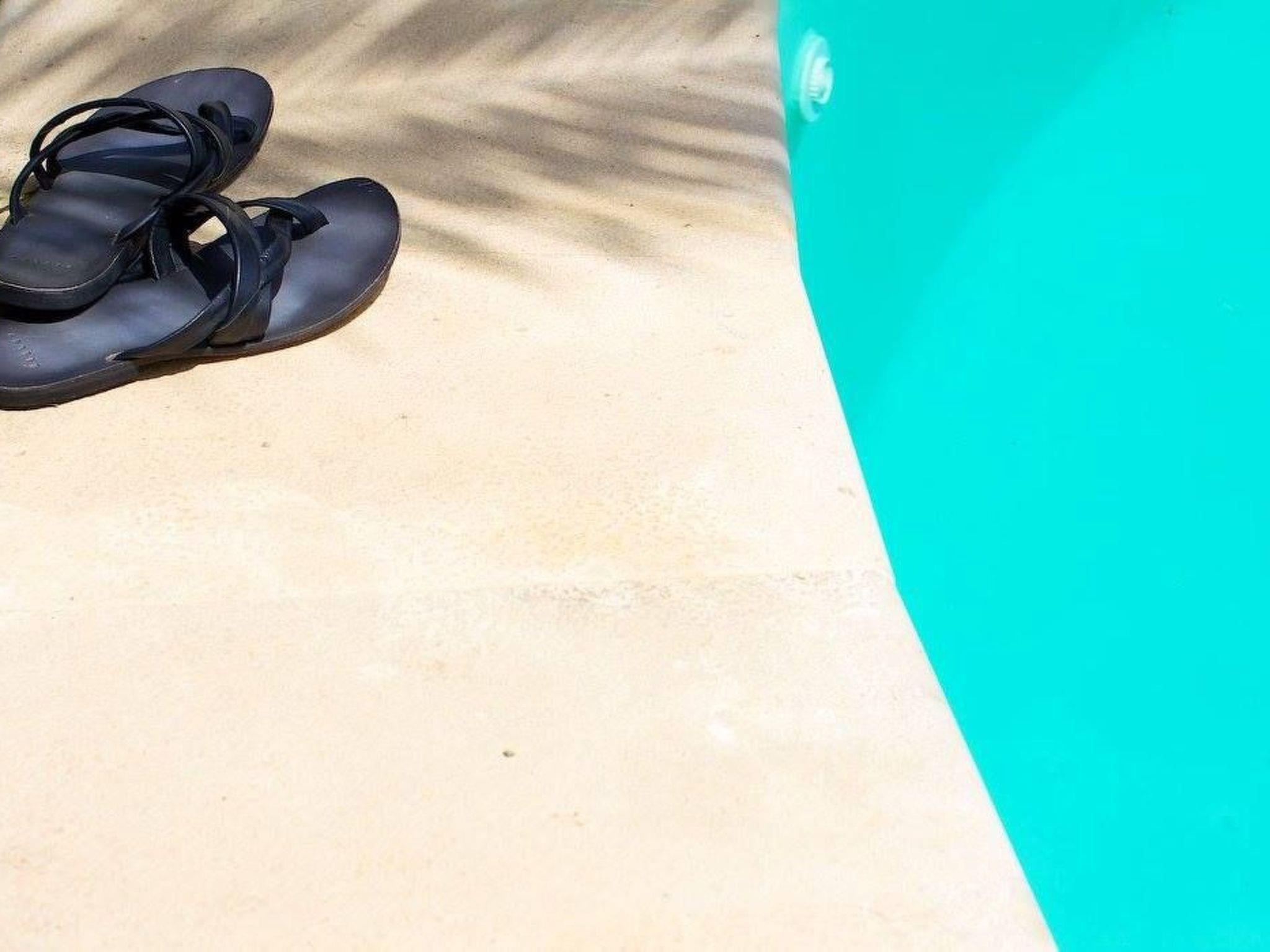 Im Außenbereich der Steinvilla Erato ist eine Terrasse im Erdgschossbereich, von der man direkten Zugang zu dem privaten Swimming Pool im Garten hat. Im oberen Stockwerk ist eine sehr große Veranda, die sowohl über eine Aussentreppe als auch über eine Innentreppe erreichbar ist. Von dieser Veranda eröffnet sich ein wahrhaft traumhafter Blick auf das Meer und die Weißen Berge (2.500m Höhe und von November bis Mai schneebedeckt). Hier kann man einen wunderschönen Sonnenuntergang in den Abendstunden genießen. Der Gartenbereich verfügt über eine Rasenfläche.