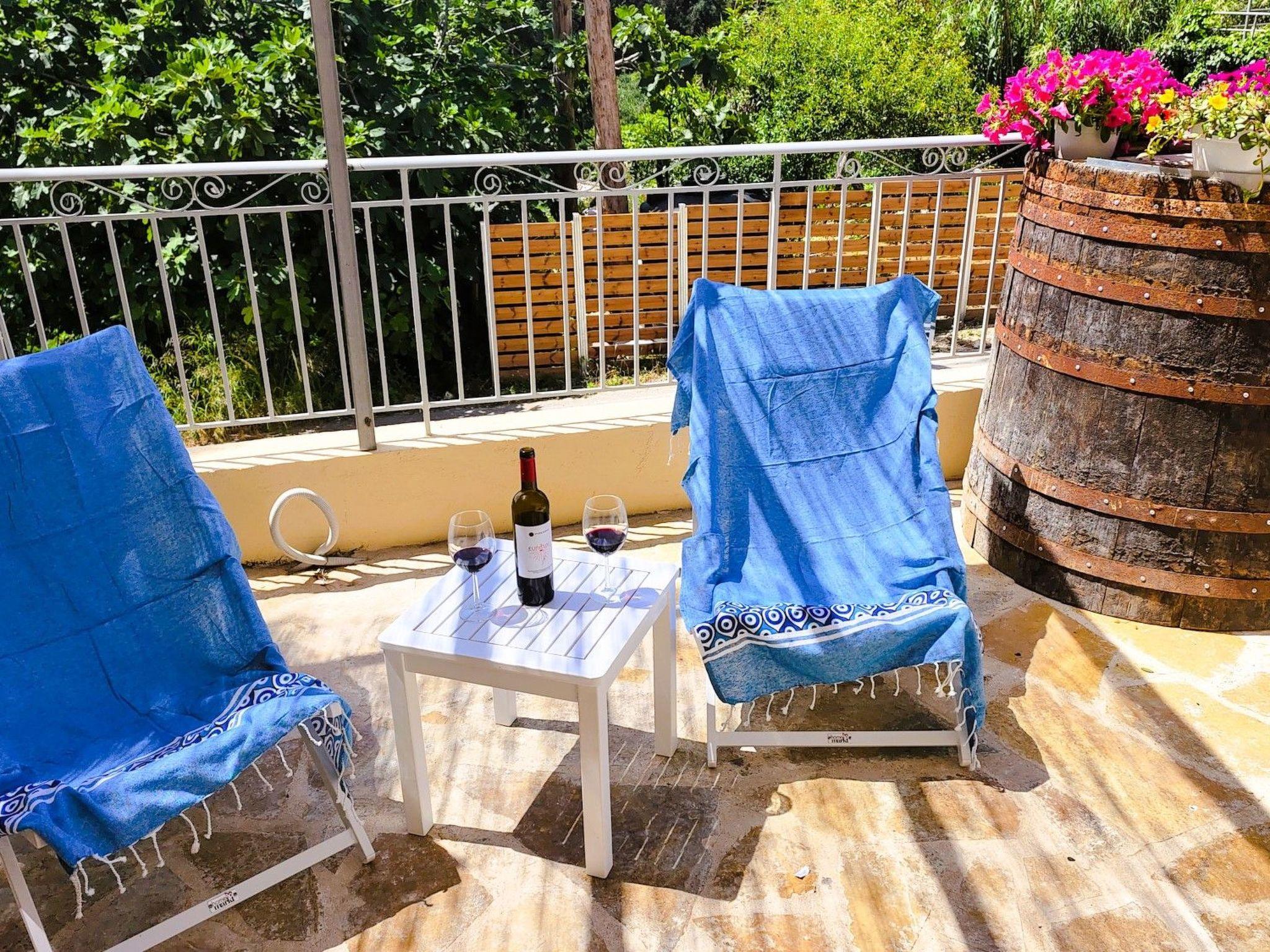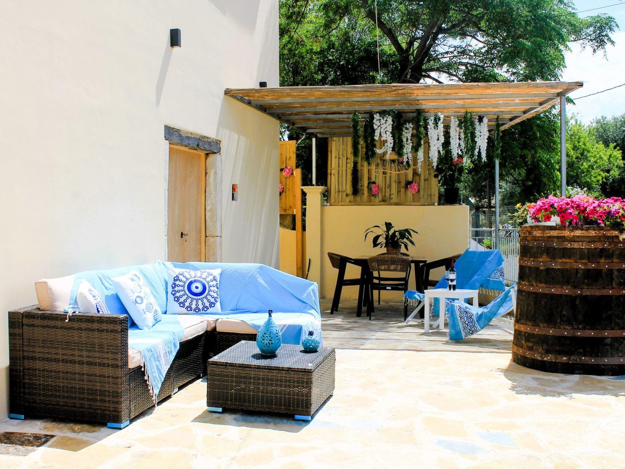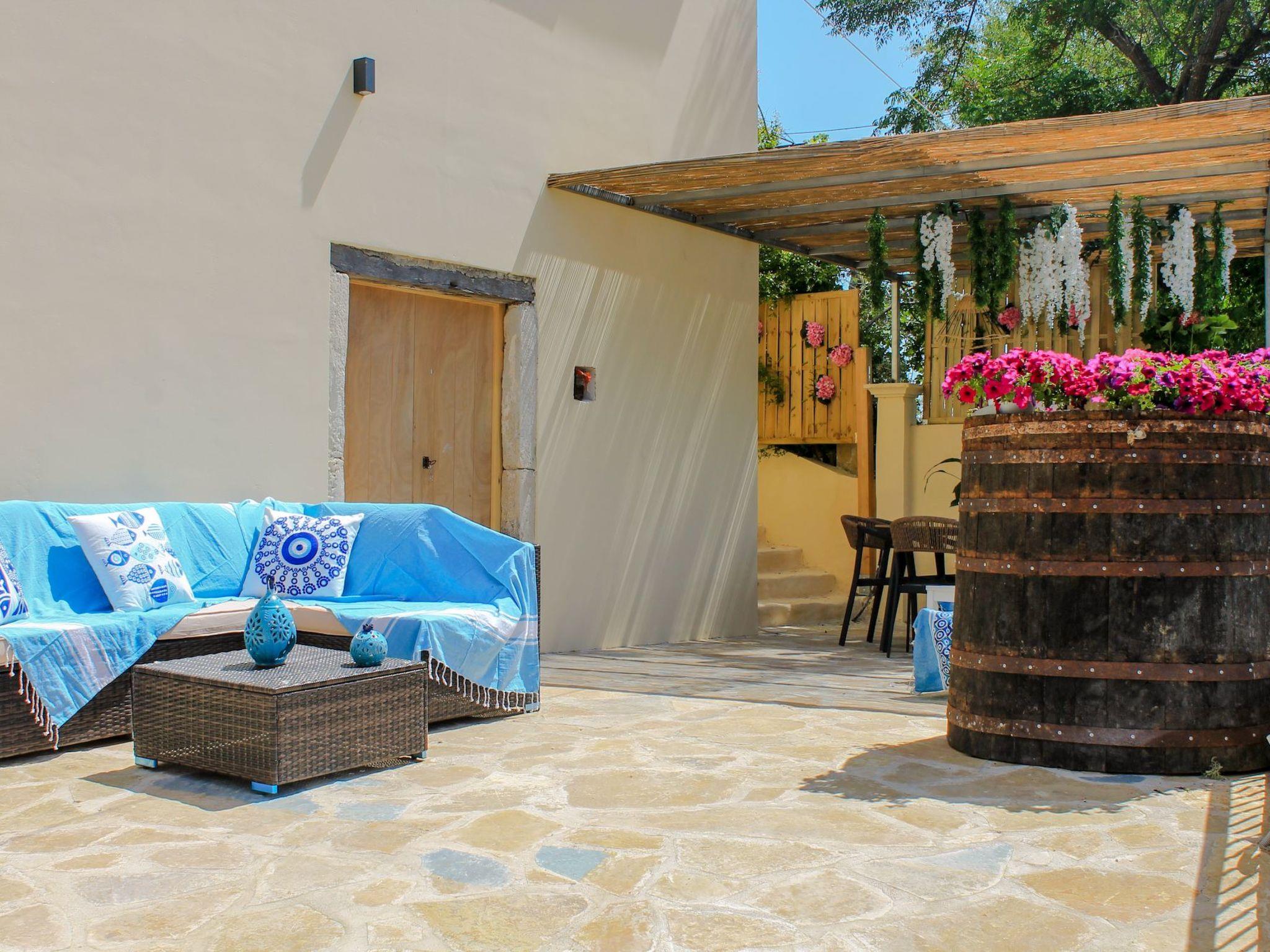 Treten Sie nach draußen und erleben Sie das einladende Ambiente der Villa Linos. Der Innenhof bietet ausreichend Platz, um das Frühstück oder die Mahlzeiten unter freiem Himmel zu genießen, umgeben von den friedlichen Melodien der ländlichen Umgebung. Tauchen Sie ein in die ruhige Atmosphäre dieses malerischen Ortes, wo jedes Detail darauf ausgerichtet ist, schöne Erinnerungen mit Ihren Lieben zu schaffen.