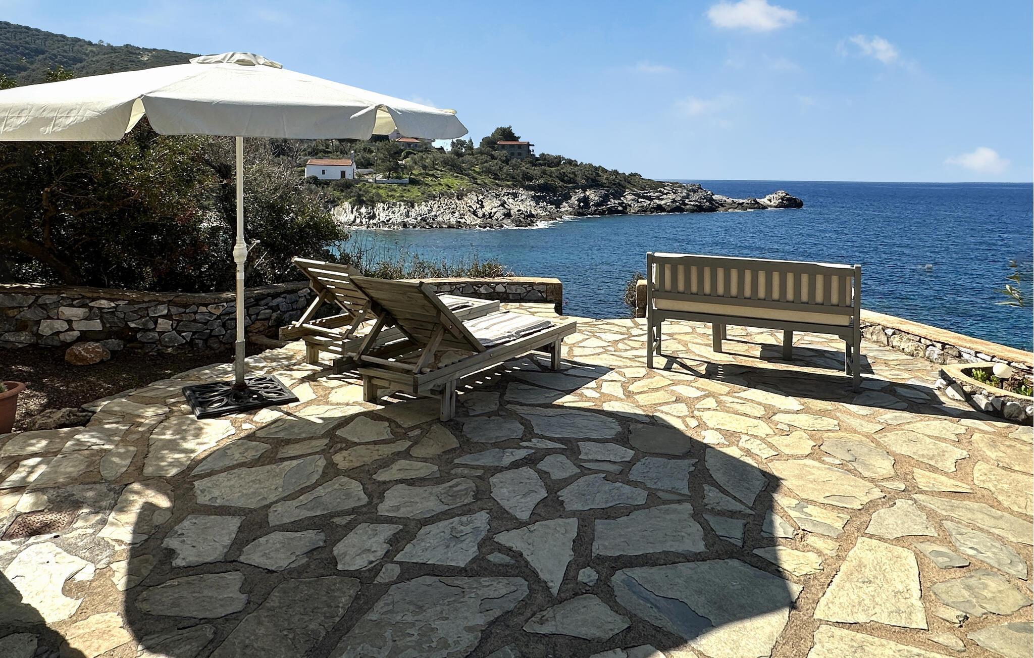Von der felsigen Küste gelangen Sie direkt ins Wasser. In der Nähe laden ein Sand- und ein Steinstrand zum Baden und Sonnen ein. Genießen Sie die einzigartige Atmosphäre der nahe gelegenen Dörfer Aghios Nikolaos, Stoupa an der Küste, Kardamyli und Aghios Dimitrios mit einer Auswahl an Tavernen mit lokalen Spezialitäten und traditionellen Cafés die unweigerlich zum griechischen Landleben dazu gehören. Sie finden hier gute Wanderwege, die Sie hinauf auf den Berg Taygetos führen.