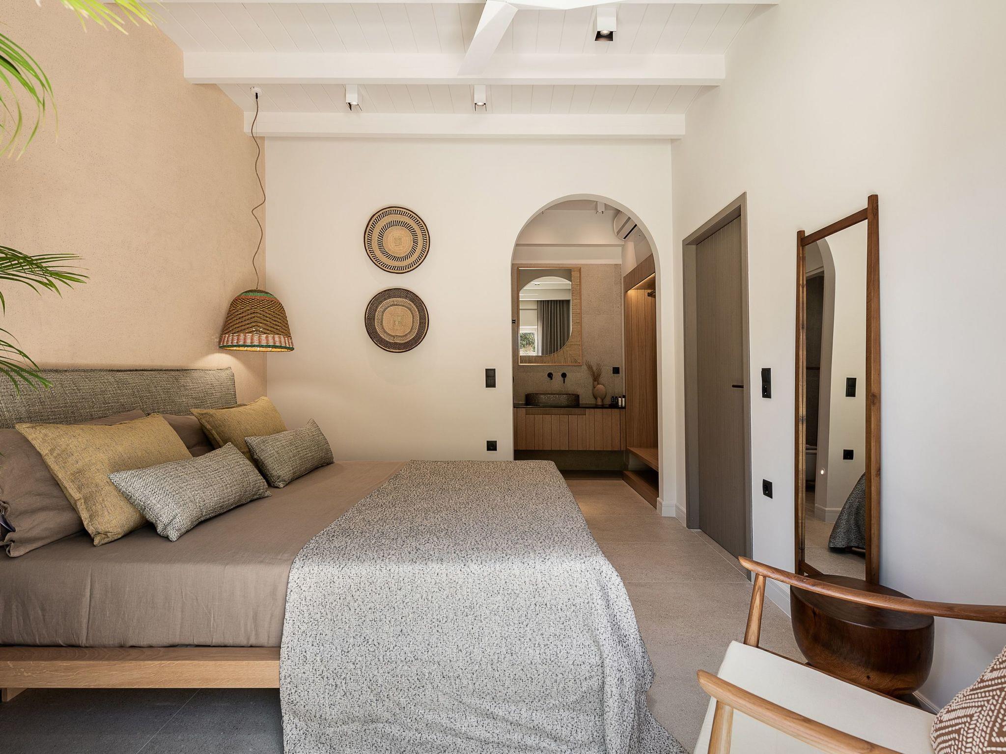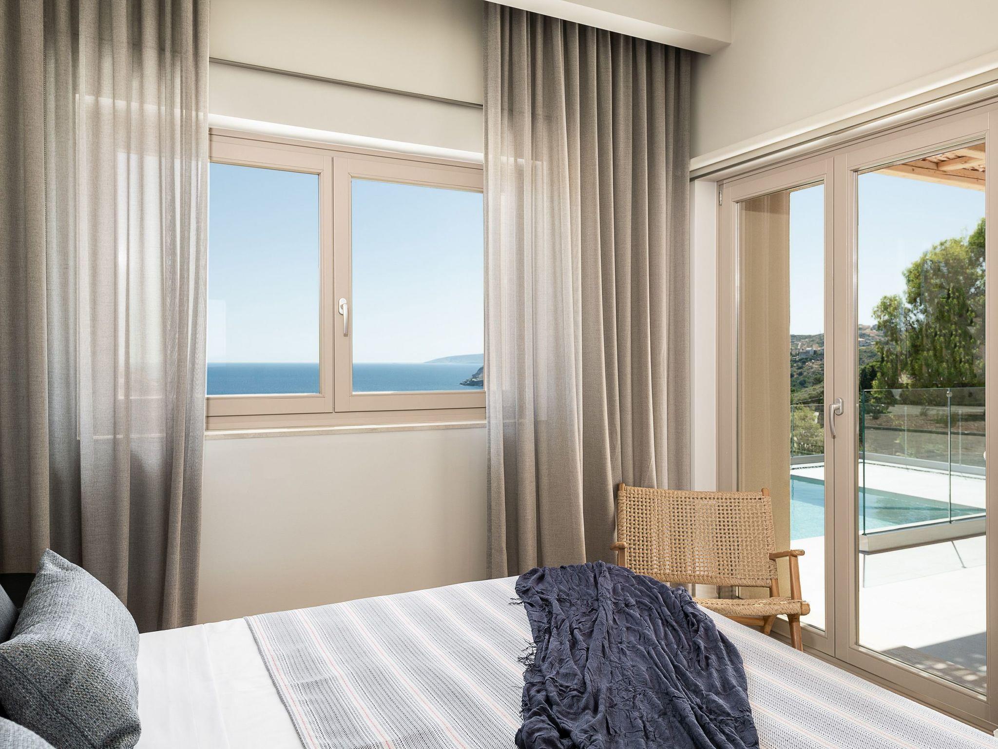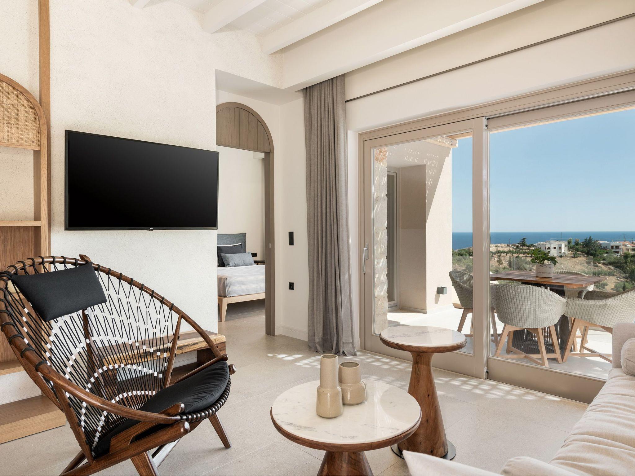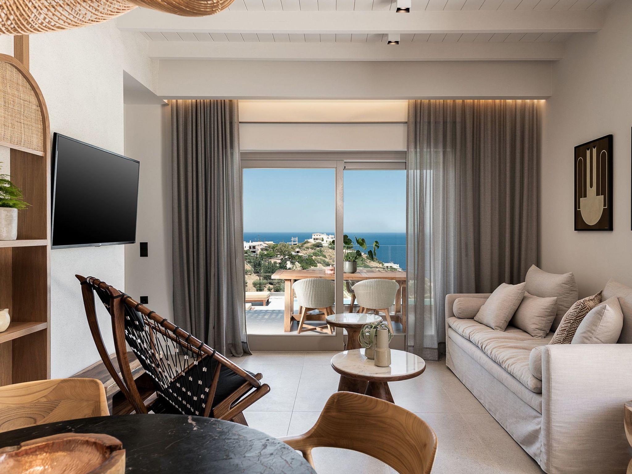 Die Kokomo Villas liegen auf einem Hügel mit Blick auf die Bucht von Lygaria im Großraum Agia Pelagia. Sie sind vom Flughafen Heraklion/Heraklion in etwa 25 Minuten zu erreichen. Sie ist von der Autobahn aus leicht zu erreichen und ideal als Ausgangspunkt für die Erkundung von Sehenswürdigkeiten. Die Villa zeichnet sich durch eine hohe Ästhetik und einen atemberaubenden Panoramablick auf das Kretische Meer aus. Die erdigen Töne der Räume gehen in das tiefe Blau des Meeres und des Himmels über und bieten ein unvergessliches Gefühl von Harmonie und Sanftheit. Jeder Aspekt, jedes Material und jedes Element wurde sorgfältig ausgewählt, um Sie in einen Zustand der Ruhe und Zufriedenheit zu hüllen. In der Villa Gaia gibt es 2 Schlafzimmer, beide mit Kingsize-Betten und eigenen Badezimmern mit Duschen. Das vordere Schlafzimmer bietet einen Panoramablick auf das Meer und direkten Zugang zur vorderen Veranda. Das hintere Schlafzimmer bietet einen direkten Zugang zum schönen Garten. Das Wohnzimmer mit herrlichem Meerblick ist mit einer voll ausgestatteten offenen Küche und einem Esszimmer verbunden und öffnet sich zur Veranda hin. Der vordere Außenbereich ist außerordentlich geräumig und die Aussicht ist eine Freude für die Augen. Er bietet einen privaten Swimmingpool mit Sonnenliegen, eine Außendusche, Lounge-Poufs, einen Grill (Gas) und einen Essbereich. Darüber hinaus hat Kokomo Villas Sonnenkollektoren installiert, um einen Teil der Energie, die in der Immobilie benötigt wird, durch sie zu liefern. WICHTIGER HINWEIS: Diese Immobilie ist nicht für Kinder von 2 bis 7 Jahren geeignet, da es einen Infinity-Pool und einige nicht überdachte Bereiche gibt.