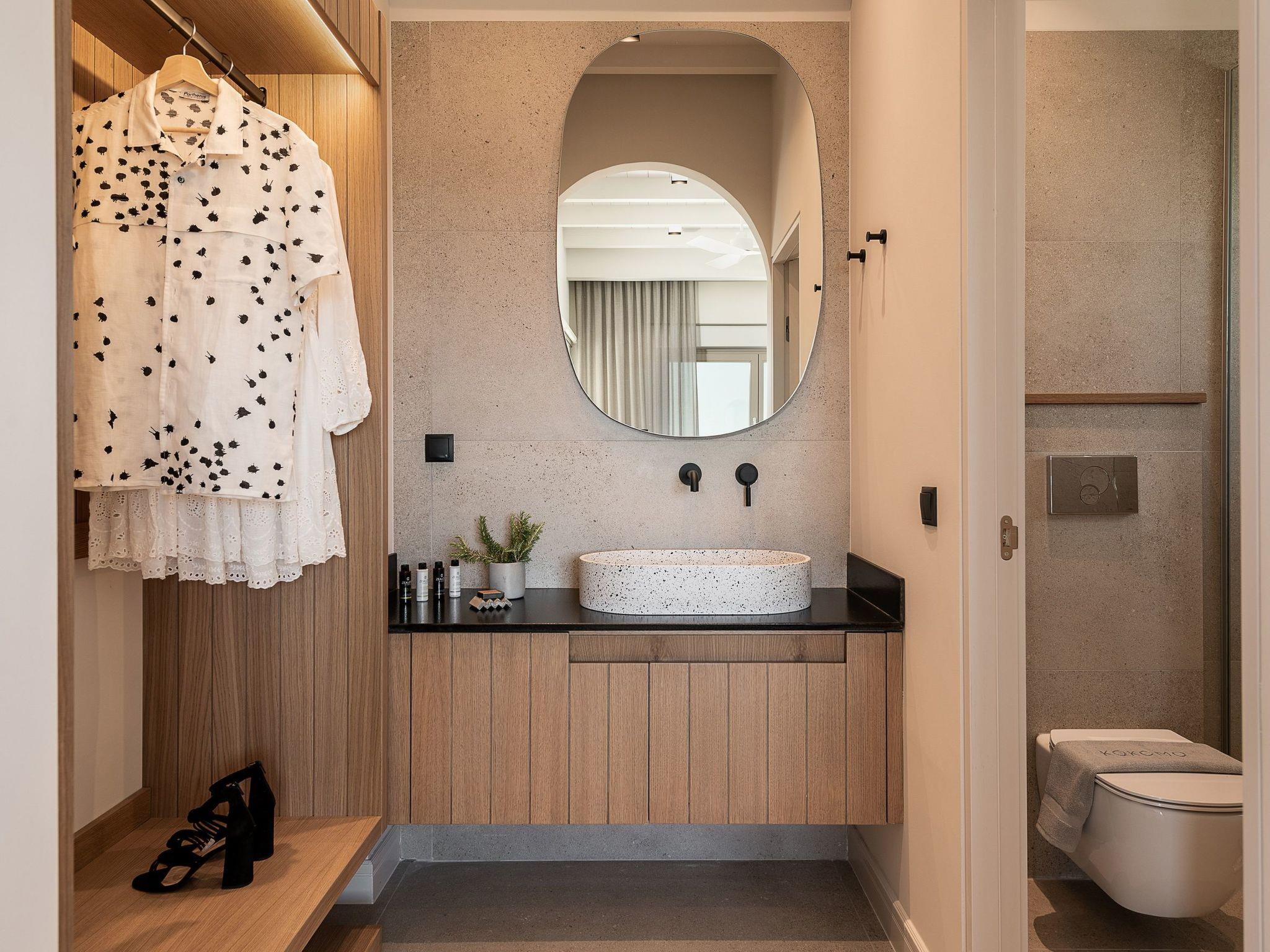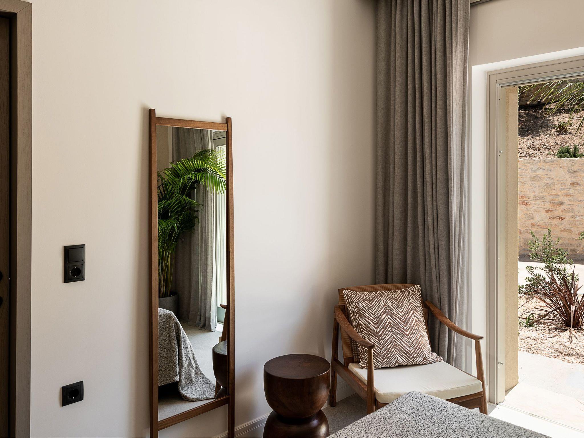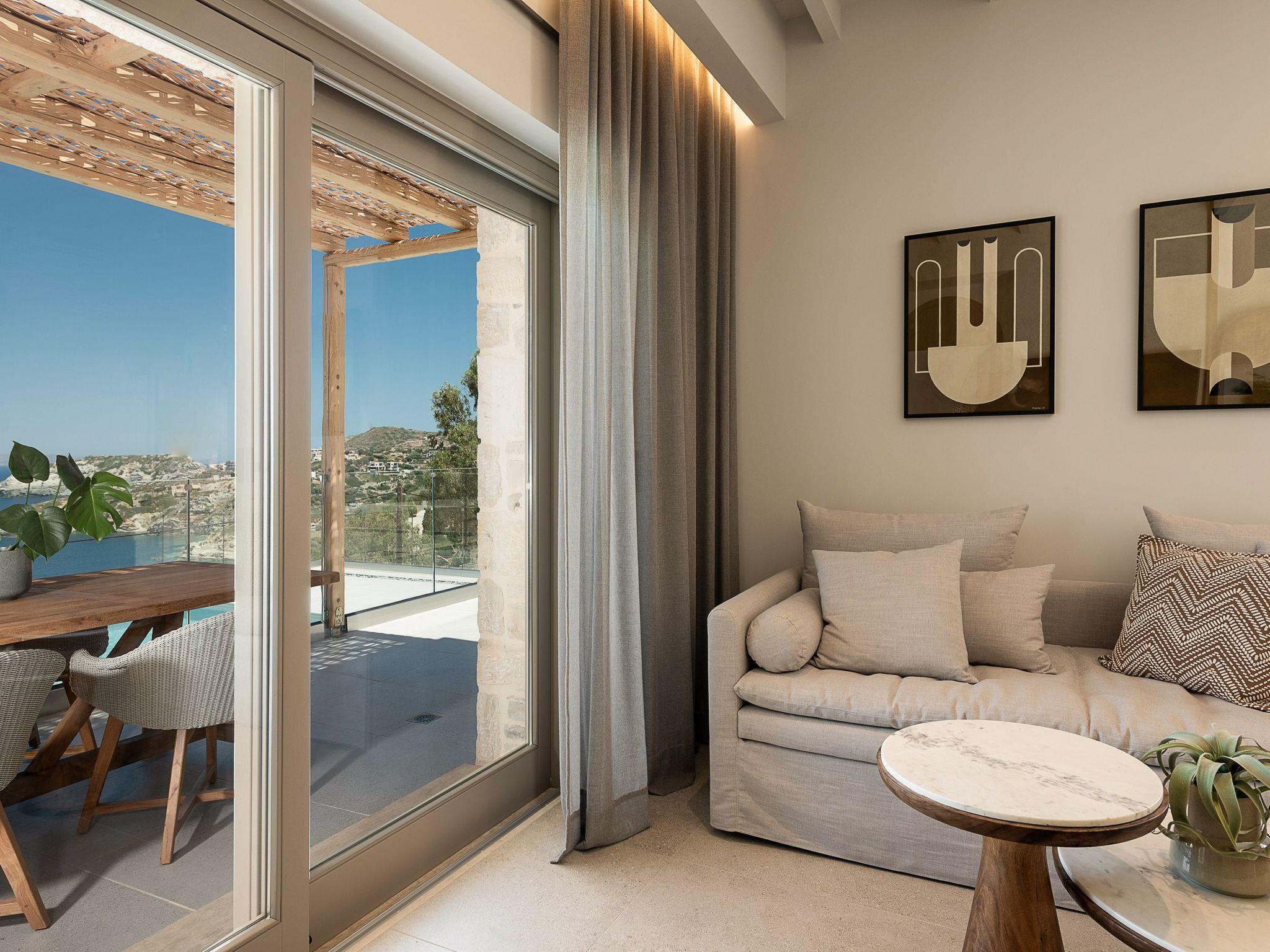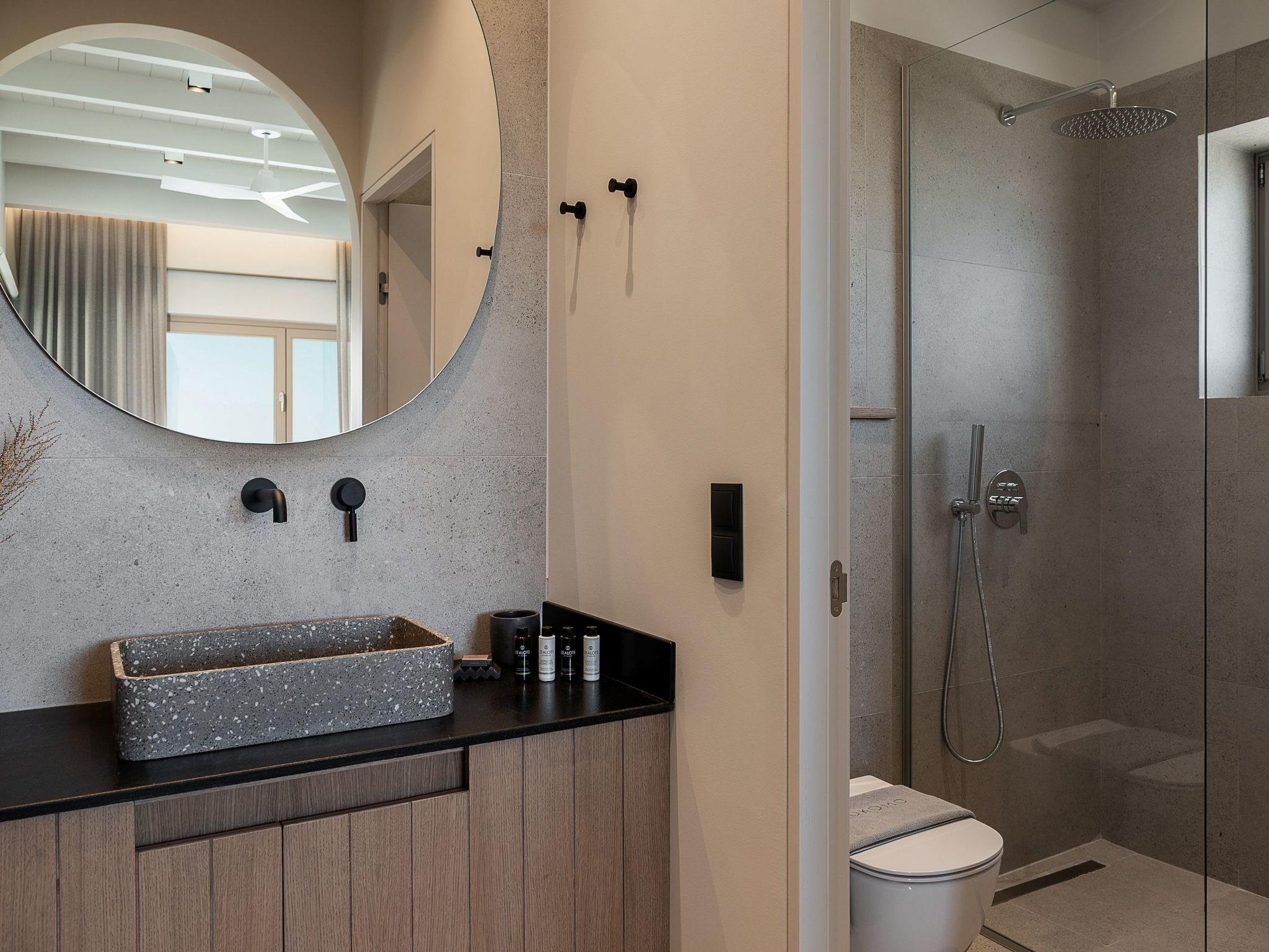 Die Kokomo Villas liegen auf einem Hügel mit Blick auf die Bucht von Lygaria im Großraum Agia Pelagia. Sie sind vom Flughafen Heraklion/Heraklion in etwa 25 Minuten zu erreichen. Sie ist von der Autobahn aus leicht zu erreichen und ideal als Ausgangspunkt für die Erkundung von Sehenswürdigkeiten. Die Villa zeichnet sich durch eine hohe Ästhetik und einen atemberaubenden Panoramablick auf das Kretische Meer aus. Die erdigen Töne der Räume gehen in das tiefe Blau des Meeres und des Himmels über und bieten ein unvergessliches Gefühl von Harmonie und Sanftheit. Jeder Aspekt, jedes Material und jedes Element wurde sorgfältig ausgewählt, um Sie in einen Zustand der Ruhe und Zufriedenheit zu hüllen. In der Villa Gaia gibt es 2 Schlafzimmer, beide mit Kingsize-Betten und eigenen Badezimmern mit Duschen. Das vordere Schlafzimmer bietet einen Panoramablick auf das Meer und direkten Zugang zur vorderen Veranda. Das hintere Schlafzimmer bietet einen direkten Zugang zum schönen Garten. Das Wohnzimmer mit herrlichem Meerblick ist mit einer voll ausgestatteten offenen Küche und einem Esszimmer verbunden und öffnet sich zur Veranda hin. Der vordere Außenbereich ist außerordentlich geräumig und die Aussicht ist eine Freude für die Augen. Er bietet einen privaten Swimmingpool mit Sonnenliegen, eine Außendusche, Lounge-Poufs, einen Grill (Gas) und einen Essbereich. Darüber hinaus hat Kokomo Villas Sonnenkollektoren installiert, um einen Teil der Energie, die in der Immobilie benötigt wird, durch sie zu liefern. WICHTIGER HINWEIS: Diese Immobilie ist nicht für Kinder von 2 bis 7 Jahren geeignet, da es einen Infinity-Pool und einige nicht überdachte Bereiche gibt.