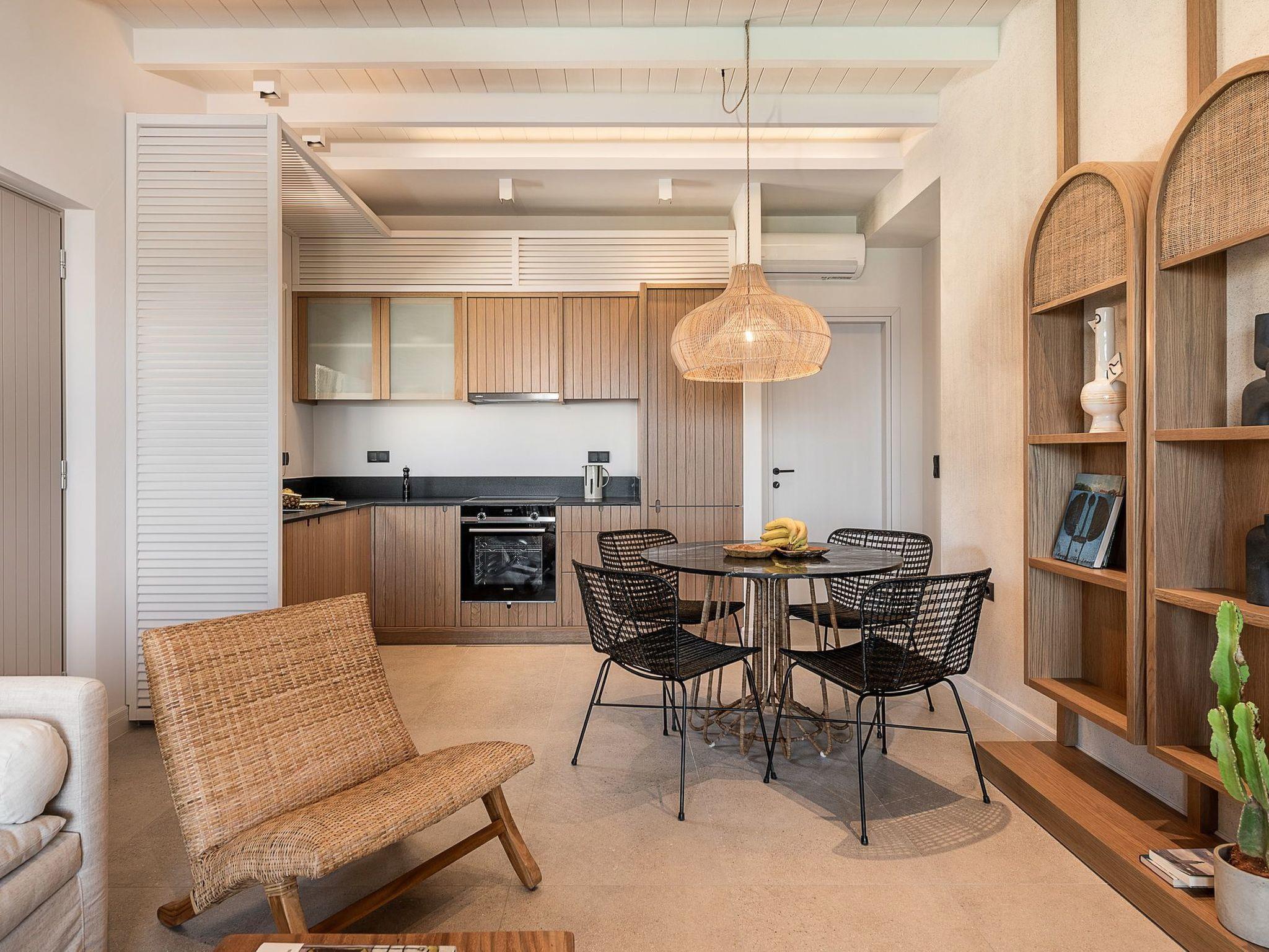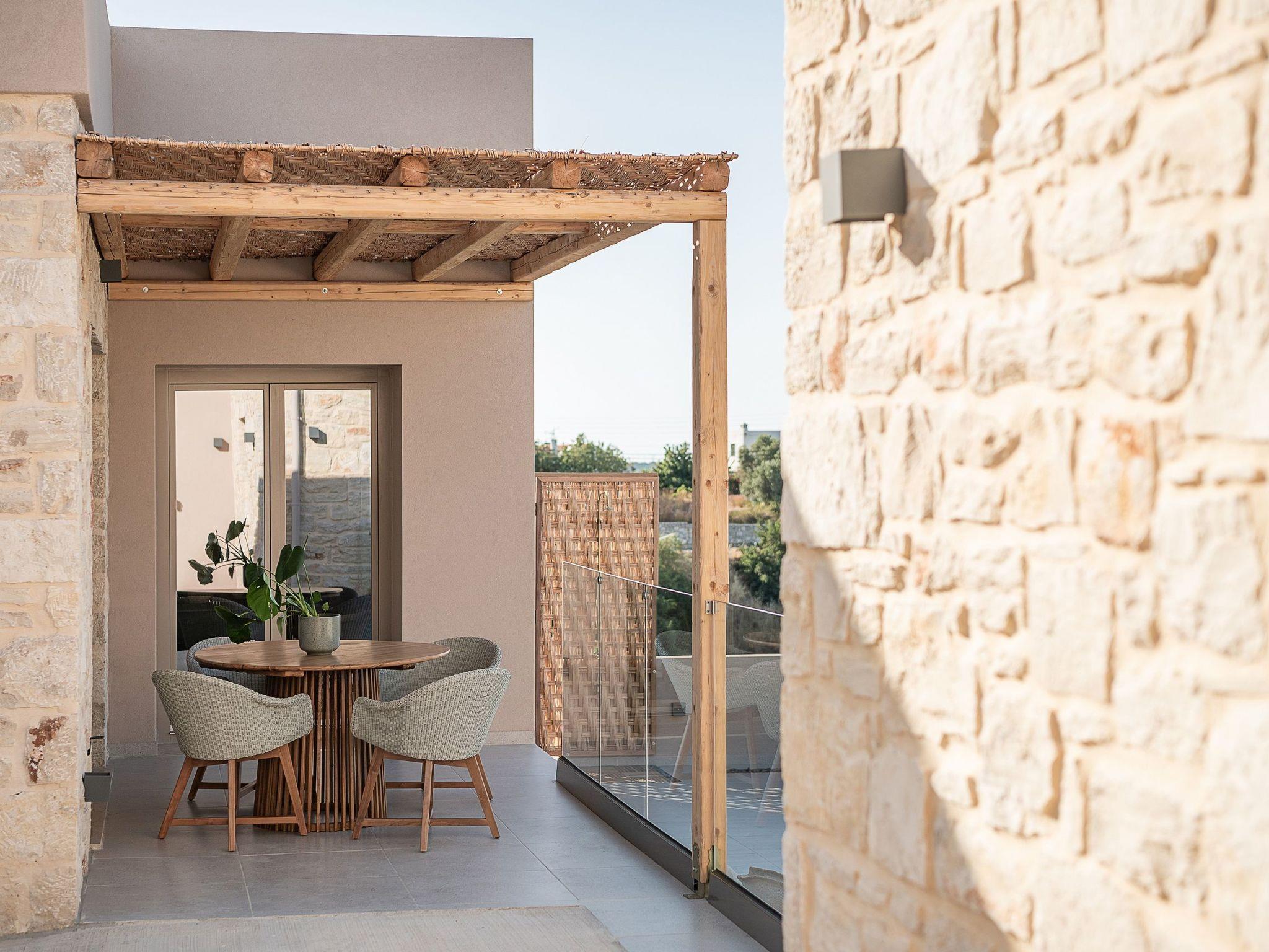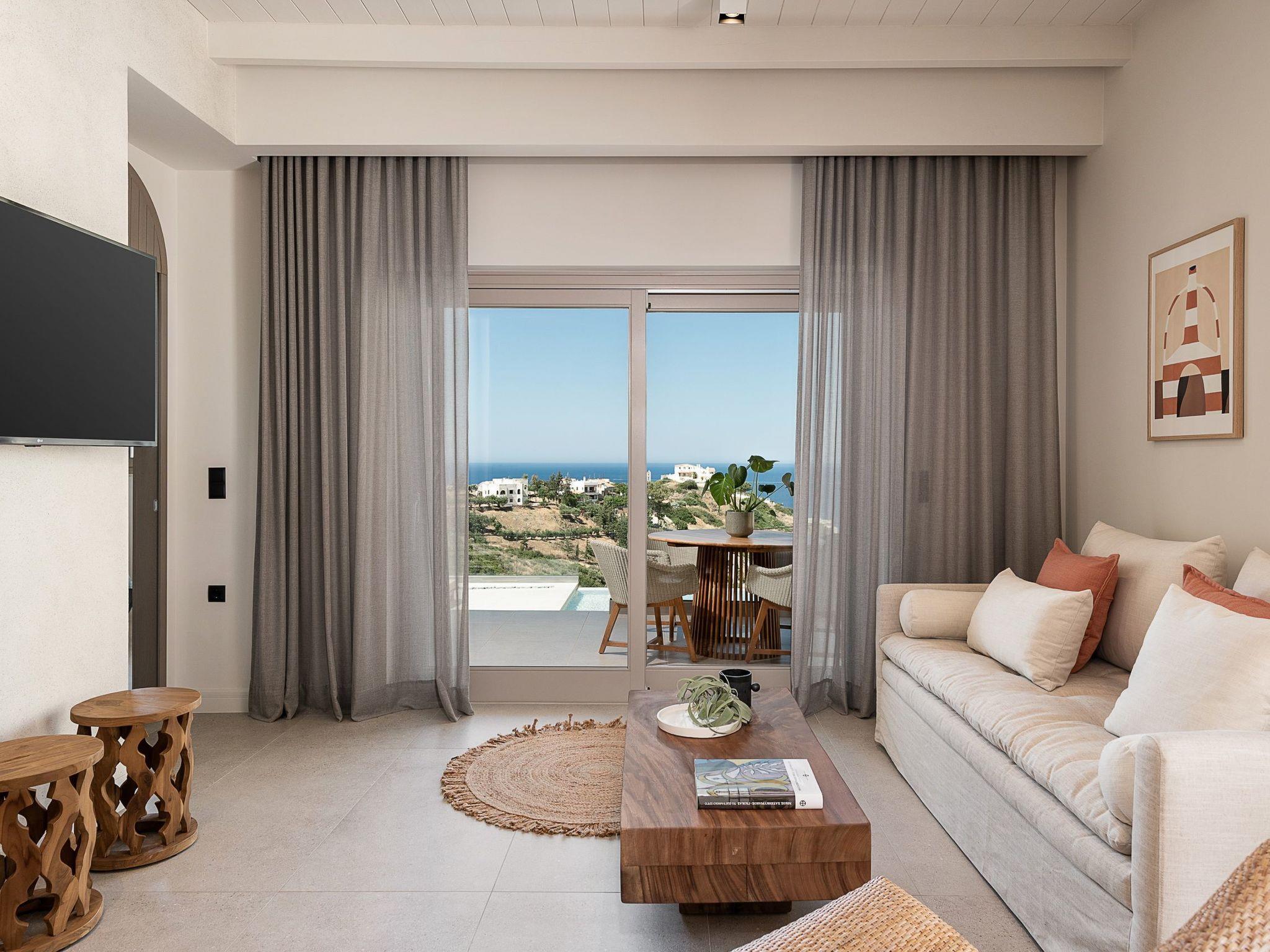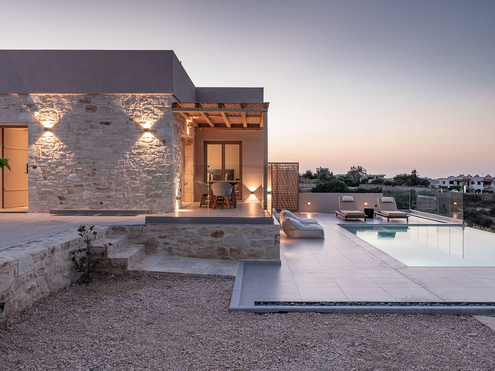 Kokomo Villas besteht aus 3 Luxusvillen, die auf einem Hügel mit Blick auf die Bucht von Lygaria im Großraum Agia Pelagia liegen. Es kann von Heraklion / Heraklion Flughafen in etwa 25 Minuten erreicht werden. Die Anlage ist von der Autobahn aus leicht zu erreichen und eignet sich ideal als Ausgangspunkt für die Erkundung interessanter Orte. Obwohl sie sich in der Nähe verschiedener herrlicher Strände, Restaurants und Supermärkte befindet, eignet sie sich auch hervorragend zum Entspannen in der Privatsphäre. Die Villa zeichnet sich durch hohe Ästhetik und einen atemberaubenden Panoramablick auf das Kretische Meer aus. Die erdigen Töne der Räume gehen in das tiefe Blau des Meeres und des Himmels über und vermitteln ein unvergessliches Gefühl von Harmonie und Sanftheit. Jeder Aspekt, jedes Material und jedes Element wurde sorgfältig ausgewählt, um Sie in einen Zustand der Ruhe und Zufriedenheit zu hüllen. Alles, was Sie tun müssen, ist zu genießen. Die Villa Aura verfügt über 2 Schlafzimmer, beide mit Kingsize-Betten und eigenem Bad mit Dusche. Das vordere Schlafzimmer bietet einen Panoramablick auf das Meer und einen direkten Zugang zur vorderen Veranda. Das hintere Schlafzimmer verfügt über eine geschmackvolle private Veranda mit Blick auf den Garten. Der Gemeinschaftsbereich besteht aus einem gemütlichen Wohnzimmer, einem Arbeitsbereich, einem Esstisch und einer voll ausgestatteten Küche. Auch dieser Bereich hat direkten Zugang zur vorderen Veranda. Unterhalb der Veranda, auf der sich ein Esstisch und ein Gasgrill befinden, liegt der Poolbereich mit einem privaten Swimmingpool mit Sonnenliegen, einer Außendusche und Liegen. Außerdem hat Kokomo Villas Sonnenkollektoren installiert, die einen Teil der für das Anwesen benötigten Energie liefern. WICHTIGER HINWEIS: Dieses Anwesen ist nicht für Kinder von 2 bis 7 Jahren geeignet, da es einen Infinity-Pool und einige unbedeckte Bereiche gibt.
