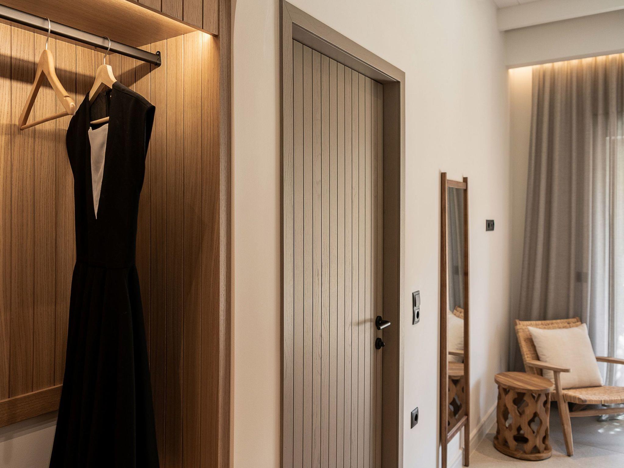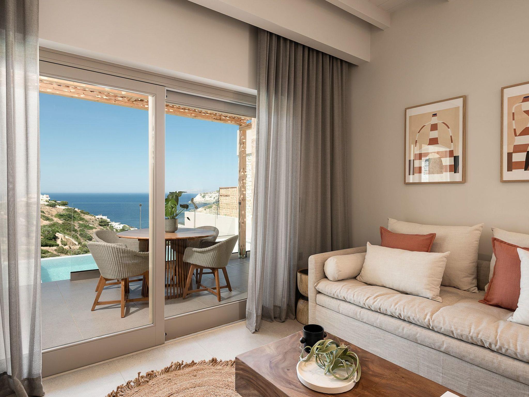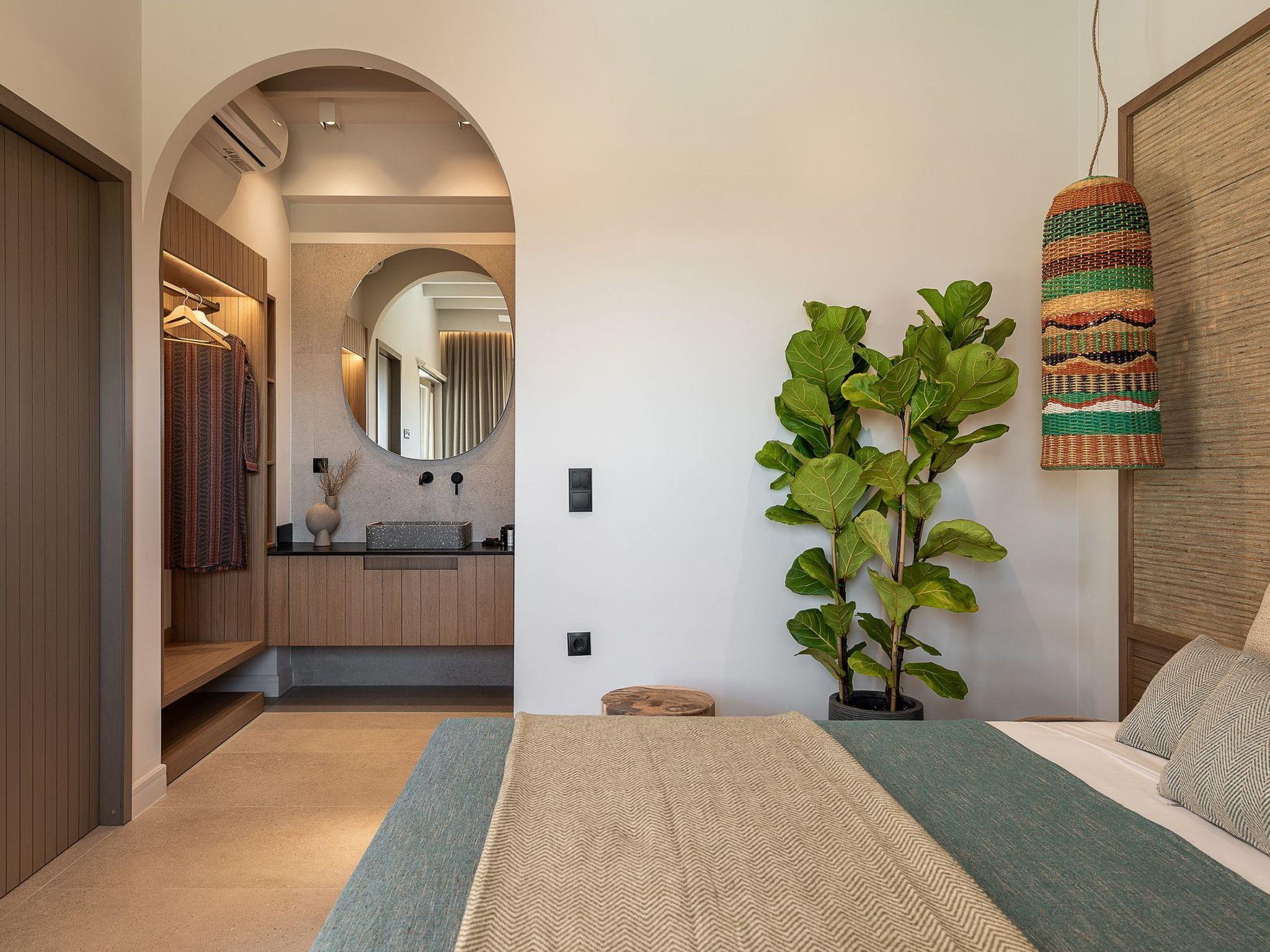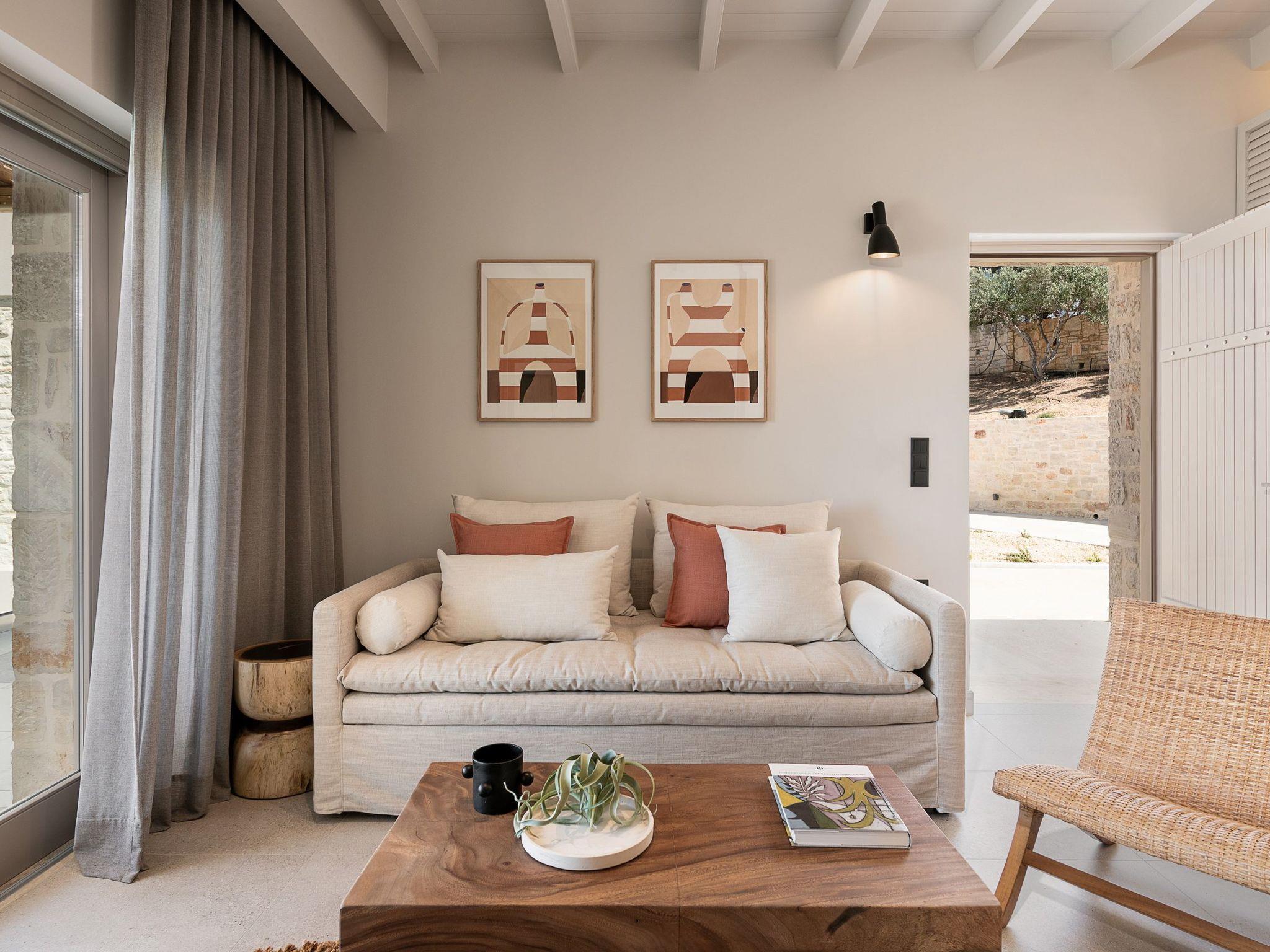 Kokomo Villas besteht aus 3 Luxusvillen, die auf einem Hügel mit Blick auf die Bucht von Lygaria im Großraum Agia Pelagia liegen. Es kann von Heraklion / Heraklion Flughafen in etwa 25 Minuten erreicht werden. Die Anlage ist von der Autobahn aus leicht zu erreichen und eignet sich ideal als Ausgangspunkt für die Erkundung interessanter Orte. Obwohl sie sich in der Nähe verschiedener herrlicher Strände, Restaurants und Supermärkte befindet, eignet sie sich auch hervorragend zum Entspannen in der Privatsphäre. Die Villa zeichnet sich durch hohe Ästhetik und einen atemberaubenden Panoramablick auf das Kretische Meer aus. Die erdigen Töne der Räume gehen in das tiefe Blau des Meeres und des Himmels über und vermitteln ein unvergessliches Gefühl von Harmonie und Sanftheit. Jeder Aspekt, jedes Material und jedes Element wurde sorgfältig ausgewählt, um Sie in einen Zustand der Ruhe und Zufriedenheit zu hüllen. Alles, was Sie tun müssen, ist zu genießen. Die Villa Aura verfügt über 2 Schlafzimmer, beide mit Kingsize-Betten und eigenem Bad mit Dusche. Das vordere Schlafzimmer bietet einen Panoramablick auf das Meer und einen direkten Zugang zur vorderen Veranda. Das hintere Schlafzimmer verfügt über eine geschmackvolle private Veranda mit Blick auf den Garten. Der Gemeinschaftsbereich besteht aus einem gemütlichen Wohnzimmer, einem Arbeitsbereich, einem Esstisch und einer voll ausgestatteten Küche. Auch dieser Bereich hat direkten Zugang zur vorderen Veranda. Unterhalb der Veranda, auf der sich ein Esstisch und ein Gasgrill befinden, liegt der Poolbereich mit einem privaten Swimmingpool mit Sonnenliegen, einer Außendusche und Liegen. Außerdem hat Kokomo Villas Sonnenkollektoren installiert, die einen Teil der für das Anwesen benötigten Energie liefern. WICHTIGER HINWEIS: Dieses Anwesen ist nicht für Kinder von 2 bis 7 Jahren geeignet, da es einen Infinity-Pool und einige unbedeckte Bereiche gibt.