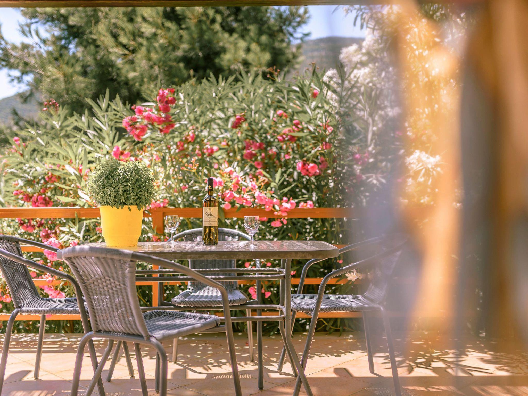 Die Gelbe Villa hat eine Fläche von 65 Quadratmetern und besteht aus einer offenen, voll ausgestatteten Küche, einer Ess- und Sitzecke, einem Schlafzimmer mit einem Doppelbett und einem Badezimmer. Das Wohnzimmer führt direkt auf eine große, möblierte Veranda, von der aus man einen Panoramablick auf die umliegenden Gärten und die Ägäis hat. Die Villa ist hauptsächlich im blau-weißen Inselstil eingerichtet, um das natürliche Licht und die Architektur hervorzuheben. Der private Pool, den Sie exklusiv nutzen können, wartet auf Sie. Die Gelbe Villa, geeignet für 4 Personen, ist klimatisiert, verfügt über kostenloses Wi-Fi und Kabelfernsehen und bietet einen überdachten Privatparkplatz für Ihr Auto.