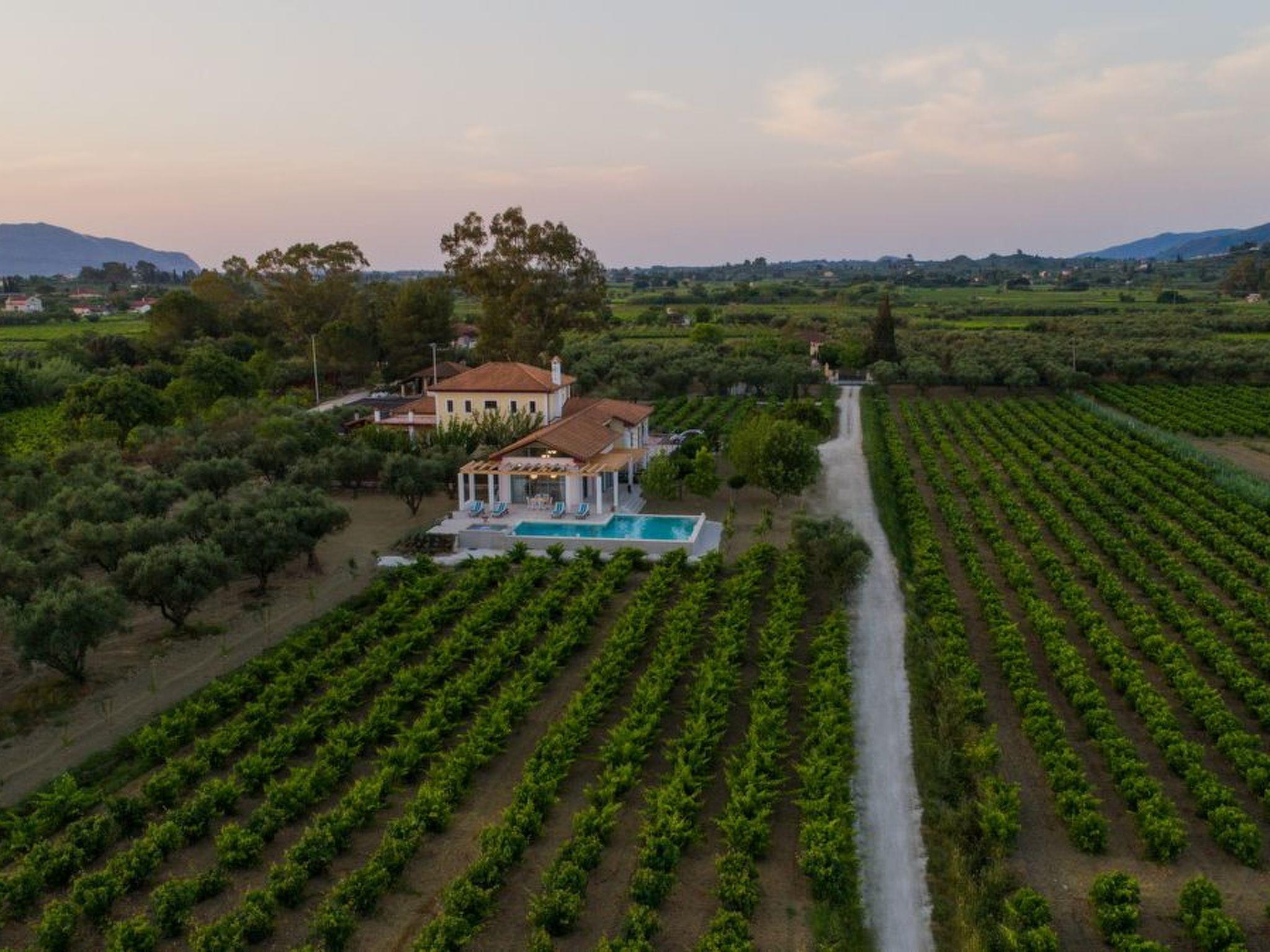 Eigenschaften:Anastasia ist eine luxuriöse Villa von 340 qm, in einem Weingut von 50.000 qm gelegen.Die Architektur der Villa ist ganz im Einklang mit den traditionellen, Herrenhäuser der Adligen der vergangenen Jahrhunderte, mit allen modernen Annehmlichkeiten bereichert.Der Haupteingang der Villa führt in das 60 qm große Wohnzimmer mit Kamin und einem luxuriösen Esstisch. Die 5 Türfenster bieten einen herrlichen Blick auf den Pool und den Weinberg. Im Erdgeschoss, neben dem Pool, befinden sich außerdem eine voll ausgestattete Küche, ein Doppelzimmer mit eigenem Bad und drei weitere Schlafzimmer: eines mit Doppelbett, ein Kinderzimmer mit einem Schlafsofa und einer Doppelstockbetten und das dritte mit zwei Einzelbetten, mit eigenem großen Bad.Im ersten Stock befinden sich das Hauptschlafzimmer mit eigenem Bad und zwei weitere Doppelschlafzimmer (eines mit Doppelbett und eines mit zwei Einzelbetten) mit eigenem Bad, die alle über einen großen Balkon verfügen, der nicht nur einen herrlichen Blick auf das Anwesen, sondern auch auf die gesamte Inselmitte bietet. Im Fitnessraum können Sie auf einem Laufband, einem Spinning-Rad oder einem Rudergerät trainieren, und in unserem Weinkeller können Sie die besten Weine verkosten, nicht nur von lokalen Weingütern, sondern auch aus ganz Griechenland.Schnelles WiFi ist im gesamten Haus verfügbar.
