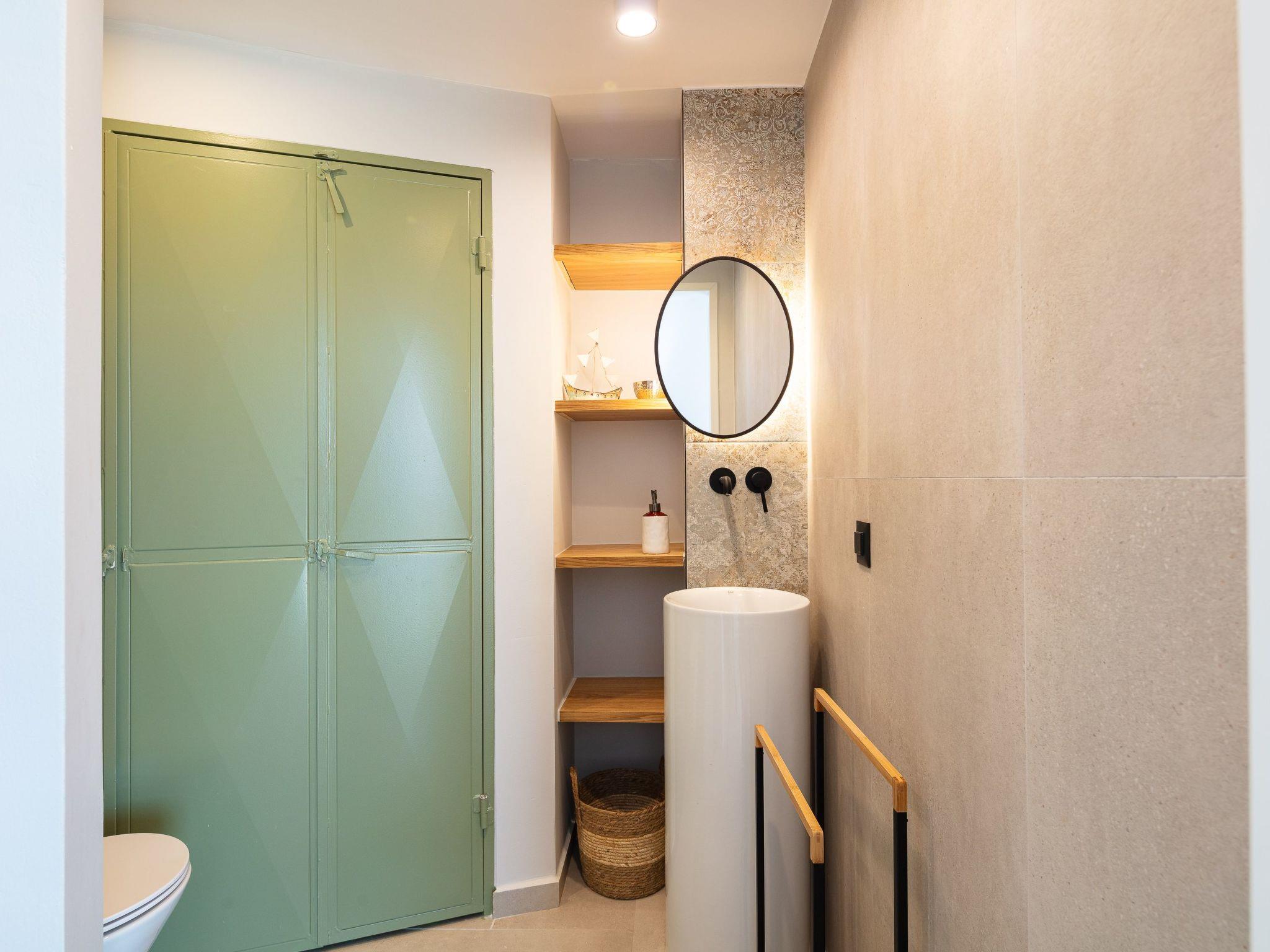 Die Serenity Villa verfügt über zwei elegante Doppelschlafzimmer mit Kingsize-Betten, eigenen Badezimmern und Zugang zu einem gemeinsamen Balkon, von dem aus Sie die Aussicht genießen können. Beide Zimmer sind mit Klimaanlage und Deckenventilatoren ausgestattet, die für Ihren Komfort sorgen. Eines der Schlafzimmer verfügt über einen separaten Eingang, einen Kühlschrank und einen kleinen Schreibtisch. Die Bäder sind mit modernen Annehmlichkeiten wie Haartrockner, Toilettenartikeln und Handtüchern ausgestattet. In der Nähe des Wohnzimmers befindet sich ein zusätzliches WC mit einer Waschmaschine.