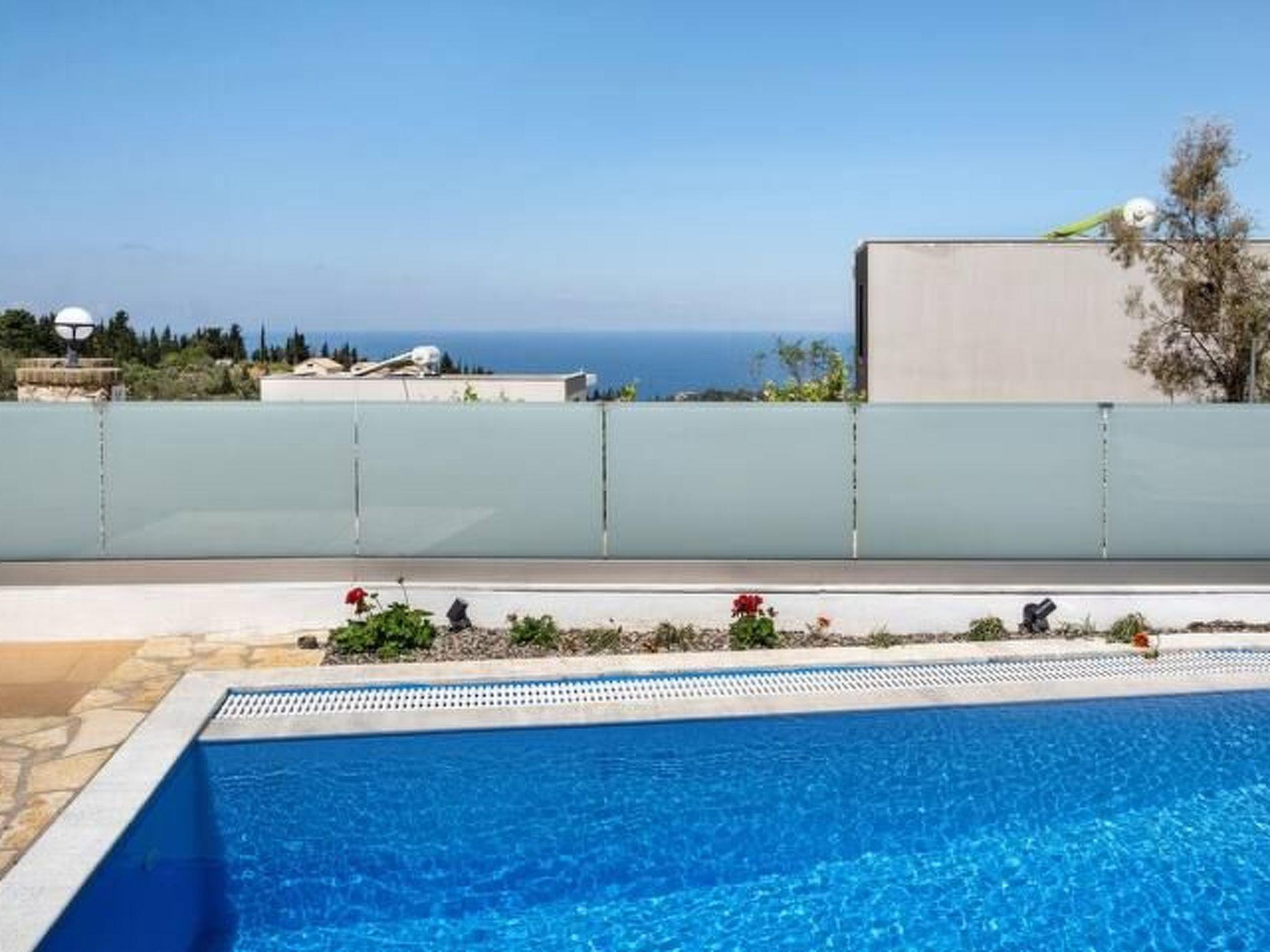 Der Außenbereich ist perfekt für entspannende Momente, mit einem privaten Swimmingpool, bequemen Sitzgelegenheiten und einem atemberaubenden Blick auf das Ionische Meer und den Sonnenuntergang.