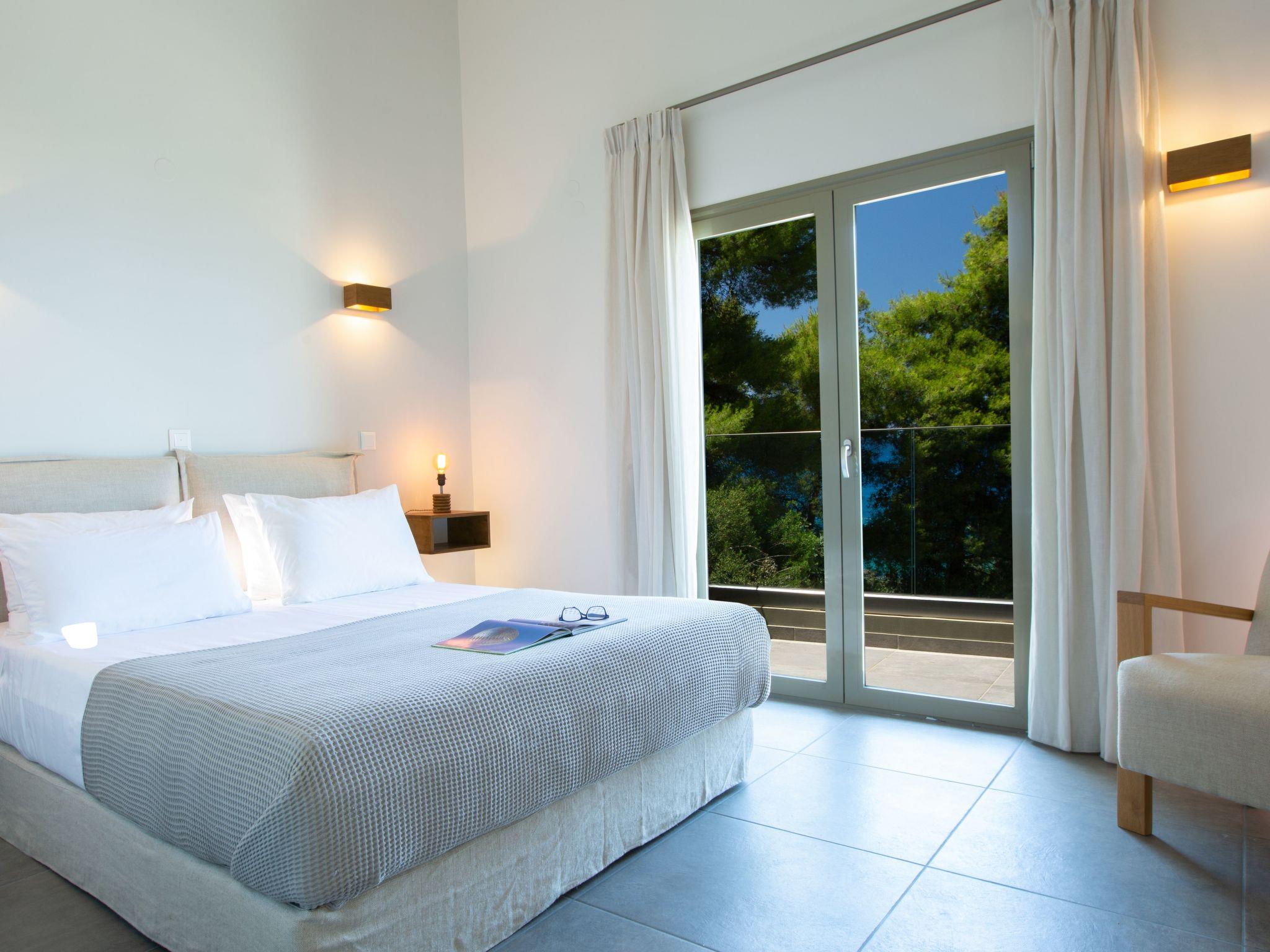 Ionian White Villa hat insgesamt 5 Schlafzimmer und kann bequem 9 Gäste beherbergen und bietet ein gefaltetes Zusatzbett für einen weiteren Gast. Das Anwesen ist in zwei unabhängige Etagen aufgeteilt, so dass die Gäste Privatsphäre und Abgeschiedenheit genießen können. Vom Parkplatz aus sind es nur wenige Schritte bis zum Poolbereich mit Liegen und Sonnenschirmen, die dazu einladen, den Blick auf das endlose blaue Ionische Meer zu richten und die Sommerabende zu genießen. Die Treppe in der Nähe des Pools führt Sie in den ersten Stock der Villa, die aus einer modernen großen Küche mit offenem Layout, in Kontakt mit dem Wohnzimmer und Essbereich, sowie ein Schlafzimmer mit Doppelbett und eigenem Bad besteht. Hinter dem Essbereich und ein paar Stufen nach oben befindet sich ein zweites Schlafzimmer mit Doppelbett und eigenem Bad. Außerhalb der ersten Etage, eine große Veranda mit herrlichem Meerblick und einen einfachen Zugang zum Poolbereich ist durch die vordere Schlafzimmer und Wohnzimmer zugänglich, so dass Sie die schöne Sitzgelegenheiten im Freien genießen können. Von diesem schönen Außenbereich aus können Sie die Treppe hinaufgehen, um in den zweiten Stock der Villa zu gelangen. Außerhalb des Eingangs befindet sich ein großes, betoniertes Sommerwohnzimmer, in dem Sie großzügig Ihre abendlichen Drinks einnehmen können. Wenn Sie die zweite Etage betreten, sehen Sie elegant gestaltete hohe Decken, einen geräumigen offenen Grundriss und wunderbares natürliches Sonnenlicht in der Küche und im Wohnzimmer, das Sie willkommen heißen wird. Auf dieser Etage befinden sich ein Hauptschlafzimmer auf der Vorderseite mit Zugang zum Balkon, ein Badezimmer mit Dusche und auf der Rückseite ein weiteres Zimmer mit zwei Einzelbetten, die leicht in ein großes Doppelbett umgewandelt werden können, mit eigenem Badezimmer. Direkt neben diesem Zimmer, ein kleines zusätzliches Schlafzimmer mit einem Einzelbett ist auch eine ausgezeichnete Option, um ein Kind schlafen.