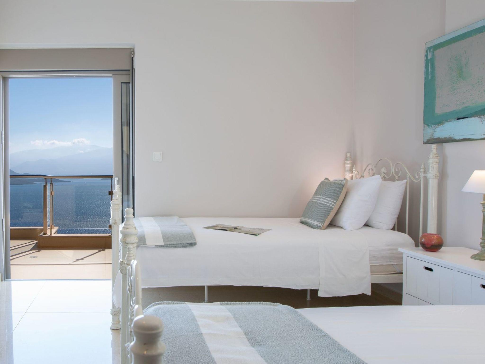 Das Innere der Villa Lilaea wurde mit Bedacht gestaltet, um Komfort und Eleganz zu bieten. Der Hauptwohnbereich verfügt über eine offene Küche und ein Wohnzimmer mit großen Glasschiebetüren, die den Innenbereich nahtlos mit dem Außenpoolbereich verbinden, so dass die Gäste den atemberaubenden Meerblick in vollen Zügen genießen können. Die Villa verfügt über fünf wunderschön eingerichtete Schlafzimmer, jedes mit eigenem Bad, um Privatsphäre und Komfort für alle Gäste zu gewährleisten. Die Schlafzimmer variieren von Master-Doppelzimmern bis hin zu Doppel-Doppelzimmern, die für verschiedene Gruppen- oder Familienzusammensetzungen geeignet sind, und sind auf drei Ebenen verteilt, um reichlich Platz zu bieten.