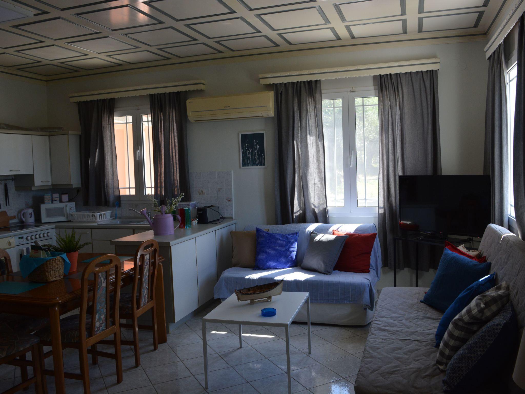 Dieses Haus befindet sich in einem ruhigen Ort, zwischen Olivenbäumen und Grünflächen, 350m. Weg. vom Strand und 450 Meter entfernt von der lauten Zentrum Bereich. ist autonom mit einem einzigen Nachbarn (Doppelhaus) und ist ideal für diesen Zeitraum aufgrund covid-19.