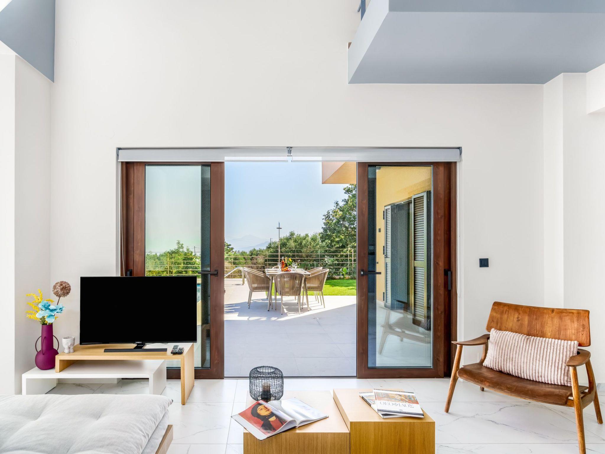 Wohnbereich mit Sofa, 40'' Satelliten Smart TV, Zugang zur Poolterrasse, Meerblick