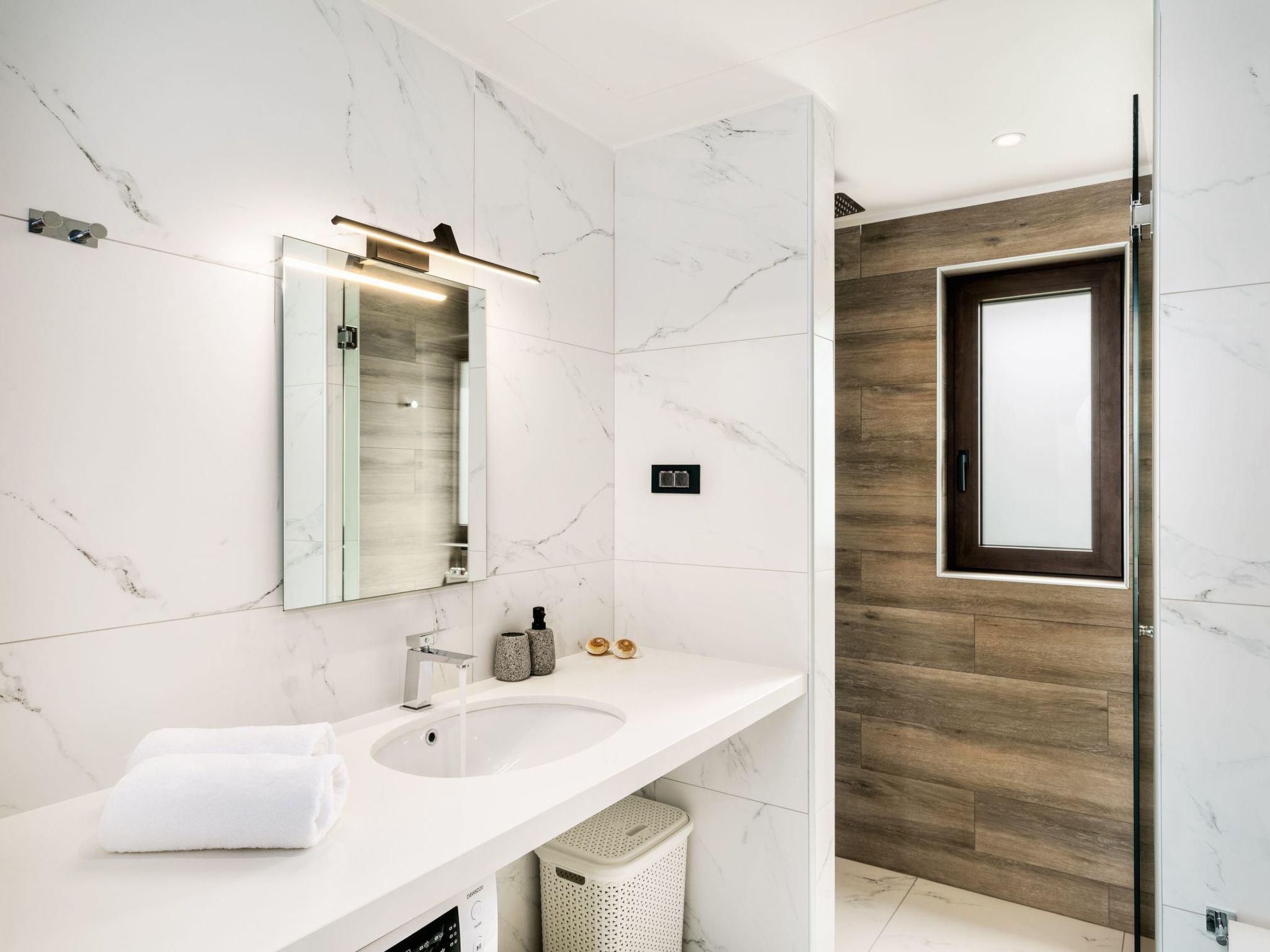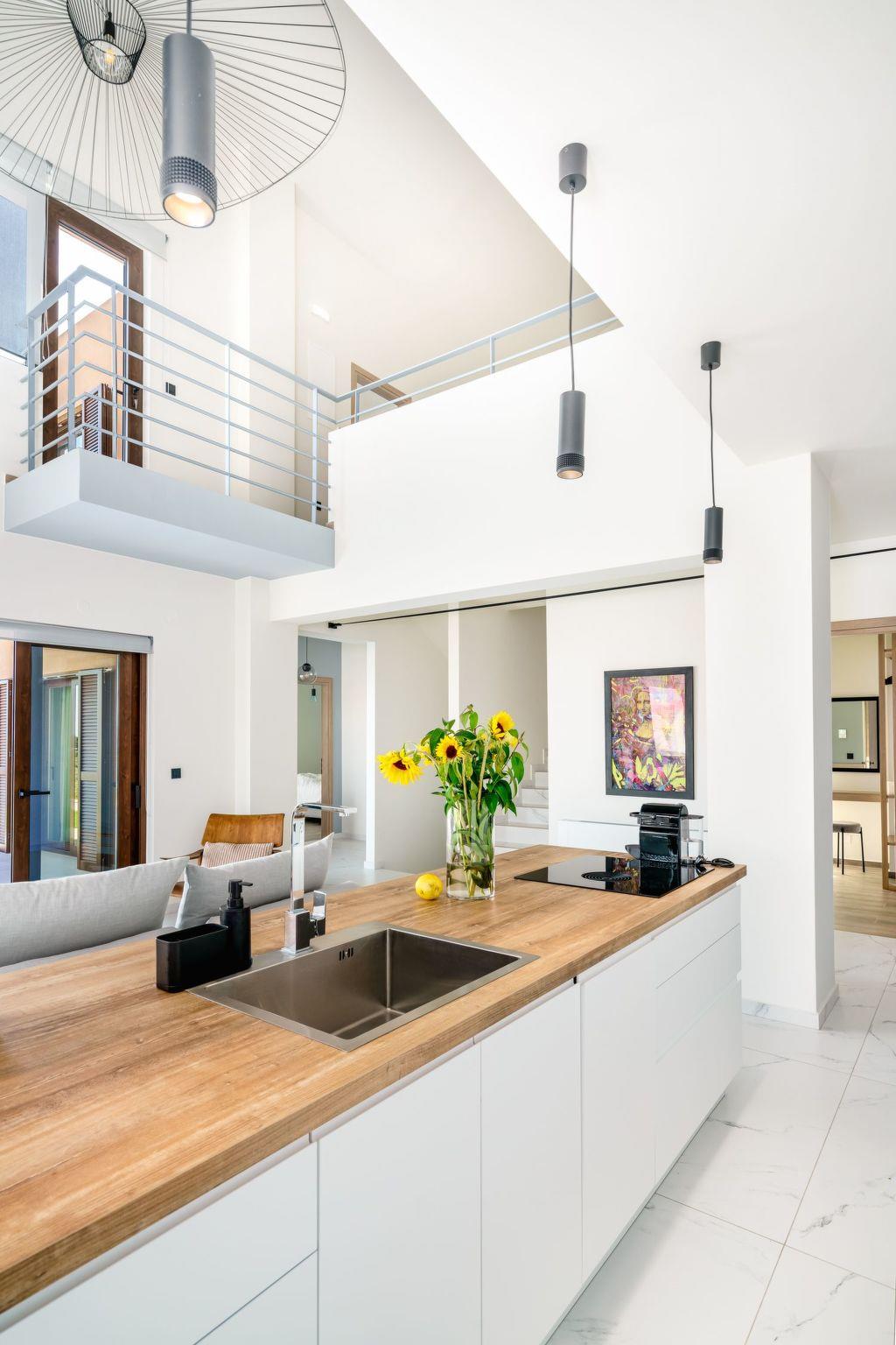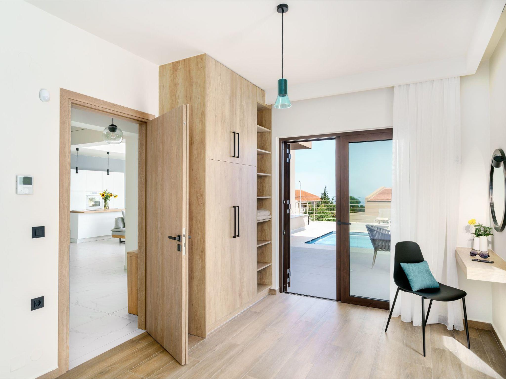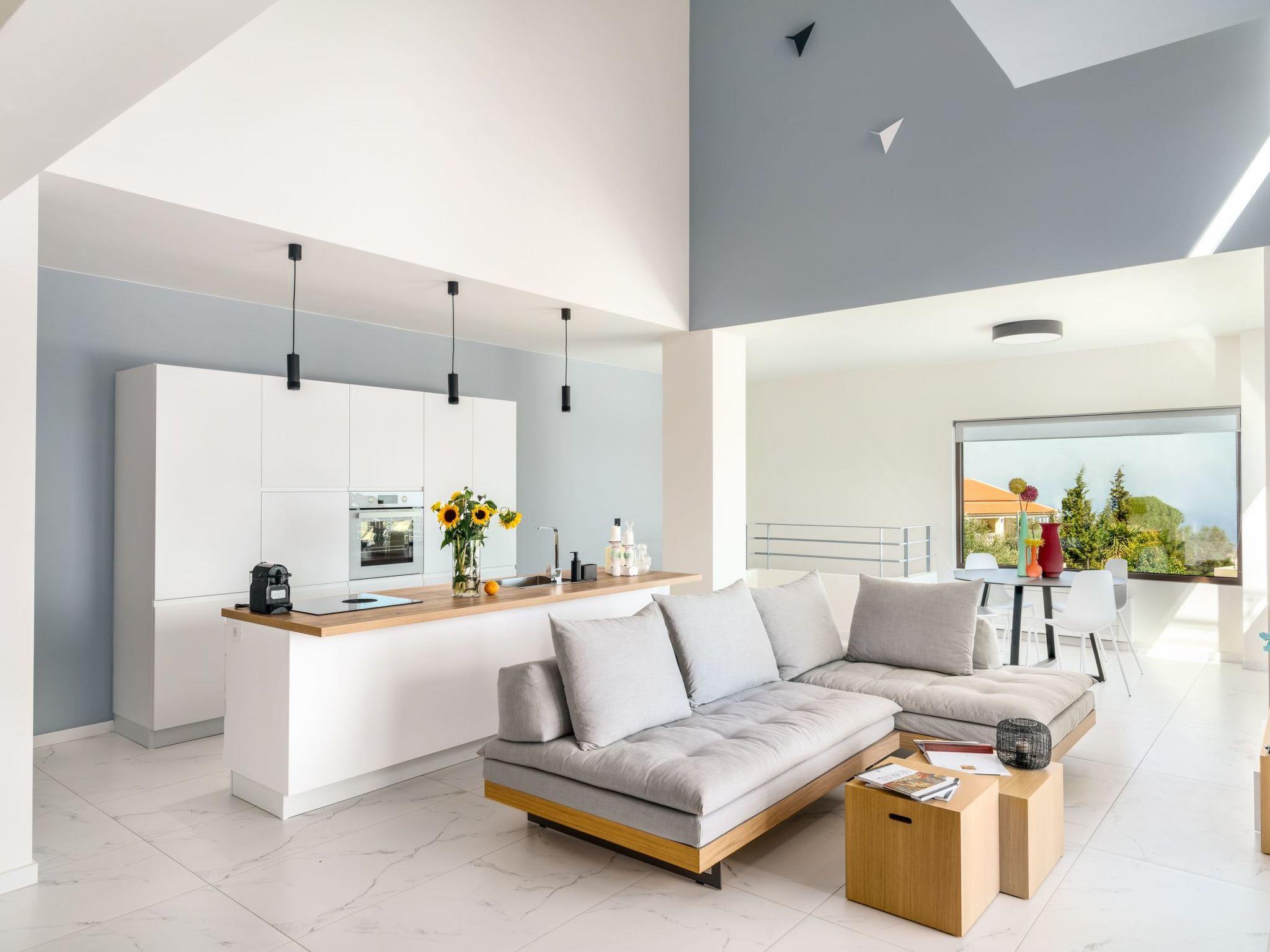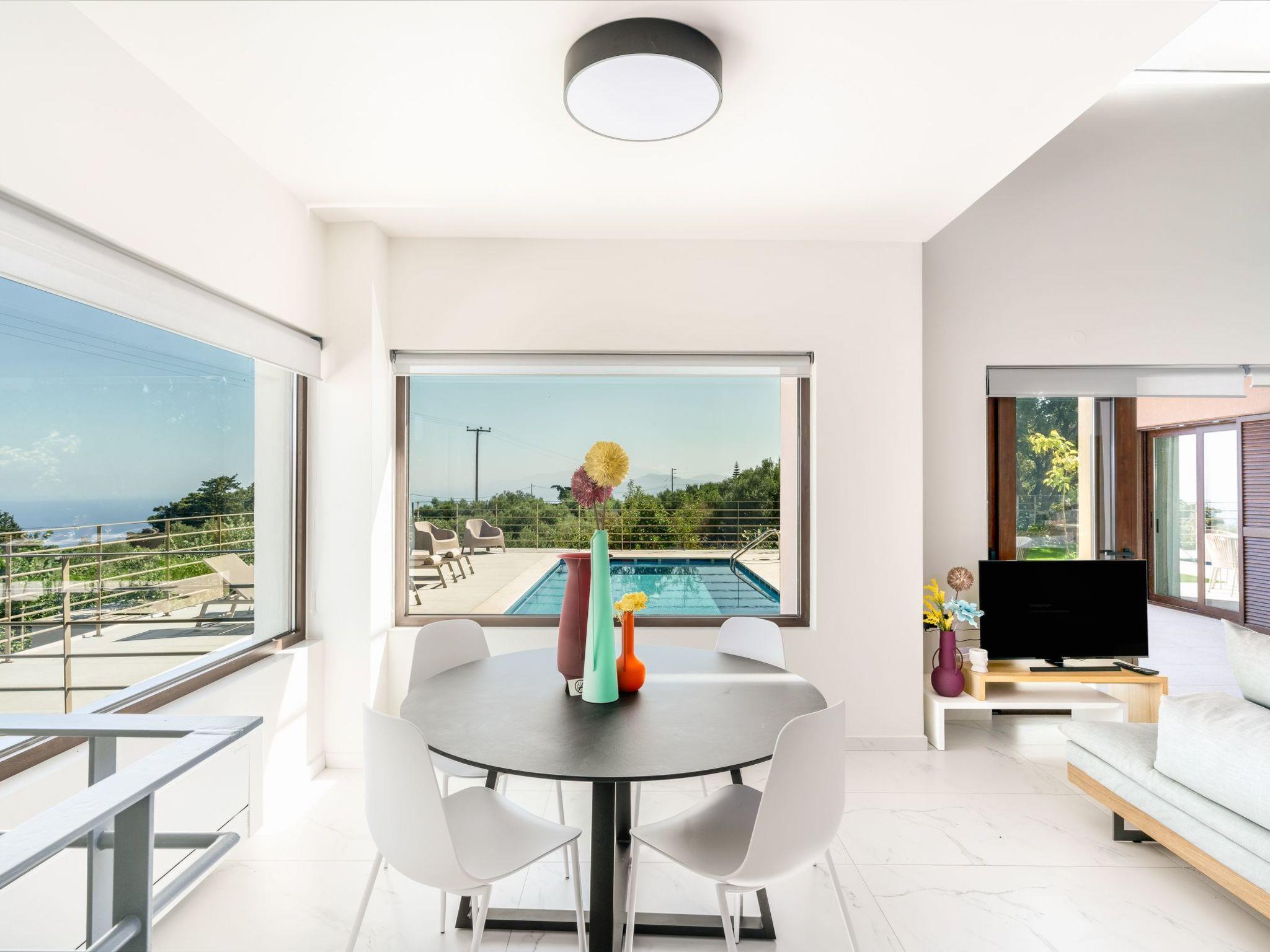 Im Erdgeschoss der Villa Alya befindet sich ein offener Wohnbereich, in dem sich die Gäste auf einem bequemen Sofa entspannen können, während sie den 40-Zoll-Smart-TV mit Satellitenkanälen genießen oder den Blick auf das Meer schweifen lassen. Große Schiebetüren bieten einen direkten Zugang zur Poolterrasse, so dass man leicht zwischen Innen- und Außenbereich wechseln kann. Die voll ausgestattete Küche eignet sich perfekt für die Zubereitung von Mahlzeiten, während der Essbereich für vier Personen einen intimen Rahmen bietet, um Ihre Kreationen zu genießen.