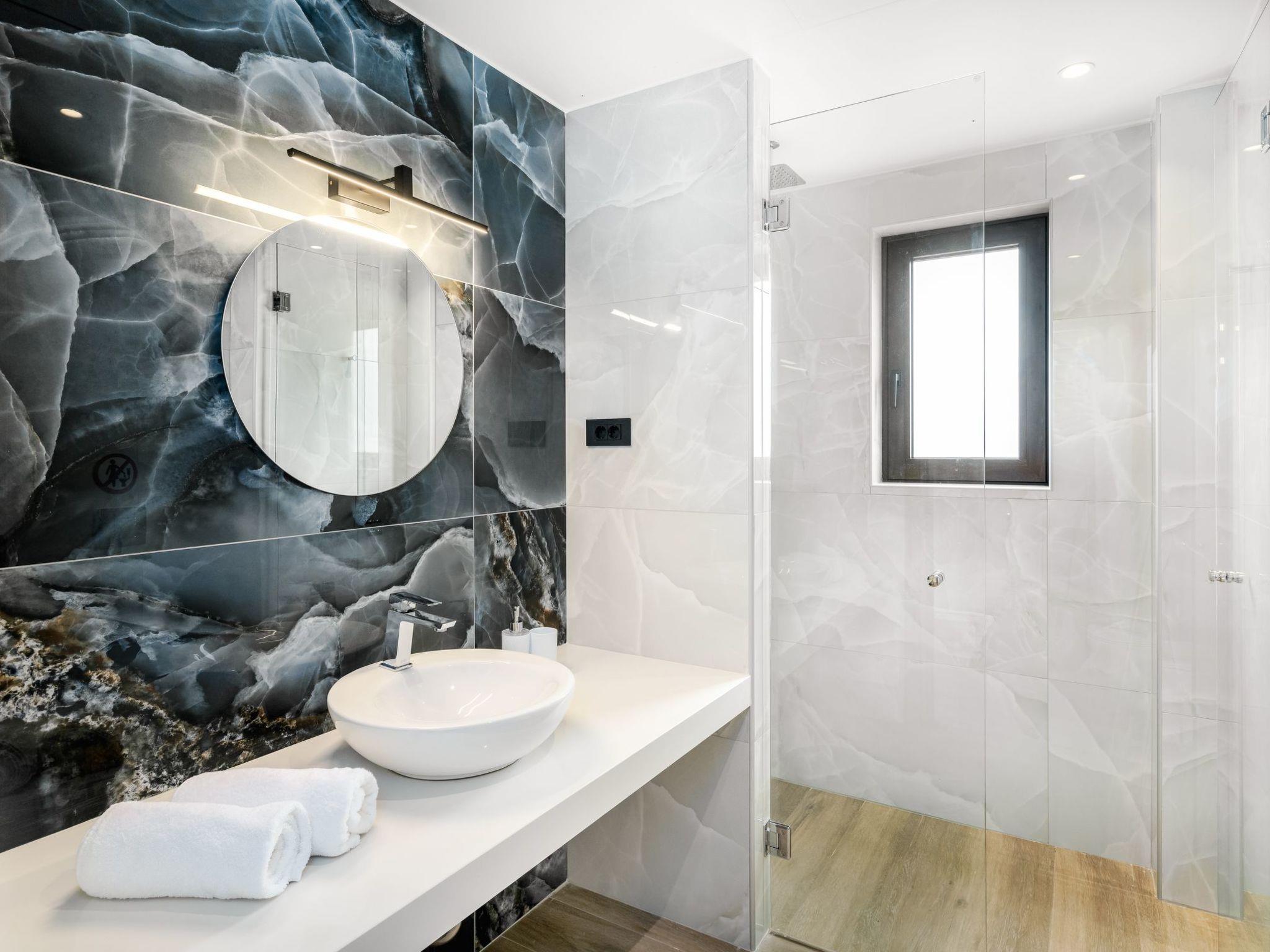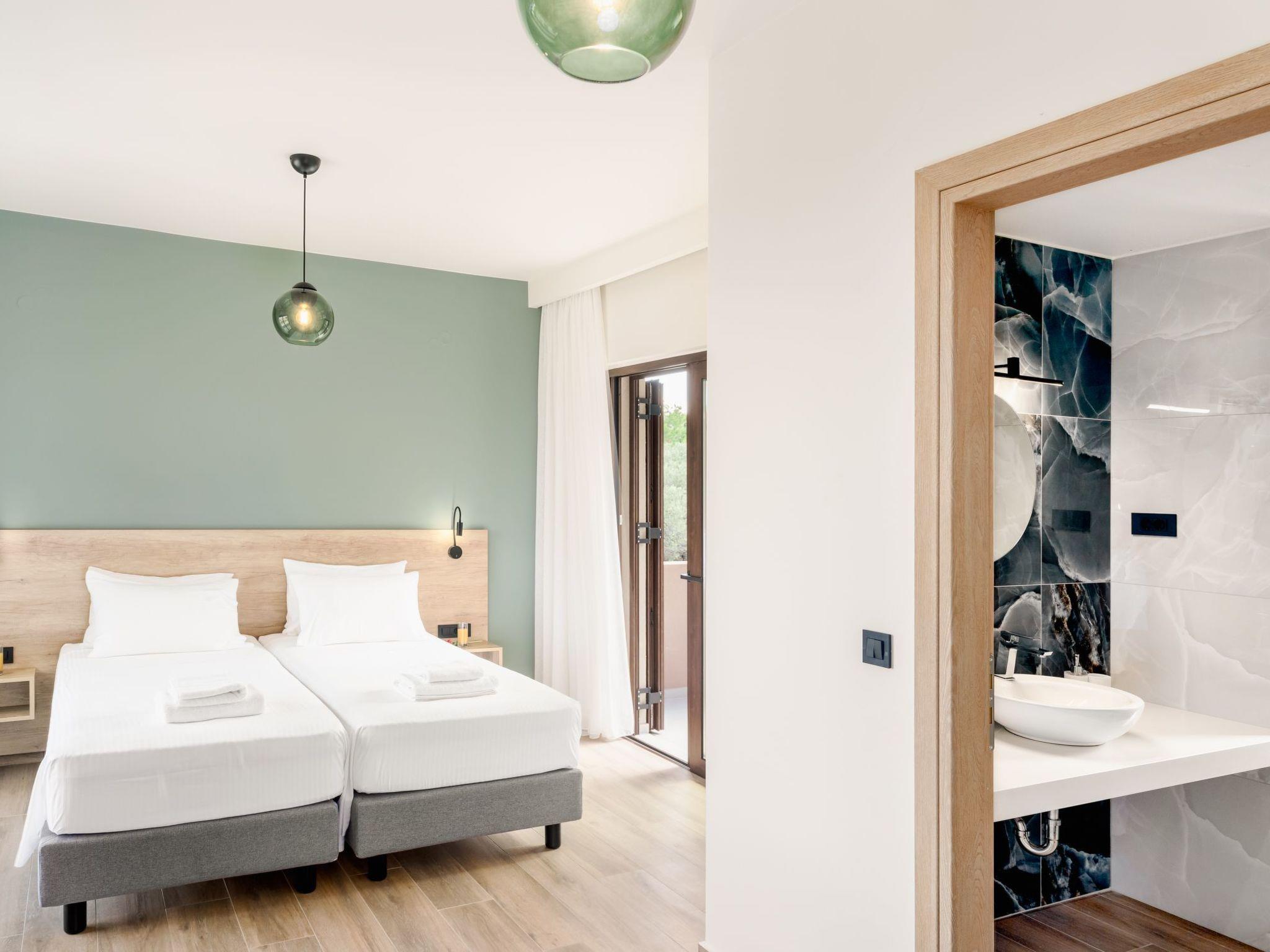 Die untere Etage der Villa Alya verfügt über ein viertes Schlafzimmer mit zwei Einzelbetten, Klimaanlage und einem eigenen Badezimmer mit Dusche und Haartrockner, damit die Gäste einen erholsamen Aufenthalt in vollem Komfort genießen können.