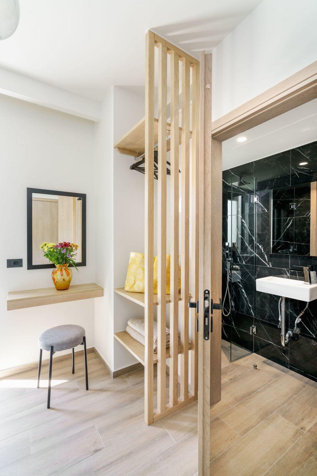 Im Erdgeschoss befinden sich zwei Schlafzimmer. Das erste ist ein wunderschön gestaltetes Schlafzimmer mit Queen-Size-Bett, Meerblick, Klimaanlage und direktem Zugang zum Hof. Das zweite Schlafzimmer verfügt über ein großes Einzelbett, ein eigenes Badezimmer mit Dusche und Haartrockner sowie eine Klimaanlage, ebenfalls mit Zugang zum Hof. Ein Gemeinschaftsbad mit Dusche befindet sich ebenfalls auf dieser Ebene.