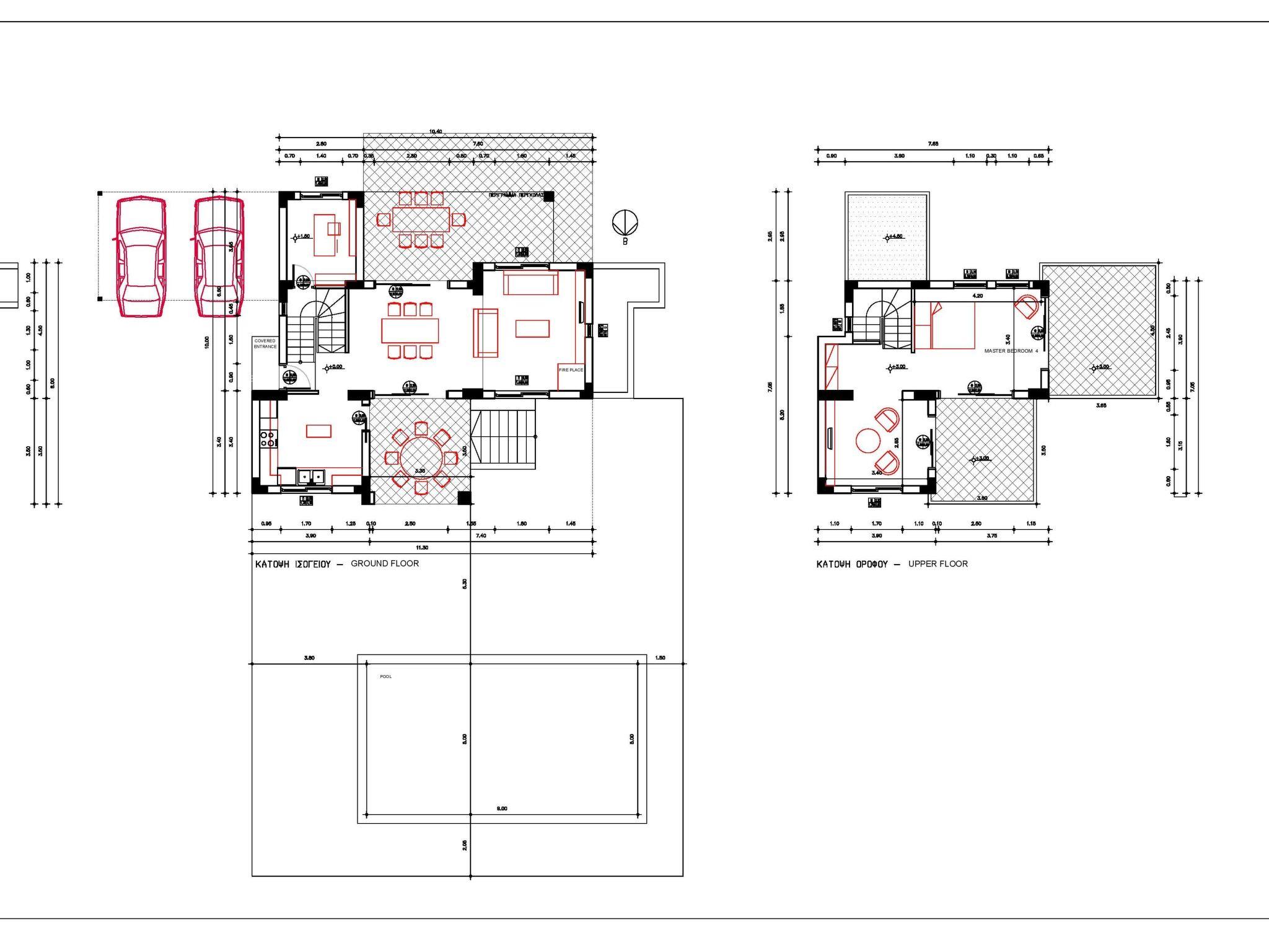 Im Erdgeschoss gibt es zwei überdachte Veranden, eine sehr große mit Blick auf die Berge und die andere mit Blick auf das Meer und den Pool. Beide verfügen über Tische, an denen 8 Personen essen können.