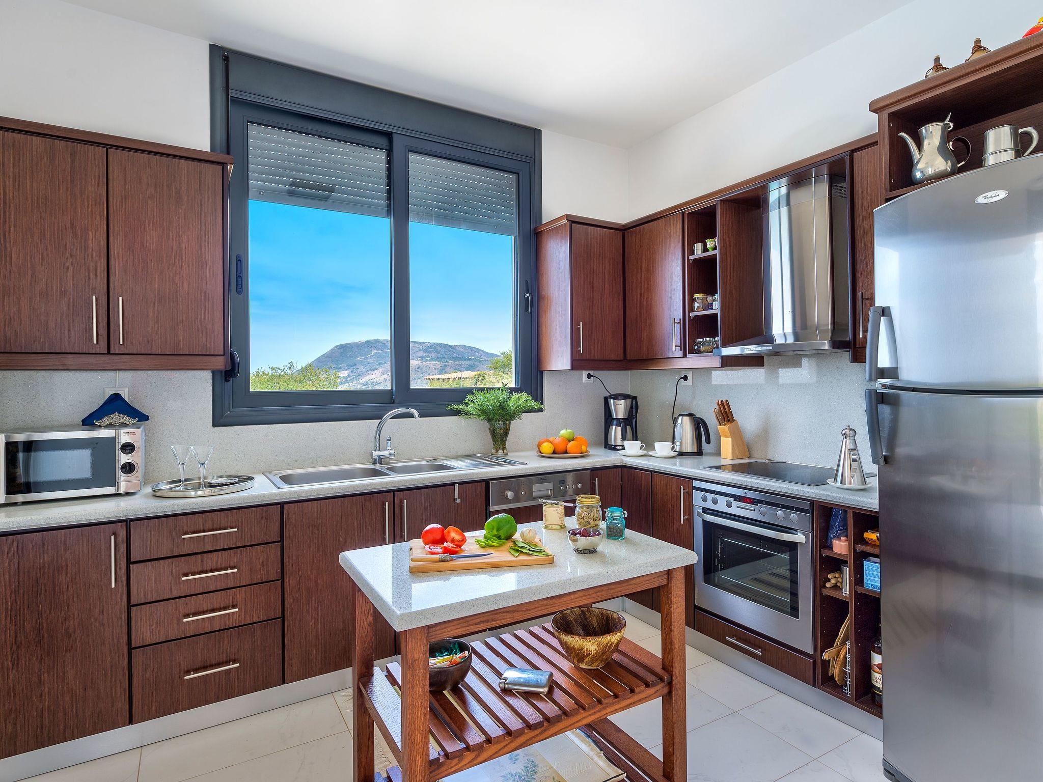 Das Besondere an der Villa ist der Blick auf die Berge, das Meer und die umliegende Landschaft mit ihren Kräutern, Johannisbrot-, Zypressen- und Olivenbäumen. Die Villa ist gut konzipiert, gut ausgestattet und komfortabel. Die Villa ist über eine vollständig asphaltierte, 4 Meter breite Straße erreichbar und liegt 800 Meter von der Hauptstraße entfernt. Ihre Lage ermöglicht es Ihnen, alle Gebiete Kretas effizient zu besuchen.