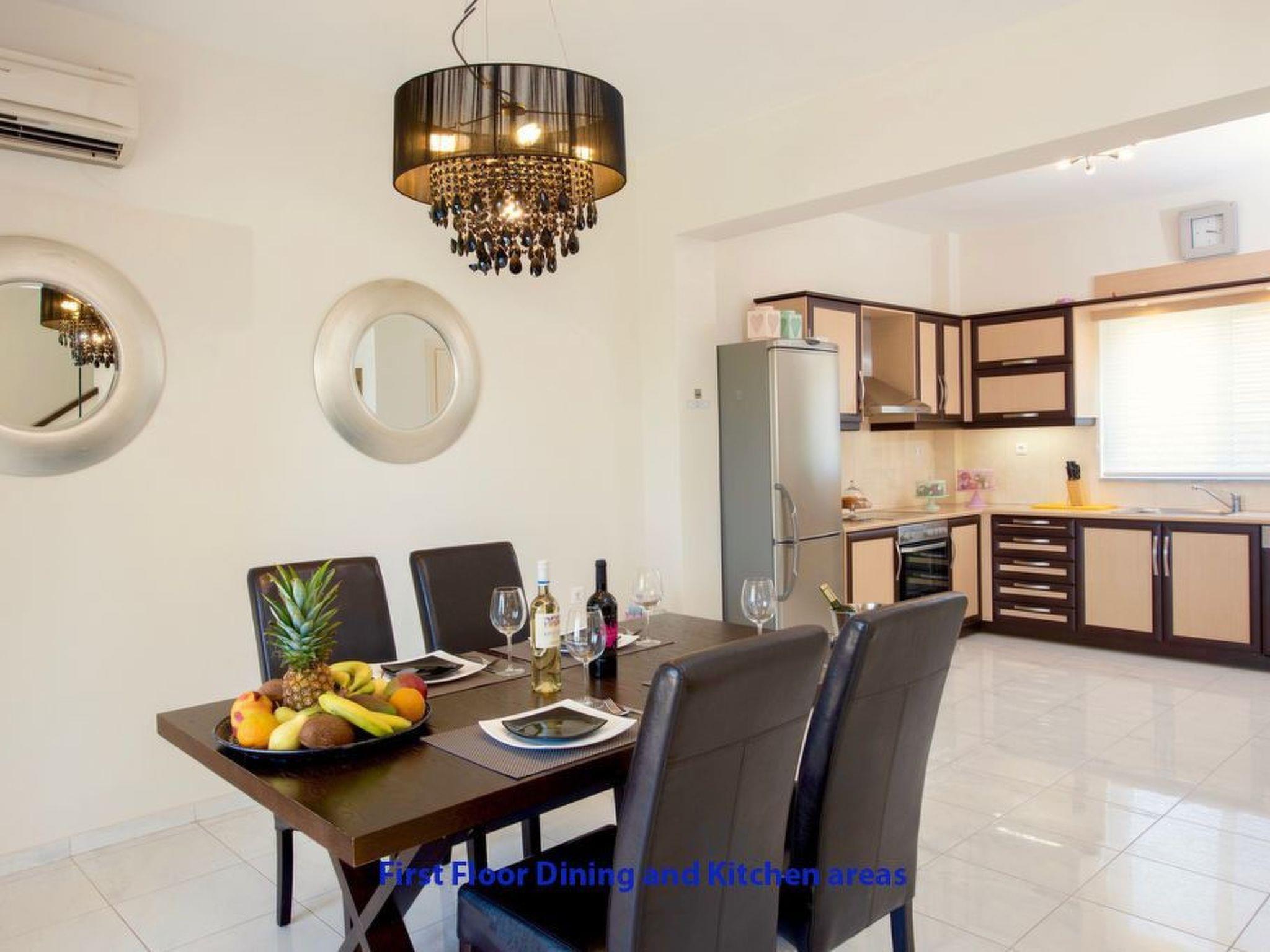 Villa Minos ist eine geräumige und exklusive Villa mit 3 Schlafzimmern, die ideal im traditionellen Dorf Plaka oberhalb von Almyrida liegt. Plaka ist eines der schönsten Dörfer Kretas und bietet einen atemberaubenden Blick über das Meer und eine große Auswahl an ausgezeichneten traditionellen Tavernen. Mehr und mehr von der internationalen Kundschaft geschätzt, ist jetzt ein gehobenes Urlaubsziel, nur ein paar Minuten von den schönen Sandstränden von Almyrida entfernt. Mit 3 Schlafzimmern, durchgehender Klimaanlage, 2 Badezimmern, 1 WC, einem großzügigen Privatpool und unverbaubarem Blick auf das Meer ist die Villa Minos das perfekte Ferienhaus für Gäste, die einen unvergesslichen, außergewöhnlichen Urlaub suchen. Dieses gut gelegene, moderne Anwesen bietet einen fabelhaften Blick entlang der Küste und über die Bucht von Souda. Die Villa Minos erstreckt sich über drei Etagen, ist modern eingerichtet und bietet von allen Zimmern und Terrassen aus eine herrliche Aussicht. Im Erdgeschoss befindet sich ein gut eingerichtetes Studio (mit Wohnzimmer und Küche), von dem aus eine interne Treppe in die Hauptunterkunft im ersten Stock führt. Nur fünf Minuten zu Fuß vom Zentrum des Dorfes Plaka, das eine Auswahl an Minimärkten und Tavernen bietet. Eine fünfminütige Fahrt bringt Sie hinunter in das Zentrum des Ferienortes Almyrida, wo es einen schönen Sandstrand sowie eine Auswahl an Bars, Geschäften und Tavernen gibt. Die Villa erstreckt sich über 3 Etagen, ist voll klimatisiert und ist von einem privaten Garten mit Rasen, Palmen und Sträuchern umgeben. Die großzügigen Terrassen bieten einen unvergesslichen Blick auf den Pool und das blaue Meer. Das Erdgeschoss (Pool-Ebene) ist ein geräumiger, offener Bereich mit Doppelbett, bequemen Sofas, Satellitenfernsehen, einer Küchenzeile (ideal für die Zubereitung von Mahlzeiten am Pool) und einem Duschbad. Eine Treppe führt hinauf in den ersten Stock, wo sich der Hauptwohnbereich befindet. Es gibt ein großes Wohnzimmer mit angrenzender Küche und Essbereich sowie ein WC. Die moderne und voll ausgestattete Küche verfügt über einen Geschirrspüler, eine Waschmaschine, 4 Herdplatten, einen Backofen, eine Mikrowelle, einen Toaster, einen Wasserkocher und einen Kühl-/Gefrierschrank. Große Terrassentüren führen auf die Panoramaterrassen, die mit Tischen und Stühlen ausgestattet sind. Die 2 weiteren Schlafzimmer (jeweils ein Doppel- und ein Zweibettzimmer) sowie ein Familienbad mit Badewanne befinden sich im zweiten Stock. Beide Schlafzimmer haben einen atemberaubenden Blick auf das Meer und einen direkten Zugang zu einem Balkon mit Meerblick. Im Außenbereich bietet die Villa Minos ihren Gästen einen großzügigen privaten Pool (8m x 4m, Tiefe 0,85m bis 1,6m) umgeben von einem gepflegten Garten mit Rasen. Bequeme Sonnenliegen und Sonnenschirme sind vorhanden, ebenso wie ein gemauerter Grill und ein Essbereich im Freien. Wie die Innenbereiche bieten auch die Gärten der Villa Minos einen atemberaubenden, ungehinderten Blick auf das Mittelmeer. Ein privater Parkplatz ist vorhanden. Erdgeschoss Wohnzimmer/Esszimmer Bequeme Sitzecke, Flachbildfernseher, TV mit lokalen Kanälen, Internetzugang Wi-Fi, Bereich mit Esstisch und Stühlen Küche Backofen, Herd, Kühlschrank, Geschirrspüler Duschraum Dusche, Toilette, Waschbecken, Klimaanlage Schlafzimmer 1 Doppelbett, Türen zur Terrasse, Klimaanlage Erster Stock Wohnzimmer/Esszimmer Bequeme Sitzecke, Flachbildfernseher, Satellitenfernsehen mit wenigen englischen Kanälen, DVD-Player, Musikanlage, Internetzugang Wi-Fi, Bereich mit Esstisch und Stühlen, Klimaanlage Küche Backofen, Herd, Geschirrspüler, Mikrowelle, Kühlschrank mit Gefrierfach, Kaffeemaschine Separates WC Toilette, Waschbecken Zweiter Stock Badezimmer Badewanne mit Dusche, Toilette, Waschbecken, Waschmaschine Schlafzimmer 2 Doppelbett, Türen zum Balkon, Klimaanlage Schlafzimmer 3 Einzelbetten, Klimaanlage Parkplatz im Freien Parkplatz abseits der Straße Pool Privater Pool, Poolgröße: 8m x 4m, Pooltiefe: 0.85m - 1.6m, Zugang über Leiter Terrasse Al Fresco Dining Facilities, gemauerter Grill, überdachte Terrasse, offene Terrasse, gepflegte Gärten, eingezäunte Gärten, Sonnenschirme, Liegestühle Ausstattung: Geschirrspüler, Bügeleisen & Bügelbrett, Haartrockner, 3 x Klimaanlage, Garten, Bettwäsche, drahtloses Internet, privater Pool. Badezimmer: Waschbecken, Waschmaschine, Toilette, Bad mit Dusche; Badezimmer: Dusche, Waschbecken, Toilette; Schlafzimmer: Klimaanlage, Doppelbett; Schlafzimmer: Klimaanlage, zwei Einzelbetten; Schlafzimmer: Klimaanlage, Doppelbett; Küche: Kochfeld, Geschirrspüler, Kaffeemaschine, Backofen, Mikrowelle, Kühlschrank / Gefrierschrank; Küche: Kühlschrank, Geschirrspüler, Kochfeld, Backofen; Wohnzimmer: Stereoanlage, TV (Netflix), DVD-Player; Wohnzimmer: TV (nur lokale Sender); WC: Toilette, Waschbecken ;