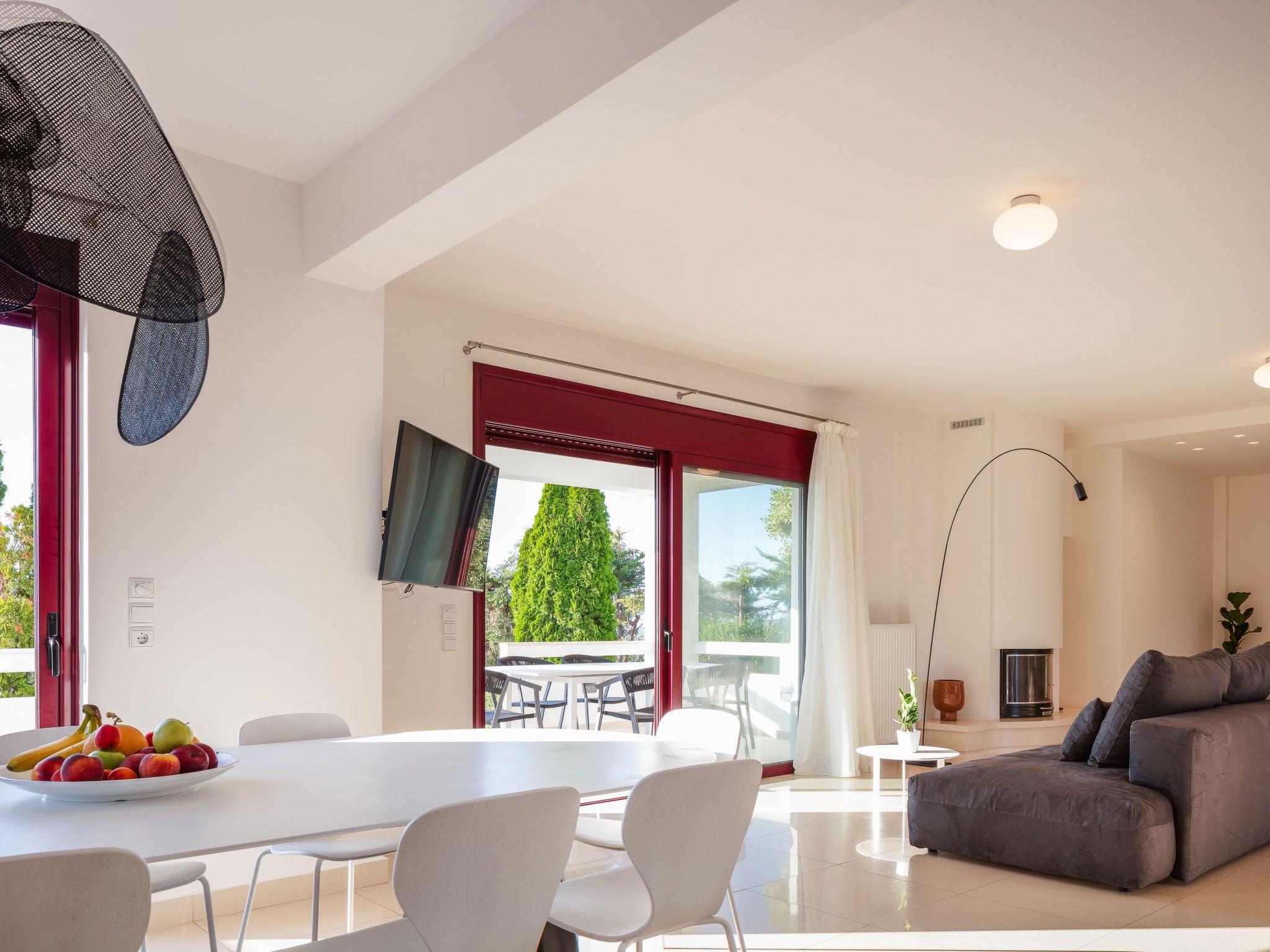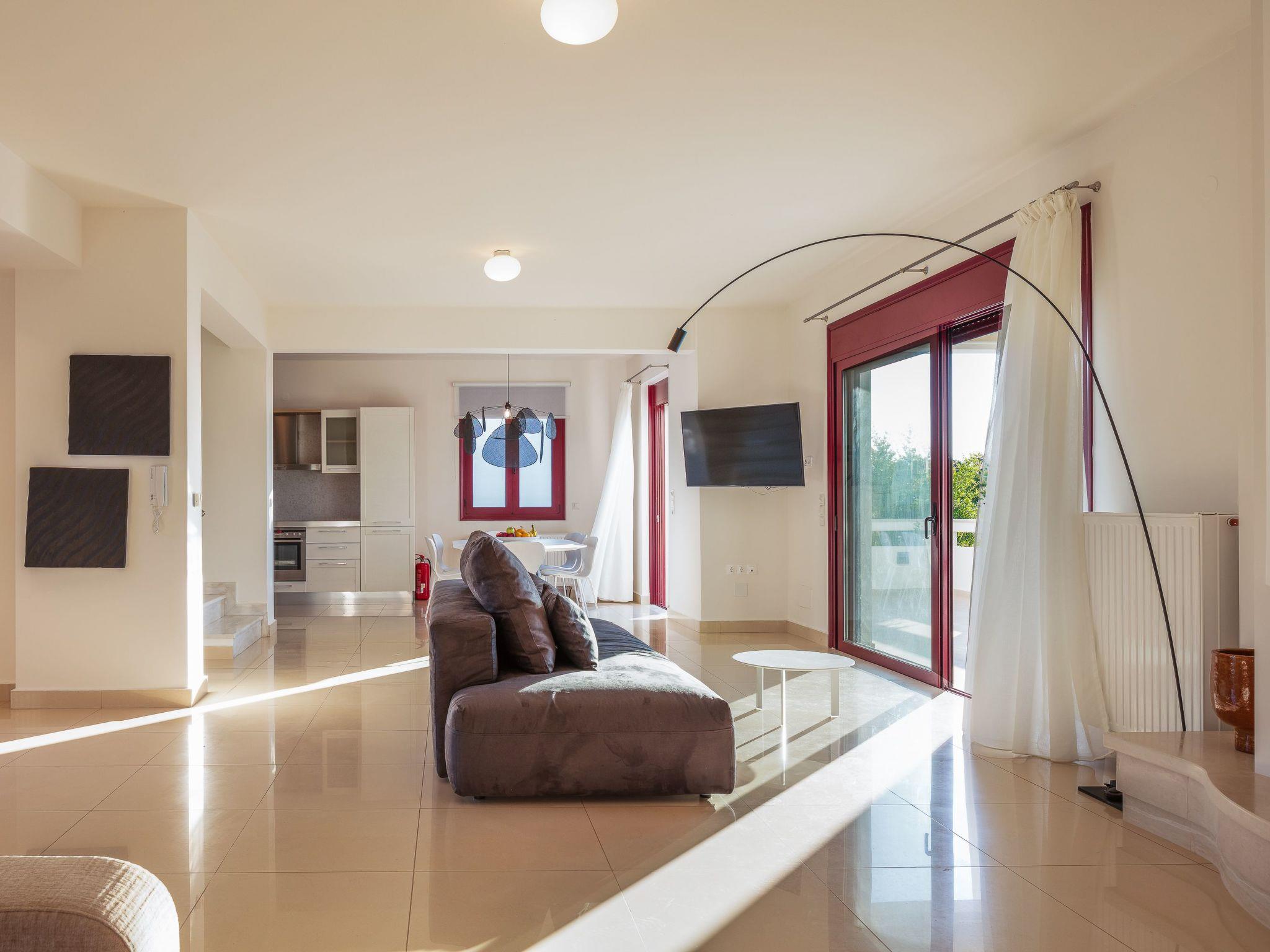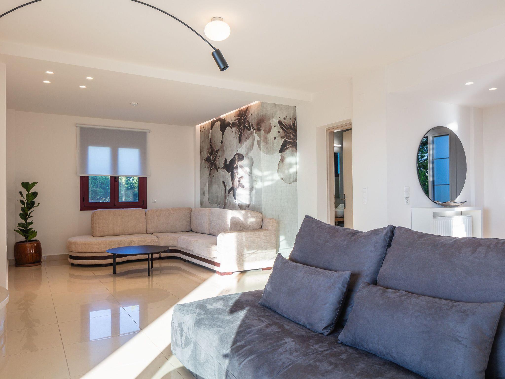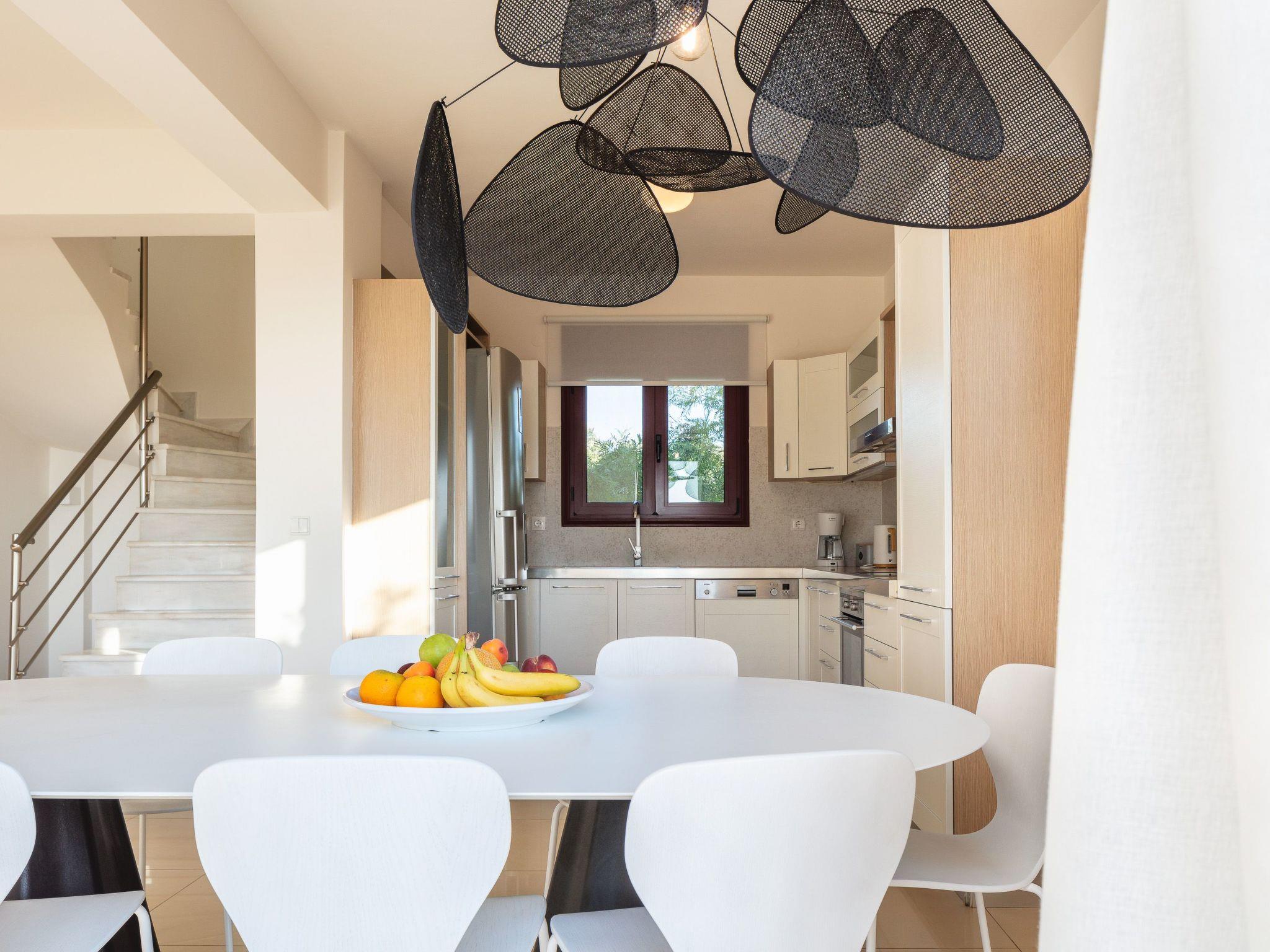 Zwei Wohnzimmer mit allen Annehmlichkeiten und einfachem Zugang zur Veranda. Das Wohnzimmer verfügt über flexible Sofas für die gesamte Gruppe. Die Villa verfügt über 4 Schlafzimmer und 4 Betten und bietet Platz für 9 Personen in Betten und maximal 11 Personen. Die voll ausgestattete Küche neben dem Wohnzimmer bietet Ihnen die Möglichkeit, Mahlzeiten für die ganze Familie zuzubereiten. Es verfügt über einen großen Kühlschrank, einen 4-Platten-Herd und einen Elektroherd, eine Mikrowelle, einen Geschirrspüler, einen Toaster, eine Filterkaffeemaschine, Geschirr und Besteck