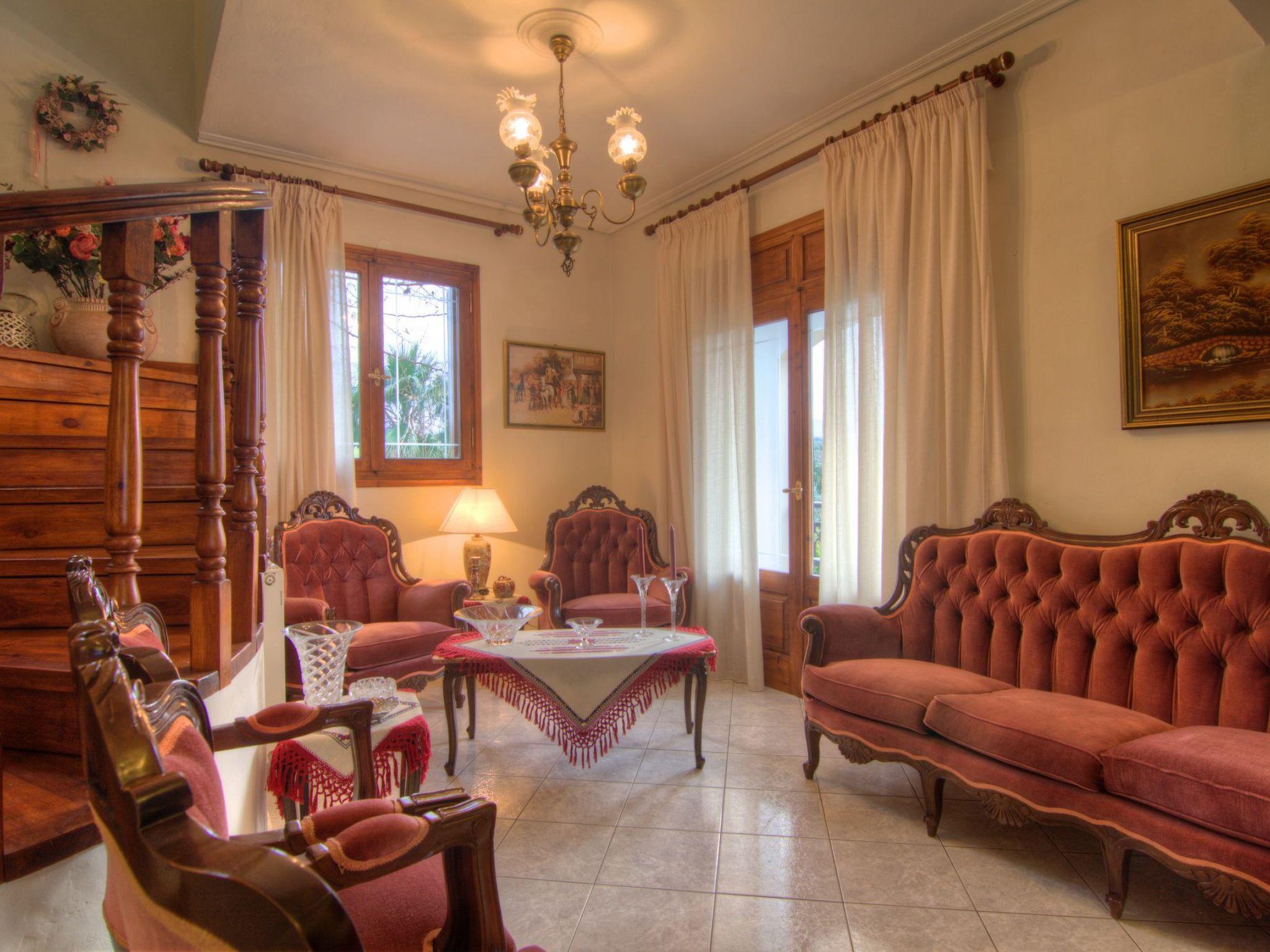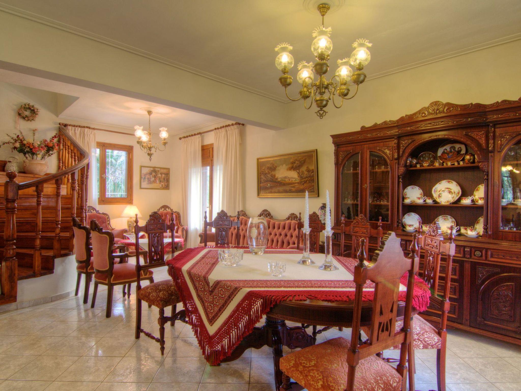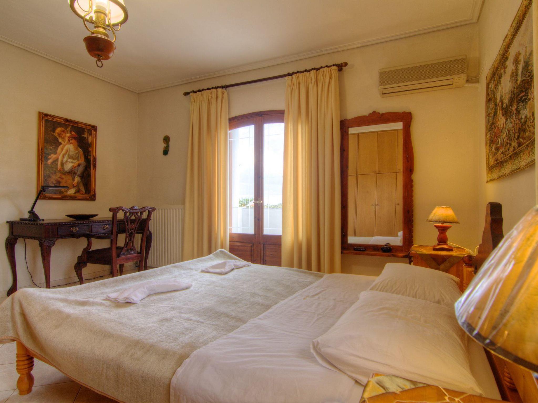 Die 180 qm große Villa bietet bequem Platz für bis zu 8 Personen, verfügt über einen 45 qm großen privaten Swimmingpool mit separatem Kinderbecken und ist von einem üppigen, schönen Garten in einem 14.000 qm großen privaten Olivenhain umgeben. Der Haupteingang im Erdgeschoss führt in ein großes, offenes, mit Stilmöbeln eingerichtetes Esszimmer/Lounge, ein angrenzendes Wohnzimmer mit Kamin und bequemen Sitzgelegenheiten, gefolgt von einer voll ausgestatteten Einbauküche mit einem großen Esstisch. Auf der gleichen Etage befindet sich auch ein geräumiges Badezimmer mit Dusche/WC. Eine Holztreppe führt in den ersten Stock, wo sich vier Schlafzimmer befinden, alle mit Klimaanlage und einem geräumigen Badezimmer mit Badewanne/WC. Zwei der Schlafzimmer verfügen über ein Kingsize-Doppelbett (1,60 m breit) und die beiden anderen über je zwei Einzelbetten (0,90 m breit). Ein Babybett ist auf Anfrage erhältlich. Ausreichend Sitzgelegenheiten sind für alle Gäste vorhanden, sowohl drinnen als auch draußen.