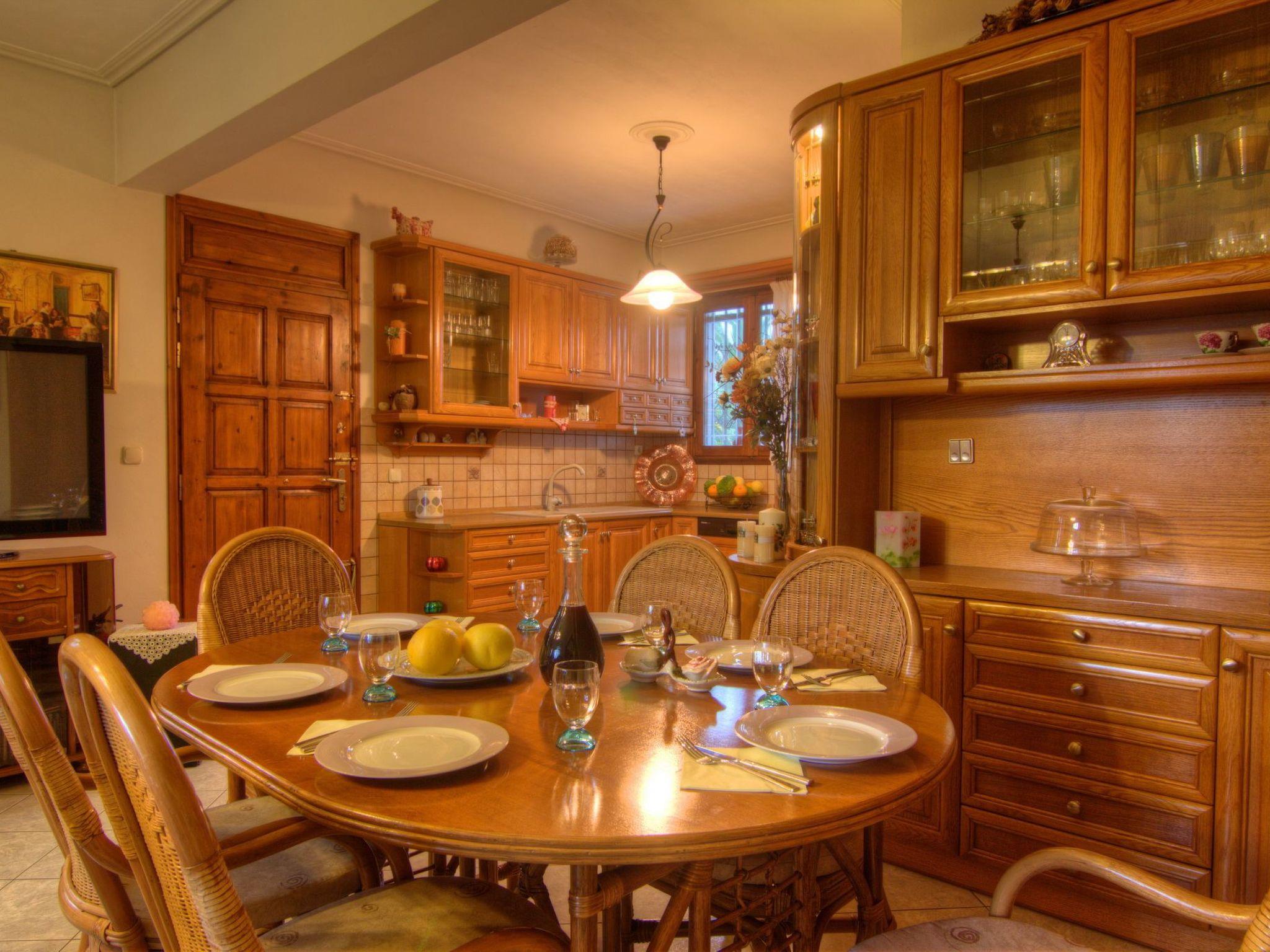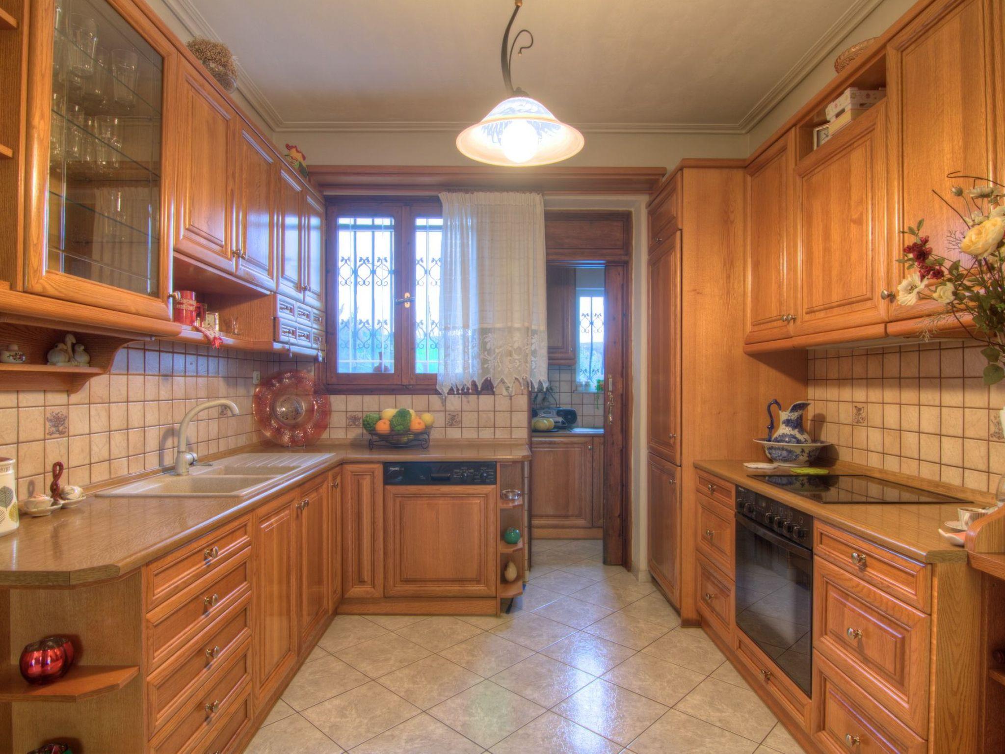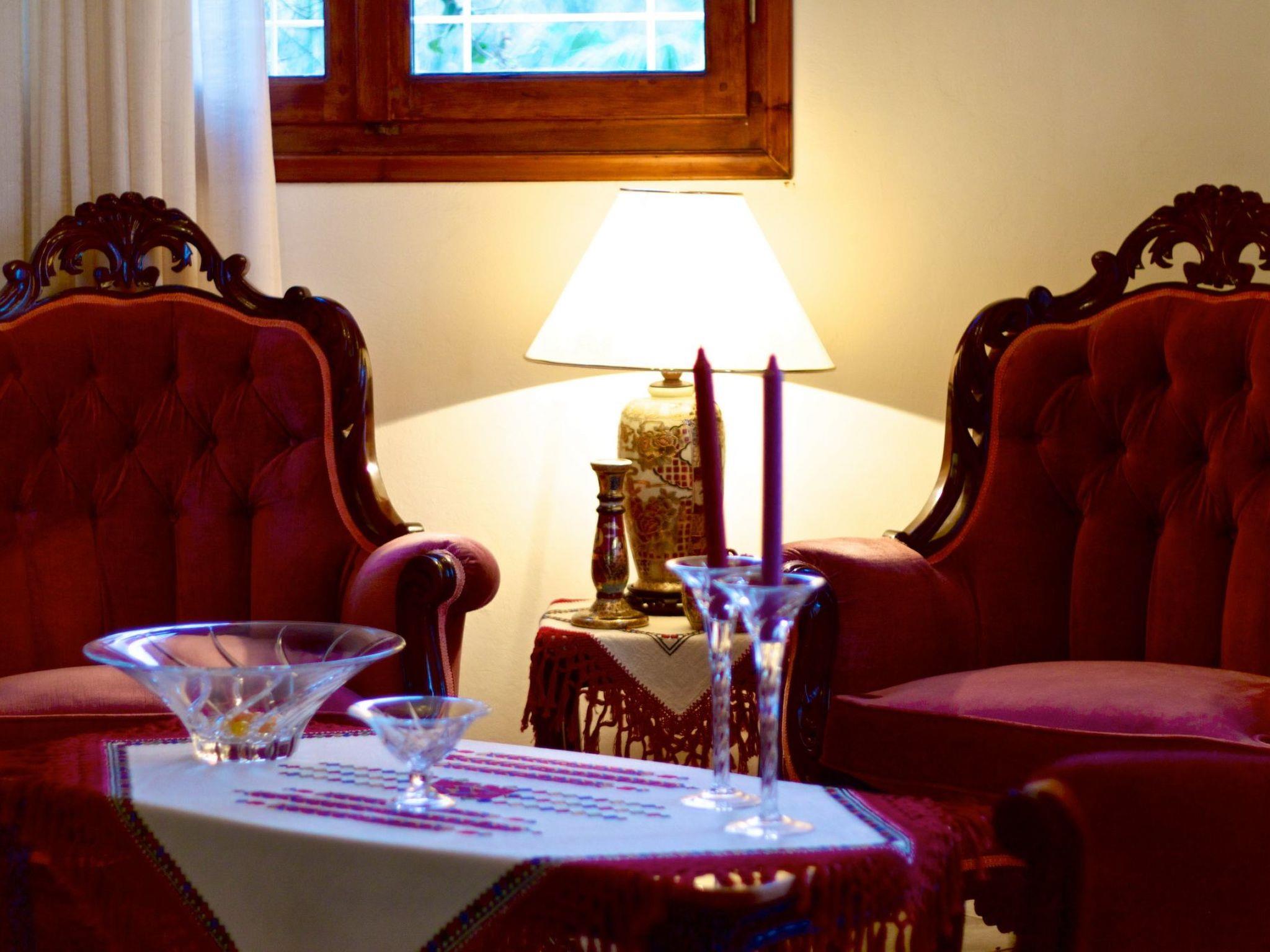Die 180 qm große Villa bietet bequem Platz für bis zu 8 Personen, verfügt über einen 45 qm großen privaten Swimmingpool mit separatem Kinderbecken und ist von einem üppigen, schönen Garten in einem 14.000 qm großen privaten Olivenhain umgeben. Der Haupteingang im Erdgeschoss führt in ein großes, offenes, mit Stilmöbeln eingerichtetes Esszimmer/Lounge, ein angrenzendes Wohnzimmer mit Kamin und bequemen Sitzgelegenheiten, gefolgt von einer voll ausgestatteten Einbauküche mit einem großen Esstisch. Auf der gleichen Etage befindet sich auch ein geräumiges Badezimmer mit Dusche/WC. Eine Holztreppe führt in den ersten Stock, wo sich vier Schlafzimmer befinden, alle mit Klimaanlage und einem geräumigen Badezimmer mit Badewanne/WC. Zwei der Schlafzimmer verfügen über ein Kingsize-Doppelbett (1,60 m breit) und die beiden anderen über je zwei Einzelbetten (0,90 m breit). Ein Babybett ist auf Anfrage erhältlich. Ausreichend Sitzgelegenheiten sind für alle Gäste vorhanden, sowohl drinnen als auch draußen.