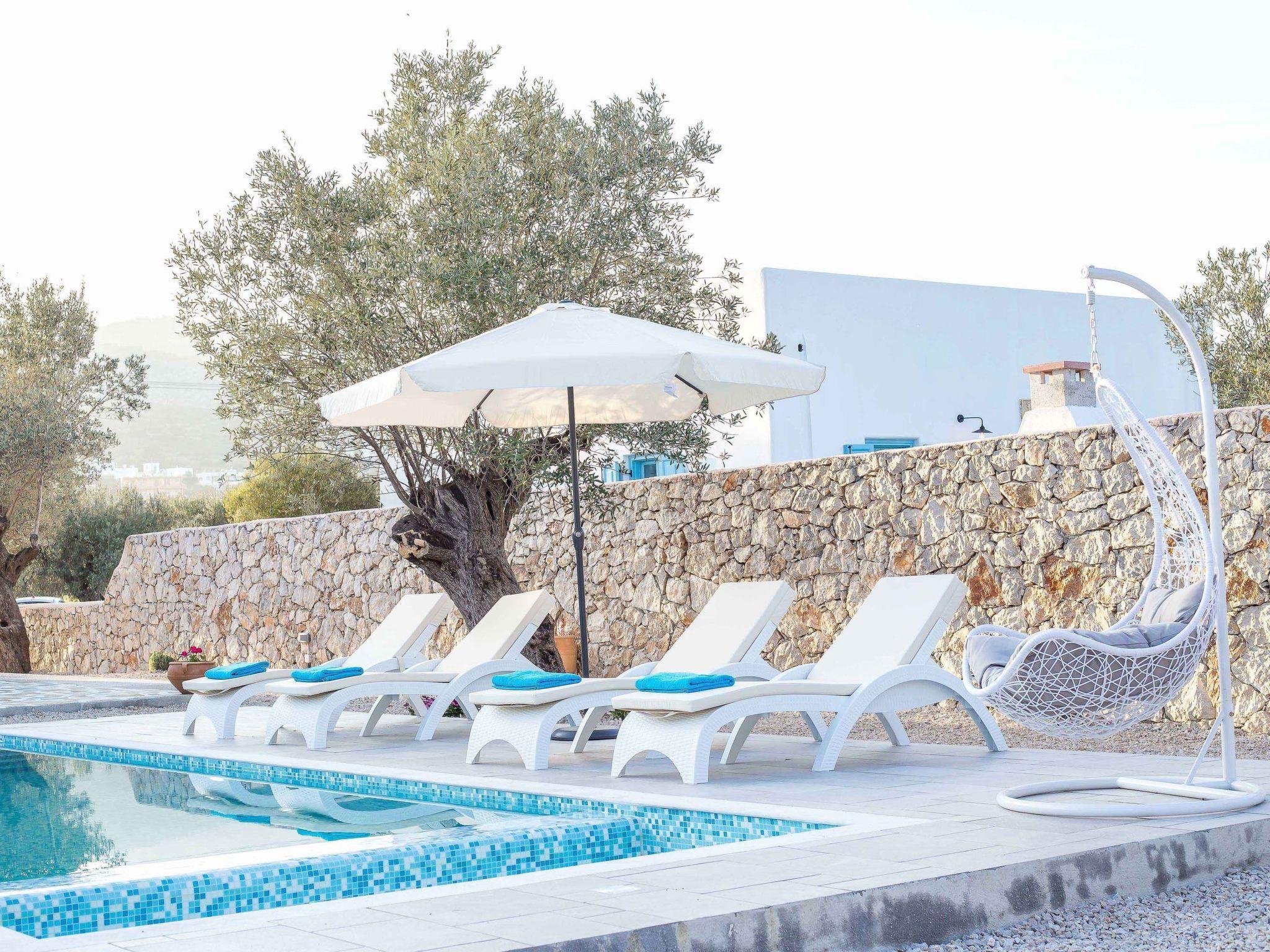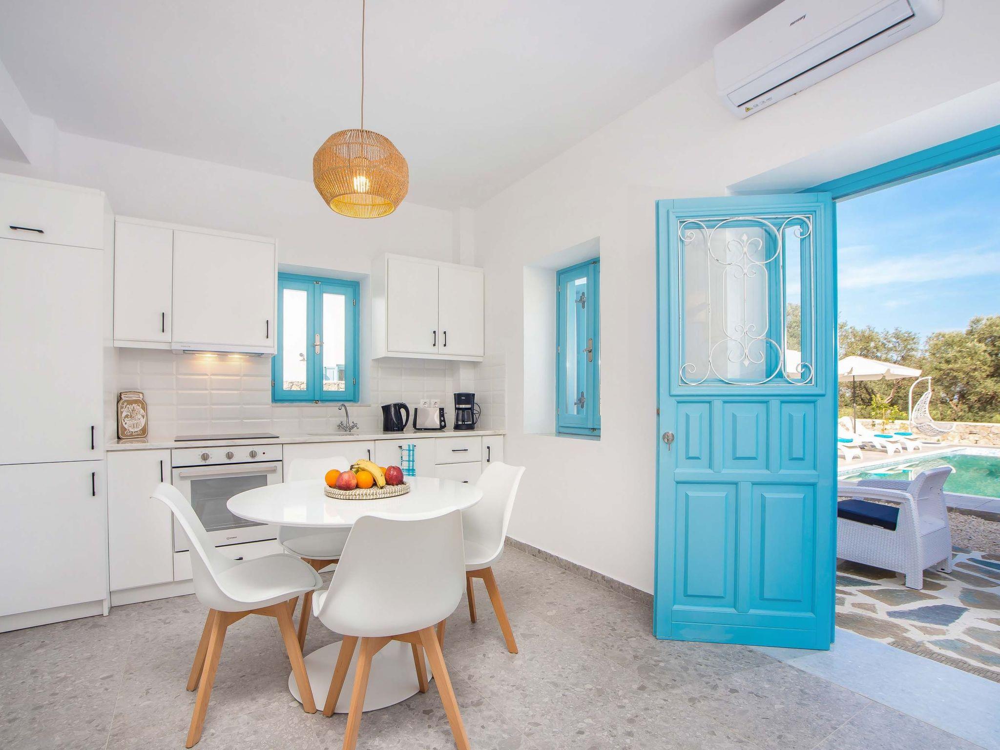 Die Blue Dream Villa hat 2 wunderschöne Schlafzimmer, eines mit einem Doppelbett und das andere mit zwei Einzelbetten. Alle Schlafzimmer sind geschmackvoll und traditionell eingerichtet und haben Türen, die nach draußen zum Haus und zum Swimmingpool führen. Außerdem gibt es 2 Bäder, jedes mit einer Dusche. Es gibt eine moderne Küche, die für die Zubereitung von Mahlzeiten komplett ausgestattet ist, sowie eine Sitzecke. Außerdem gibt es ein gemütliches Wohnzimmer in Blautönen mit einem Bildschirmfernseher. Im Außenbereich befindet sich ein herrlicher privater Swimmingpool mit Sonnenliegen für die ultimative Entspannung. Die Umgebung ist sehr einladend, die Gäste der Villa können die frische Luft der griechischen Natur einatmen und sich unter der Sonne der Ägäis entspannen. Außerdem gibt es eine moderne Sitzecke und Grillmöglichkeiten.