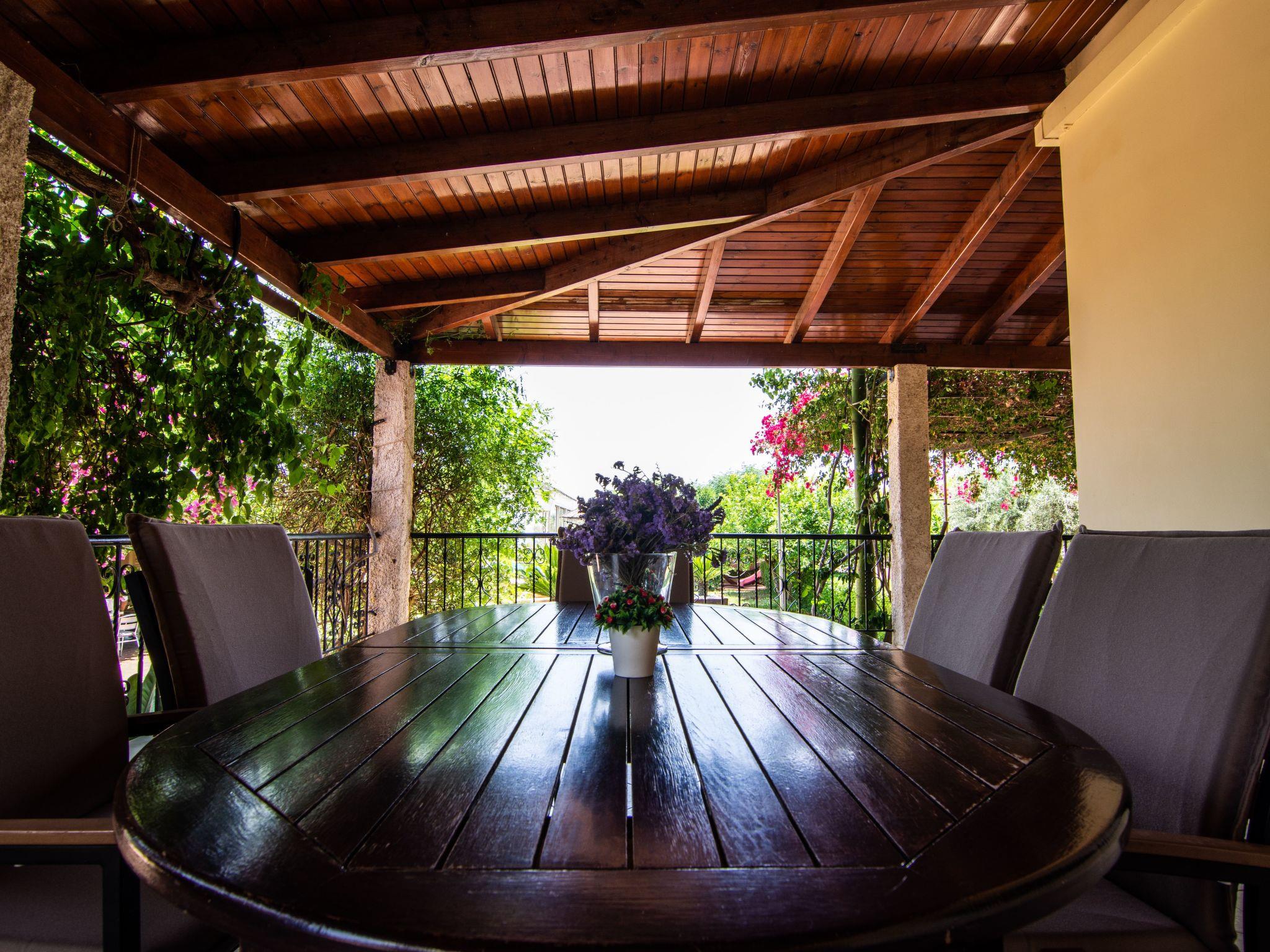 Das Haus wurde 2006 gebaut, hat eine Wohnfläche von 176 m² und ist sehr komfortabel und luxuriös eingerichtet und dekoriert. Im ersten Stock, rund um eine 120 m² große überdachte Terrasse mit großem Esstisch und Baboo-Sofa sowie dem rosa Ponk-Tisch. Im Inneren, das Esszimmer neben der offenen Küche, komplett ausgestattet mit Kühlschrank, Dunstabzugshaube, Geschirrspüler, Einbauküche, Elektroherd, Kaffeemaschine, Espressomaschinen und andere Geräte und Küchenutensilien notwendig. Das Haus besteht aus 3 Schlafzimmern mit Doppelbetten 1,60 1,80 und ein Schlafzimmer mit 1,80 oder zwei Einzelbetten, bzw... Ein Badezimmer mit Dusche und WC und ein Badezimmer mit Badewanne und WC. Es gibt auch eine Waschmaschine und einen Haartrockner. Vom Flur aus führt eine Treppe in das Wohnzimmer im zweiten Stock. Dort gibt es 1 Schlafzimmer mit Doppelbett (1,40 breit) und ein Badezimmer mit Toilette und Dusche. Die Terrasse ist mit Blick auf das Meer.