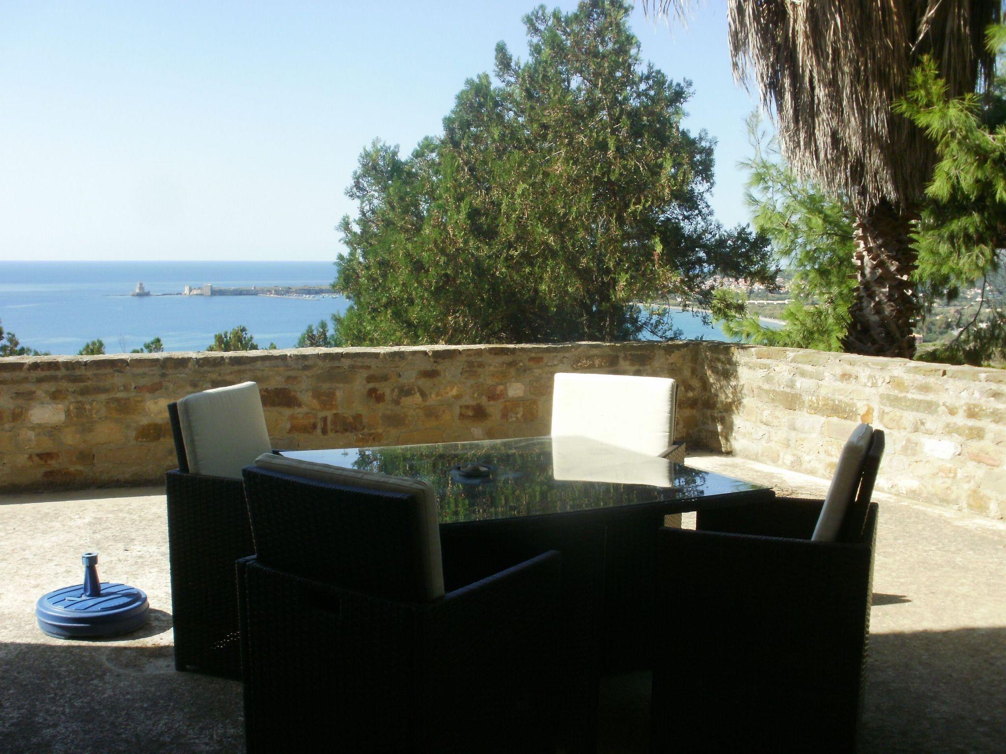 Villa, die in 2 Wohnungen aufgeteilt werden kann. Kann als Ganzes für bis zu 13 Urlauber gemietet werden. Panoramablick auf das Meer und die Zitadelle. Garten mit Park. Ideale Lage, ruhig, oberirdischer Pool, private Poolbar nur für Urlauber, Liegestühle, Sonnenschirm, Hängematte. Großer schattiger Park mit Sitzecken für persönliche Träumereien. Geschmackvoll eingerichtete Zimmer, die den Farben der umliegenden Natur entsprechen, Sand-, Kiesel- und Felsstrände in der Nähe. 3 Golfplätze in 15 Autominuten Entfernung mit herrlichem Blick auf die Bucht von Navarino.