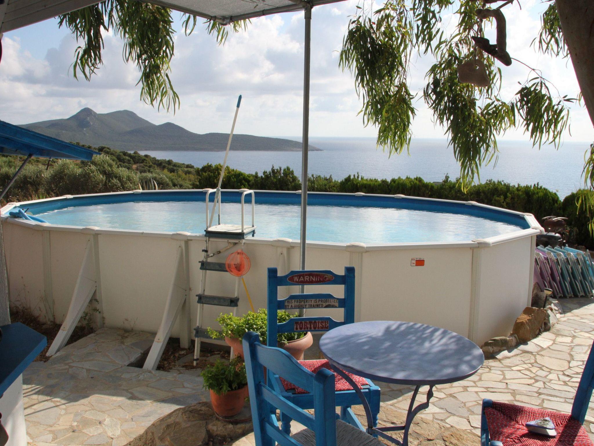 Terrasse mit Gartenmöbeln, Sonnenschirm, oberirdischem Pool 8,70x4,70x1,30m, Liegestühlen, Bar. Nur für die Gäste der beiden Einheiten. Das Grundstück ist komplett eingezäunt. Hängematte und Hängesessel für Kinder.
