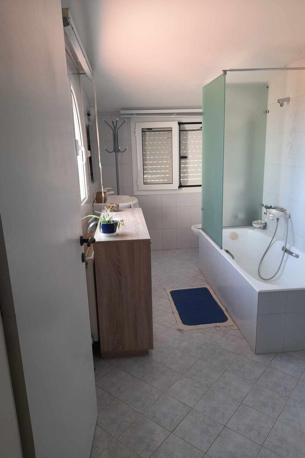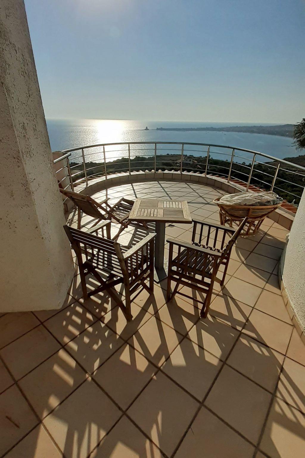 Oberes Erdgeschoss - 1. und 2. Stock für 9 Personen, klimatisierter Großraum, bestehend aus Wohnzimmer mit Balkon und Meerblick, Esszimmer, Küche mit Balkon und Meerblick. Ein separates Badezimmer und ein klimatisiertes Doppelzimmer mit Gartenblick. Oberes Erdgeschoss-1. + 4 Treppen, 1 Doppelzimmer Balkon Meerblick/Bad-WC/Klimaanlage. 2. 1 Doppelzimmer Gartenblick/Klimaanlage/Bad-WC und 1 rundes Dreibettzimmer, OHNE BAD-WC, Meer- und Gartenblick/Klimaanlage.Panoramaterrasse. Bettwäsche und Handtücher werden 1x alle 7 Nächte gewechselt. Wenn Sie mehr Zeit benötigen, können Sie folgendes mieten