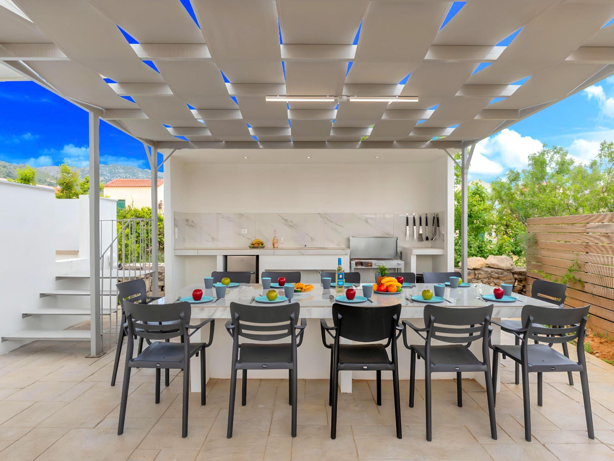 Im Außenbereich finden Sie die ultimative Entspannung mit einem großen Swimmingpool, der zu einem erfrischenden Bad oder einem gemütlichen Schwimmen einlädt. Die Sonnenterrasse mit bequemen Liegestühlen und Sonnenschirmen lädt Sie ein, die warme Mittelmeersonne zu genießen. Genießen Sie den Morgen mit einer Tasse Kaffee oder entspannen Sie sich am Abend in der Sitzecke im Freien, wo Sie die sanfte Meeresbrise und die malerische Aussicht genießen können.