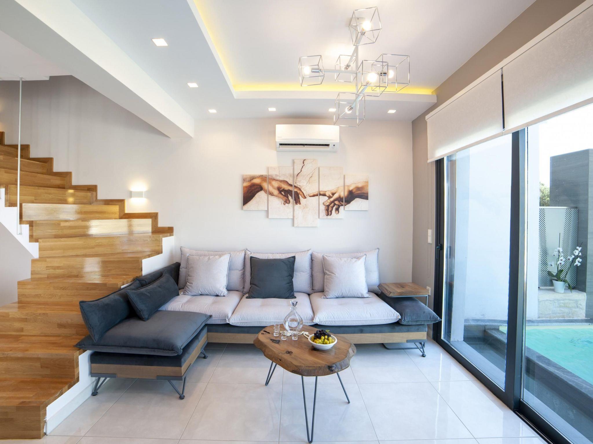 Perla Villas, ein Gedicht an die Seele Kretas! Die Perla Villas, ein Komplex von Luxusvillen, sind in die grünen Kournas-Klippen gemeißelt und überblicken die türkisfarbene Weite des Kournas-Sees und das Blau des Mittelmeers, das die Insel Kreta umgibt. Perla Villas ist ein beliebtes Ziel für romantische Fluchten oder erholsame Ferien und strahlt einen unbeschwerten Geist aus, der ein beruhigendes, exklusives Gefühl vermittelt, das der spektakulären Lage so eigen ist. Perla Villas ist mit einer privilegierten Lage in einer einzigartigen natürlichen Landschaft gesegnet; der Blick ist dramatisch über den See, mit einem unvergesslichen Panoramablick auf die ruhige Landschaft des kretischen Meeres fortgesetzt; und all diese kostbare Umgebung liegt nur 150 Schritte nach oben, von den berühmten kretischen traditionellen Tavernen neben dem Seeufer. Die Villa Perla Bianca mit Außenwhirlpool und privatem Pool zeichnet sich durch ihr großzügiges Raumangebot und ihr anmutiges Ambiente aus. Sie bietet ein stilvoll gestaltetes Hauptschlafzimmer mit einem bequemen Queensize-Bett, ein komfortables zweites Schlafzimmer mit zwei zusammenschiebbaren Betten und ein elegant eingerichtetes Badezimmer mit einer erfrischenden Dusche. Diese schicke Villa verfügt über einen Wohnbereich mit Ecksofa, ein separates gemütliches Esszimmer mit einem schönen Bad mit Dusche und eine voll ausgestattete Küche. Im Außenbereich befindet sich eine geräumige Terrasse mit Grill und Essbereich mit Blick auf den Jacuzzi, den privaten Pool und die entspannenden Sonnenliegen. Die Villa Perla Nera ist das ultimative Erlebnis, das authentisches Design und zeitgenössische Akzente miteinander verbindet. Ein Höchstmaß an Privatsphäre, eine reichhaltige Ausstattung und ein privater Pool mit Wasserfall und Jacuzzi vervollständigen den unvergesslichen Aufenthalt. Die Villa bietet einen offenen Wohnbereich mit schwimmenden Sonnenliegen, Grill und Essbereich. Im Obergeschoss befinden sich zwei geräumige Schlafzimmer, eines mit Queen-Size-Betten und ein zweites mit zusammengeschobenen Einzelbetten sowie ein stilvolles Badezimmer mit Dusche. Auf der unteren Ebene befindet sich eine moderne, voll ausgestattete Küche mit Essbereich, kombiniert mit einem luxuriösen Badezimmer und einem angrenzenden Wohnbereich mit Ecksofa, und das alles mit direktem Zugang zum Pool. Die Perla Villen sind ideal für Familien, eine Gruppe von Familien oder eine Gruppe von Freunden. Genießen Sie Ihren Urlaub mit Ihren Eltern oder mit dem Rest Ihrer Familie und bewahren Sie gleichzeitig Ihre Privatsphäre wie in Ihrem eigenen Haus. Unsere Villen sind direkt nebeneinander gebaut. Die Perla Villen können bis zu 12 Gäste beherbergen (6 Gäste in der Perla Bianca Villa und 6 Gäste in der Perla Nera Villa).