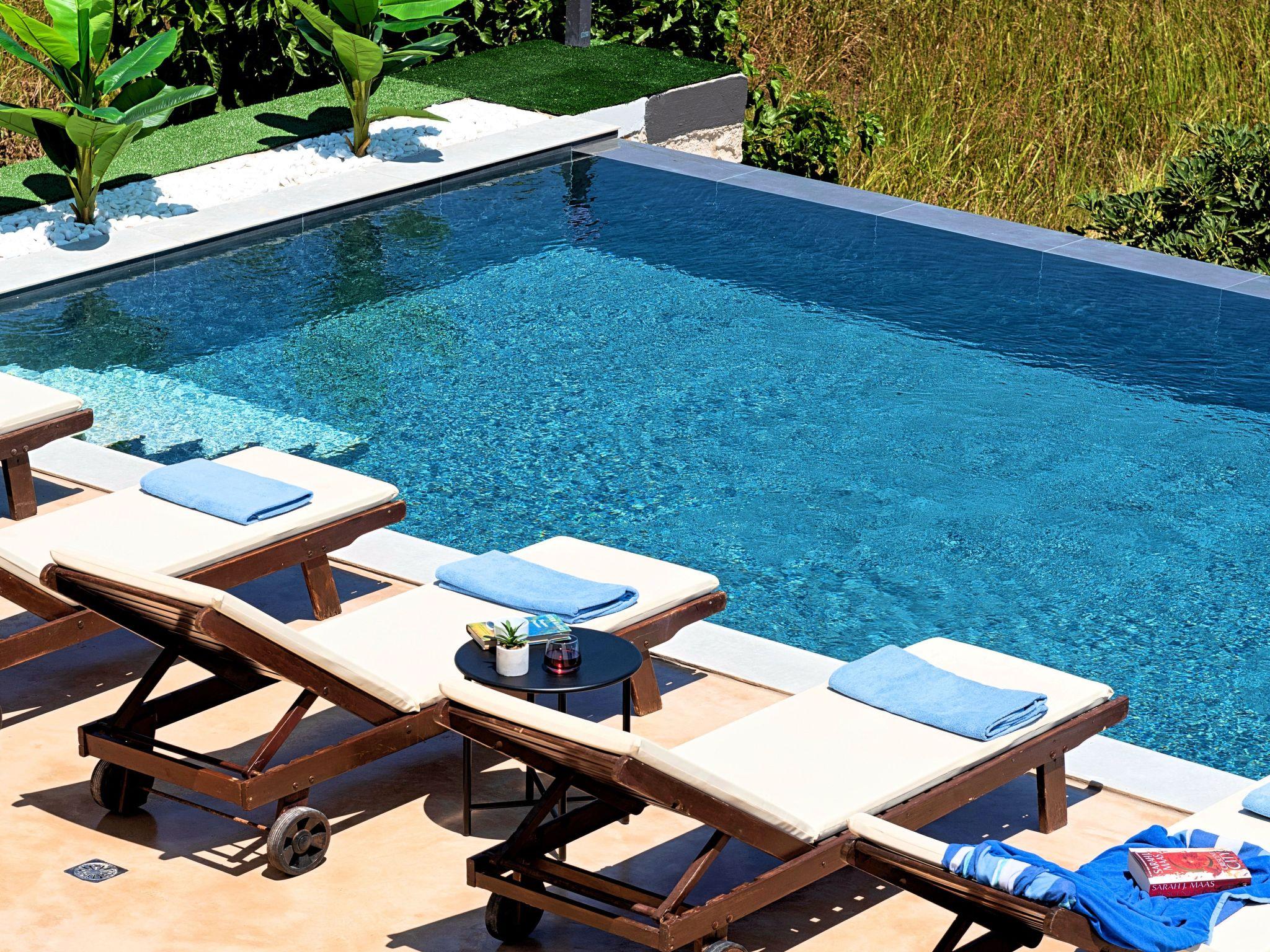 * Ein Schwimmbad mit Sonnenliegen
