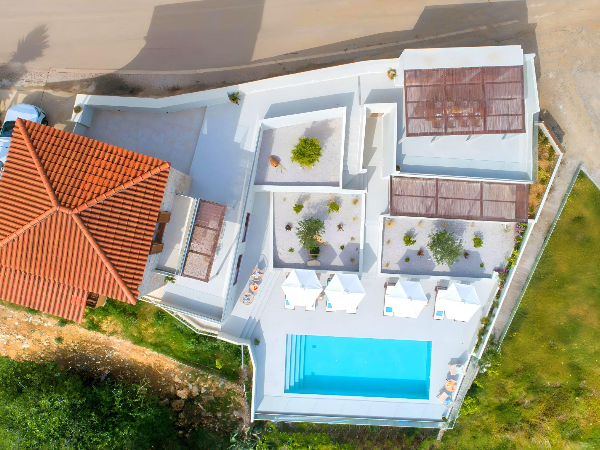 Das Äußere der Soluna Villa ist ebenso beeindruckend wie ihr Inneres. Das Highlight ist zweifelsohne der große Swimmingpool, der den Gästen zur alleinigen Nutzung zur Verfügung steht. Er ist von einer großzügigen Terrasse umgeben, die mit Sonnenliegen ausgestattet ist, ideal für Tage, an denen man die griechische Sonne genießen kann. Der Grillplatz ist ideal für diejenigen, die gerne im Freien essen, und ist ein großartiger Ort, um Freunde oder Familie zu einem kulinarischen Festmahl unter dem Sternenhimmel zu versammeln. Das freistehende Haus gewährleistet absolute Privatsphäre für Ihre Gruppe und bietet eine persönliche Oase abseits des Trubels.
