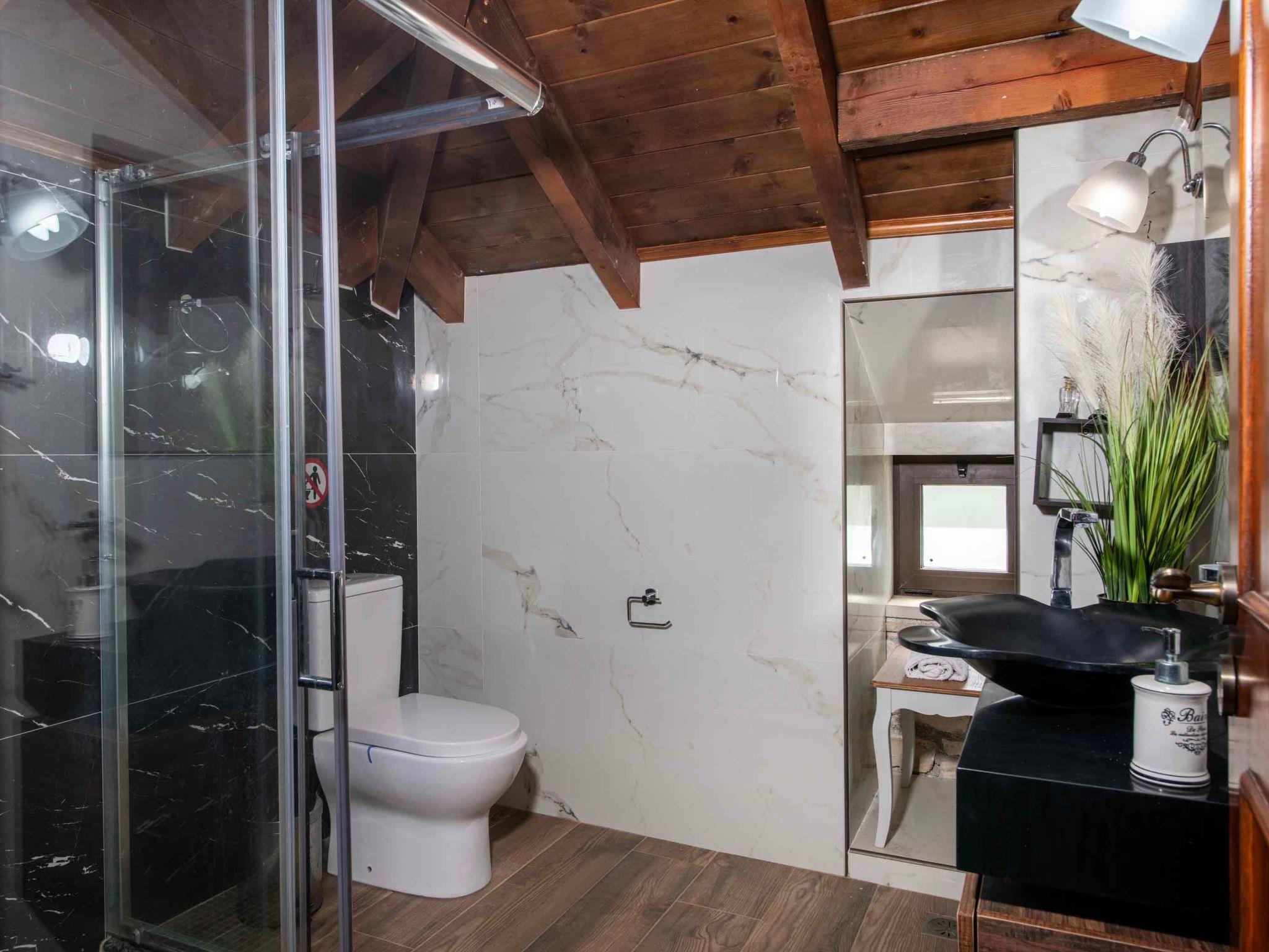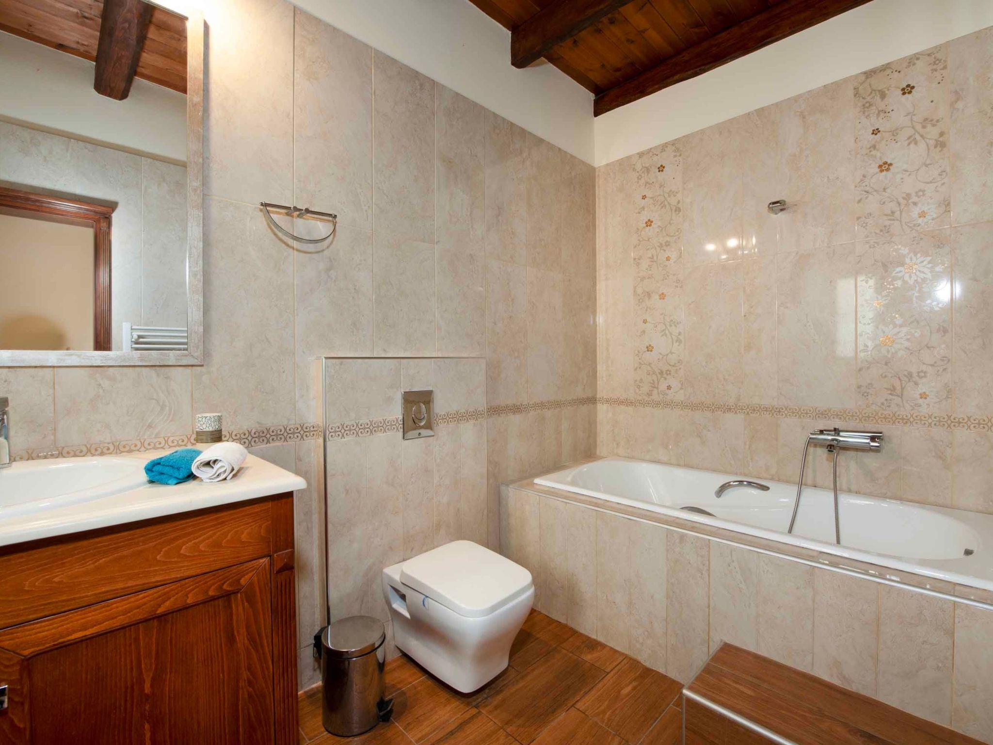 Mit einer Gesamtwohnfläche von 400 m² und einem 1.000 m² großen Außenbereich bietet die Geroulios Kastro Villa I Platz für bis zu 12 Gäste in vorhandenen Betten und 5 weitere Gäste auf Schlafsofas in den Schlafzimmern. Im Erdgeschoss befindet sich ein Wohnbereich mit einem Sofa, einem 55'' Smart-Satellitenfernseher und einem Kamin. Eine voll ausgestattete Küche und ein Essbereich für sechs Personen schaffen den perfekten Rahmen für Familientreffen. Auf dieser Ebene befinden sich auch zwei Schlafzimmer, beide mit Doppelbetten, sowie ein gemeinsames Bad mit einer Dusche. Im ersten Stock befinden sich zwei weitere Schlafzimmer, beide mit Kingsize-Betten, Schlafsofas und eigenen Bädern mit Badewannen. Im zweiten Stock befinden sich zwei weitere Schlafzimmer mit jeweils einem Kingsize-Bett, einem eigenen Bad mit Dusche, Klimaanlage und einem 32-Zoll-Fernseher. Beide Zimmer sind außerdem mit bequemen Sofabetten ausgestattet und bieten somit Flexibilität für größere Gruppen bei gleichzeitiger Gewährleistung von Privatsphäre und Komfort.