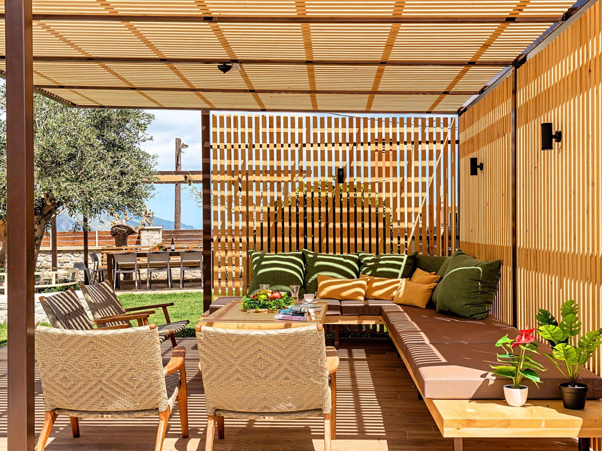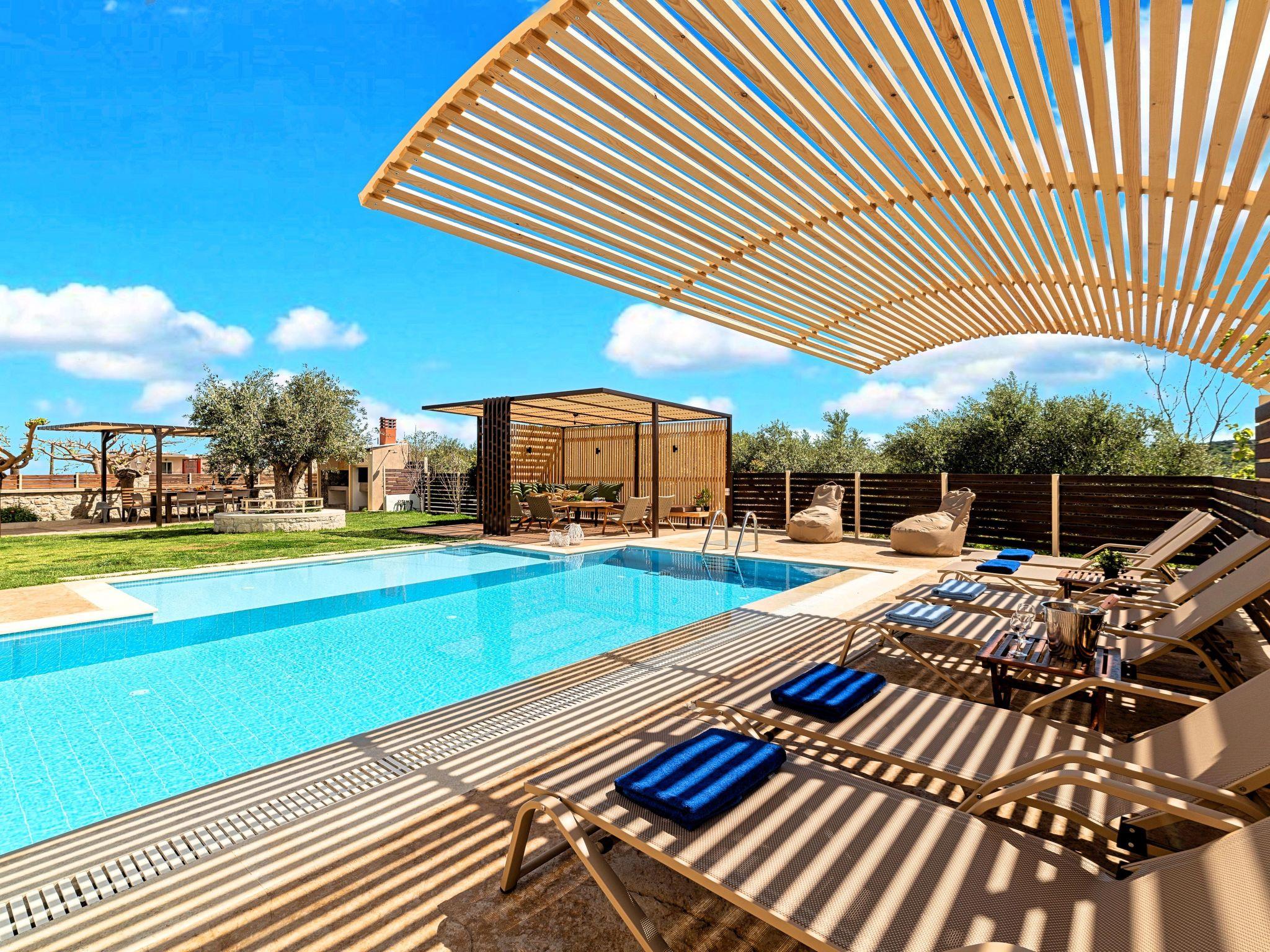 Willkommen Joy Freuden in Cretan Sunrise Villa. Erleben Sie es selbst in Kavalos, einem kleinen Dorf über dem Kournas See, dem einzigen natürlichen See der Insel Kreta. Wenige Autominuten vom Herzen der malerischen Fischerstadt Georgioupolis oder den kristallklaren Sandstränden der nördlichen Westküste Kretas entfernt. Der exklusive Stil, die raffinierte Architektur und der beneidenswerte Service werden es Ihnen schwer machen, Ihren Komfort zu verlassen und all das zu erleben, was die Insel noch zu bieten hat. Die Villa ist auf zwei Ebenen gebaut und lässt keinen Luxus vermissen. Im Außenbereich ist der kristallklare Privatpool von einem üppigen Garten umgeben, von dem aus man einen Blick auf den nahe gelegenen See und das kretische Meer hat. Der Pool mit Kinderbereich ist ausschließlich den Bewohnern vorbehalten. Der Pool und der Garten bieten sowohl kühlen Schatten und strahlendes Licht als auch Privatsphäre und Aussicht. Ausstattung & Service Licht und Ausblicke in Grün und Blau dringen durch die Fenster der Villen. Die Cretan Sunrise Villa ist eine 180 qm große, zweistöckige Villa, die von einem 1,6 Hektar großen Grundstück, großzügigen Terrassen mit bezaubernder Aussicht und einem wunderschönen, beheizten Swimmingpool umgeben ist. Der Wohn- und Essbereich verbindet Schlichtheit und Üppigkeit. Die Villa verfügt über 3 Schlafzimmer und ein Loft, die 1 bis 11 Gäste beherbergen können, was sie zum perfekten Ort für eine luxuriöse und äußerst komfortable Unterkunft in Kavalos/Kournas See macht. Die Cretan Sunrise Villa verfügt über die folgenden Einrichtungen: Erdgeschoss * Ein Wohn-Esszimmer mit Kamin und einem Smart TV. * Küche mit Backofen, Mikrowelle, Geschirrspüler, Kühlschrank, Kaffeemaschine, Teezubehör, Saftpresse, Toaster und Geschirr * Gästebad * Ein Hauptschlafzimmer mit Queen-Size-Doppelbett und eigenem Bad mit direktem Zugang zum Garten und zum Poolbereich. Obergeschoss * Eine Terrasse mit unglaublicher Aussicht * Ein Schlafzimmer mit zwei Einzelbetten und eigenem Bad und direktem Zugang zum Terrassenbereich. * Ein Kombischlafzimmer mit Dachboden. Dieses Schlafzimmer ist ideal für Familien mit Kindern. Das Schlafzimmer hat ein großes Badezimmer, ein Queen-Size-Doppelbett, eine Holztreppe, die zum Dachboden führt. Der Dachboden bietet ein Doppelbett und ein Einzelbett. * Ein Loft-Schlafzimmer mit 2 Einzelbetten * Klimaanlage in allen Bereichen * Smart TV im Wohnzimmer mit einer guten Auswahl an lokalen und Satellitenkanälen * Kostenloser WiFi-Internetzugang * Waschmaschine * Ein Bügeleisen und ein Bügelbrett * Safe * Haartrockner * Feine Bettwäsche und Handtücher * Toilettenartikel * Handtücher für den Pool * Babybett * Hochstuhl * Handtücher / Bettwäsche, Reinigung - alle 3 oder 4 Tage * Beheizter Swimmingpool mit Kinderbereich * Liegewiese mit Sonnenliegen * Gartenanlage * Parkplatz * Grill mit Essbereich Die Gäste der Cretan Sunrise Villa können auf Wunsch und gegen Aufpreis auch folgende Leistungen in Anspruch nehmen: * Tägliche Reinigung * Täglicher Wäsche- und Handtuchwechsel * Tägliche Poolreinigung * Autovermietung * Transferservice * Reiseservice * Massagen * Tägliche Lieferung von Lebensmitteln * Tauchkurse * Kletterkurse * Wassersport * Bootsfahrten * Babysitting
